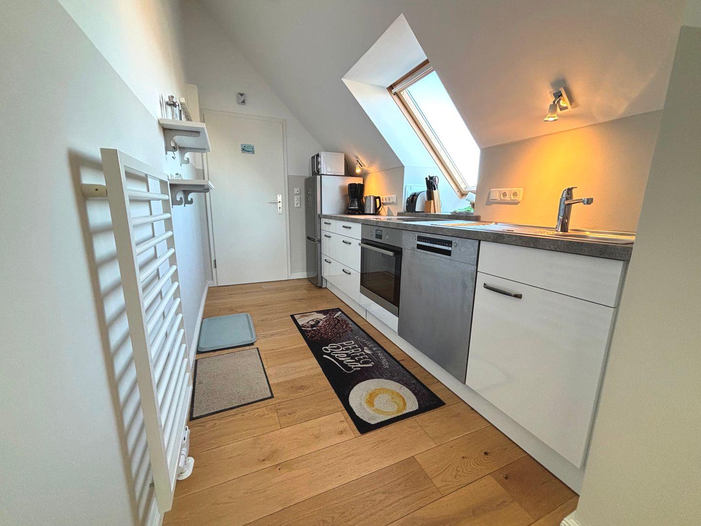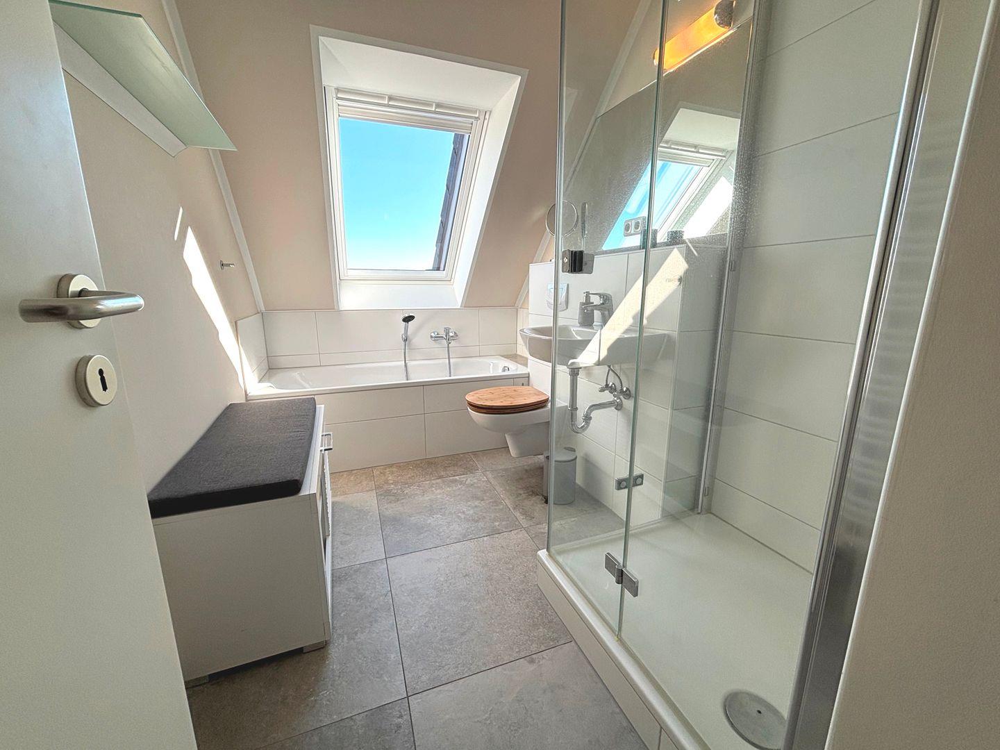 Das in 2022 renovierte Badezimmer ist modern und bietet Ihnen sowohl eine Badewanne als auch eine Dusche. Nutzen Sie den Fön, um Ihre Haare zu stylen, und freuen Sie sich über die Handtuchheizung, die Ihnen stets warme und kuschelige Handtücher bietet. Im Hauswirtschaftsraum steht Ihnen eine Waschmaschine zur Verfügung, sodass Sie auch während Ihres Aufenthalts Ihre Wäsche bequem waschen können. Ein Wäscheständer steht Ihnen auch zur Verfügung.