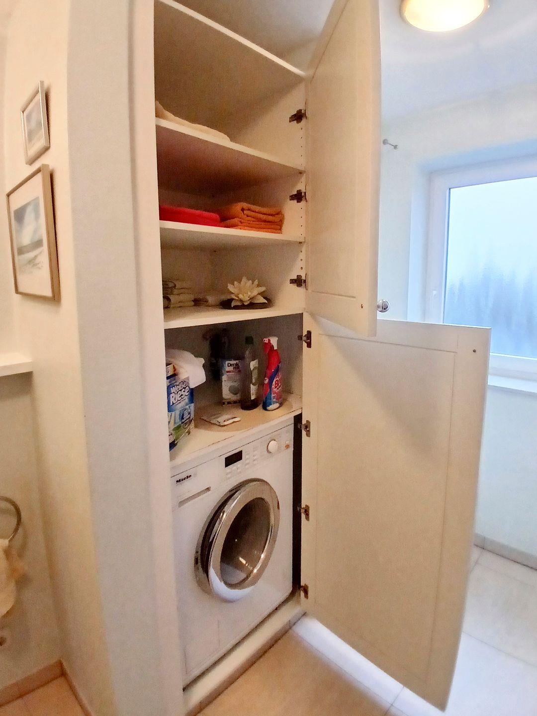 Für zusätzlichen Komfort sorgt die Fußbodenheizung in den Bädern, die auch in den Wintermonaten für eine wohlige Atmosphäre sorgt. Zu den weiteren Annehmlichkeiten zählen eine eigene Waschmaschine, und ein Wäscheständer und weitere Haushaltsutensilien für den alltäglichen Bedarf– Sie haben alles, was Sie brauchen, um sich wie zu Hause zu fühlen.
