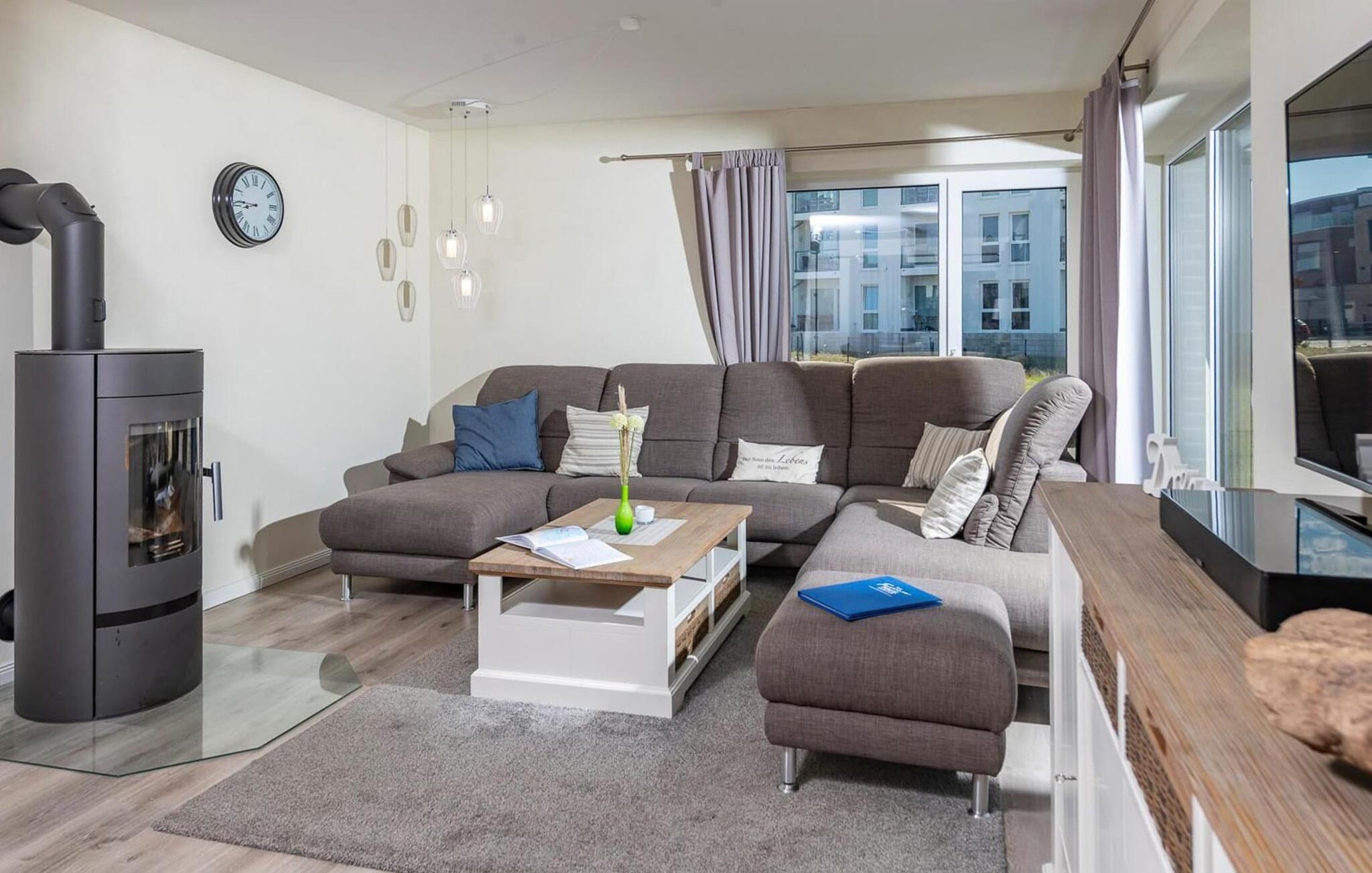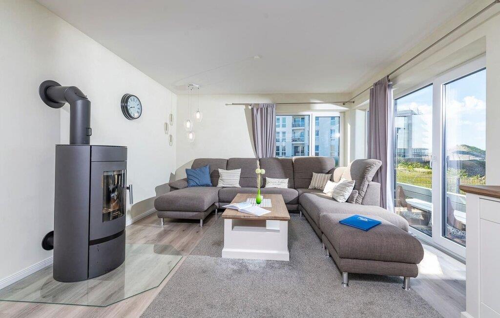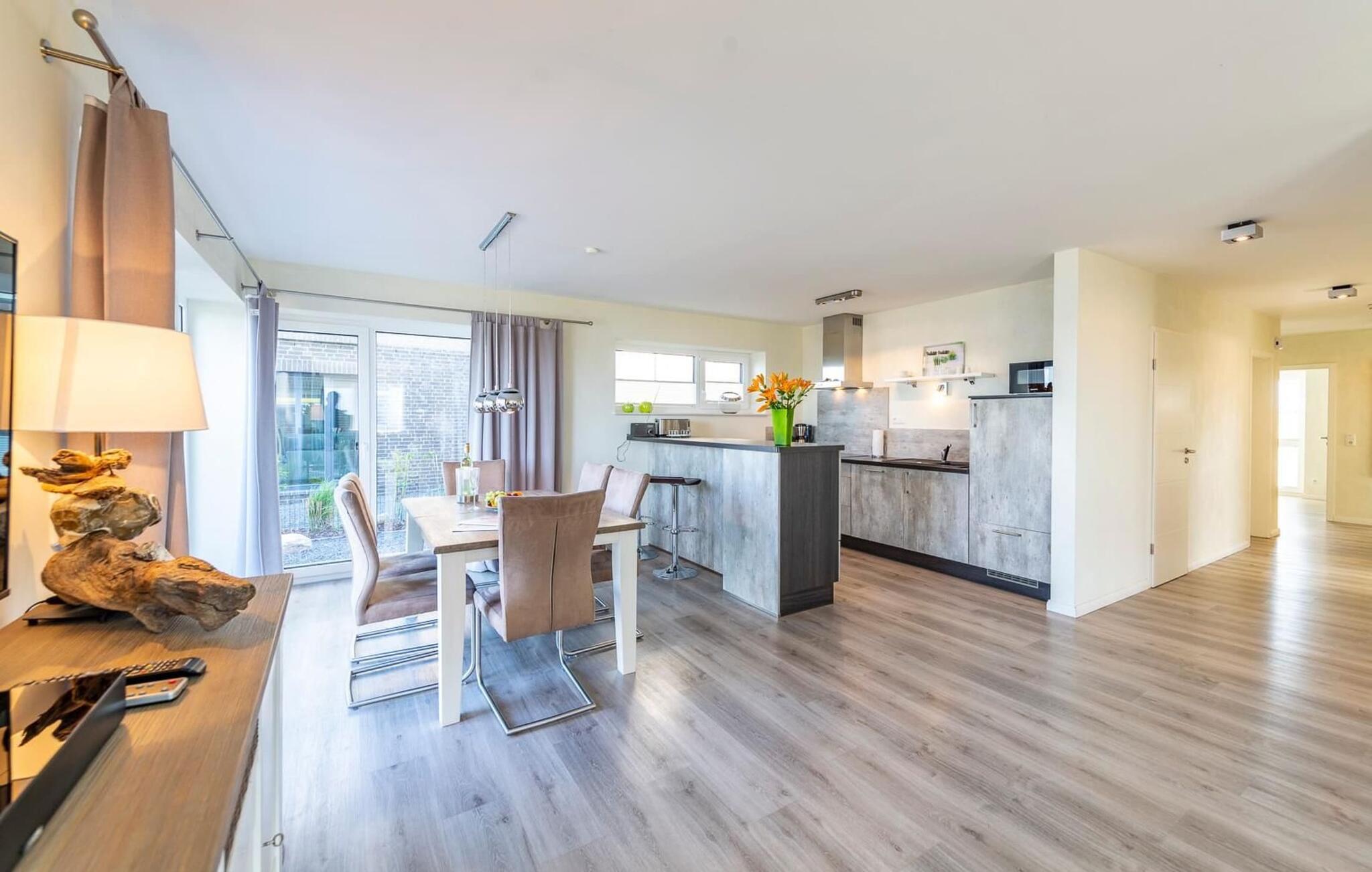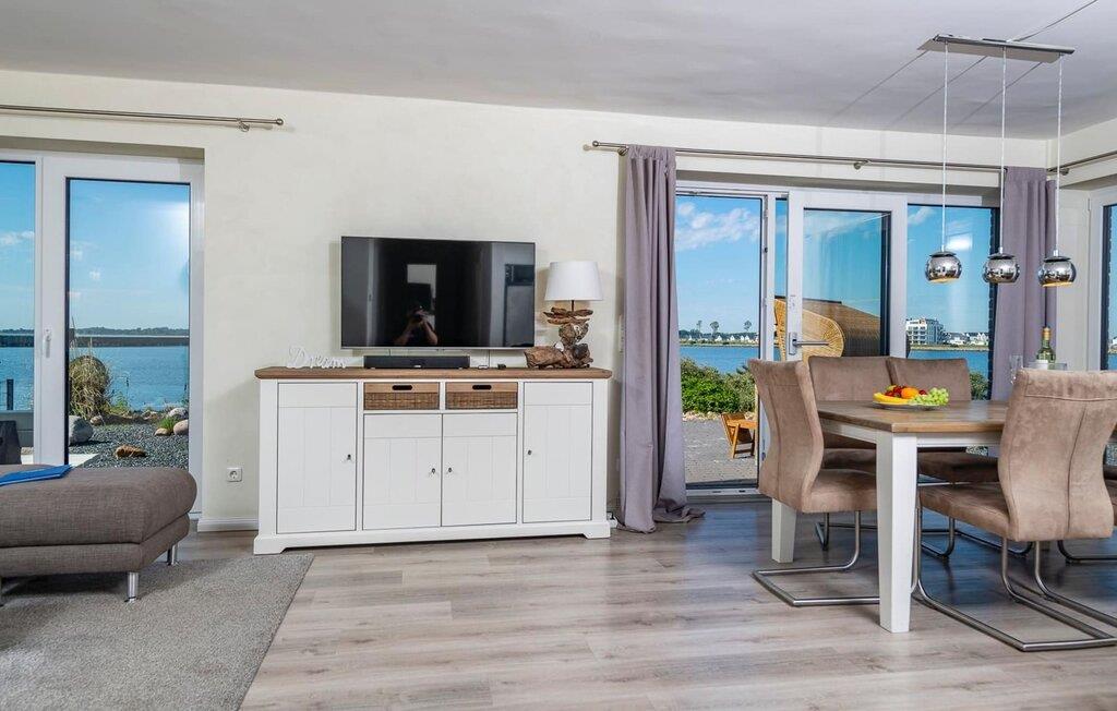 den nordlige del af Østersøen feriestedet Olpenitz på molen, der rager ud i havet og direkte ud til havet ligger ferielejligheden Schöne Aussicht auf der Baltic Sea med en stor solterrasse, der byder på en vidunderlig udsigt over feriestedets havn og havneindløbet. . Ferielejligheden i stueetagen er af meget høj kvalitet og stilfuld i naturlige toner og bevidst klare og enkle former. Det byder på alt, hvad I har brug for af sofistikeret udstyr til en vellykket ferie ved havet. Den rummelige stue/alrum med gulv-til-loft vinduer, opholdsområde og det store spisebord til 6 personer er lejlighedens centrum. Her kan I få hyggelige stunder foran pejsen og måltider sammen, som kan fremtrylles i det fuldt udstyrede køkken. At bo og bo ved havet (Østersøen/Schlei) fortsætter på den tilstødende store sydvestvendte terrasse med en fantastisk udsigt over feriestedets havn. Her tilbyder siddepladser, liggestole og strandstole al tænkelig komfort til at nyde solen og havet. De tre soveværelser inviterer op til 6 voksne til at sove og drømme. I det moderne hovedbadeværelse er der finsk sauna, som kroner det personlige wellness-program med vid udsigt over havnen. Et gæstetoilet giver ekstra komfort. Der er to parkeringspladser til rådighed direkte foran huset. Bemærk venligst: OstseeResort Olpenitz er meget populært, og der bygges fortsat i parken. Ikke desto mindre kan I se frem til en 5-stjernet standard og et førsteklasses ophold. Byggeaktiviteterne kommer ikke til at forstyrre jer på ferien, og derfor gives der ikke yderligere afslag i prisen.