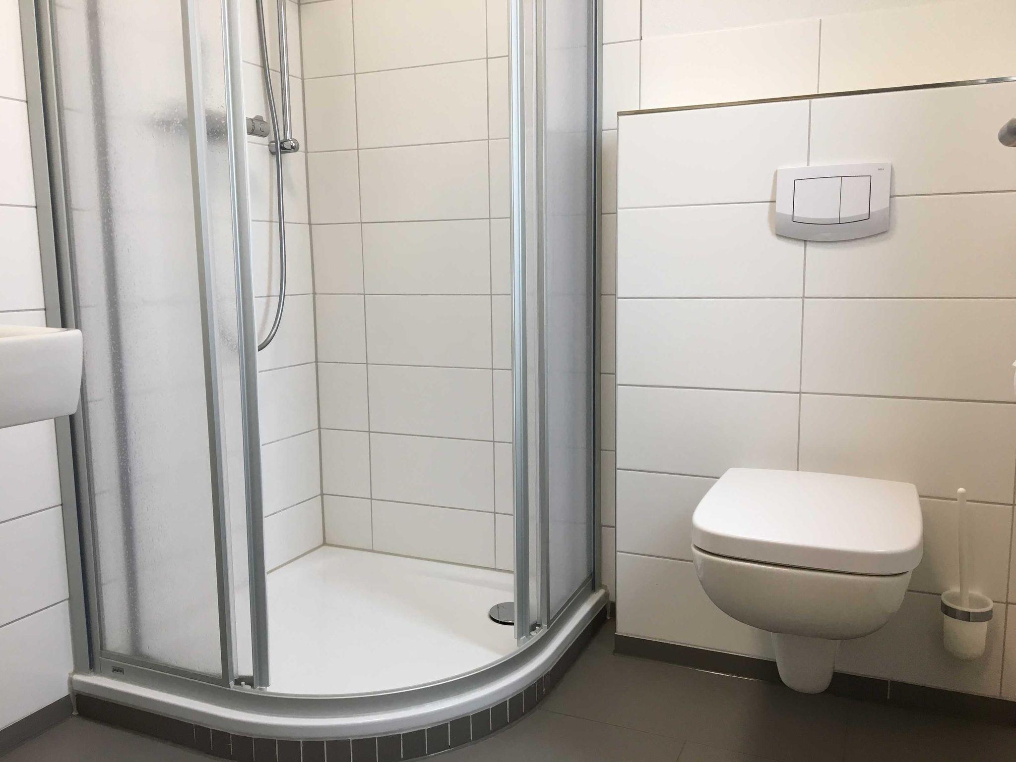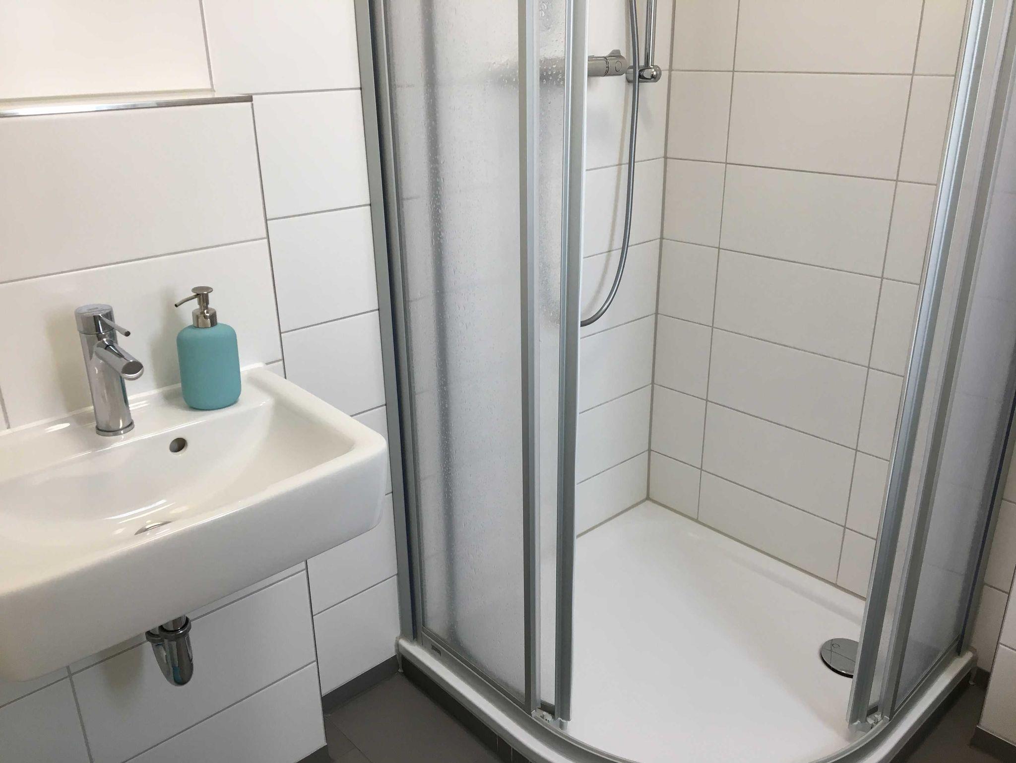Das moderne Duschbad verfügt über Tageslicht und ebenso wie der Wohnraum über eine Fußbodenheizung.