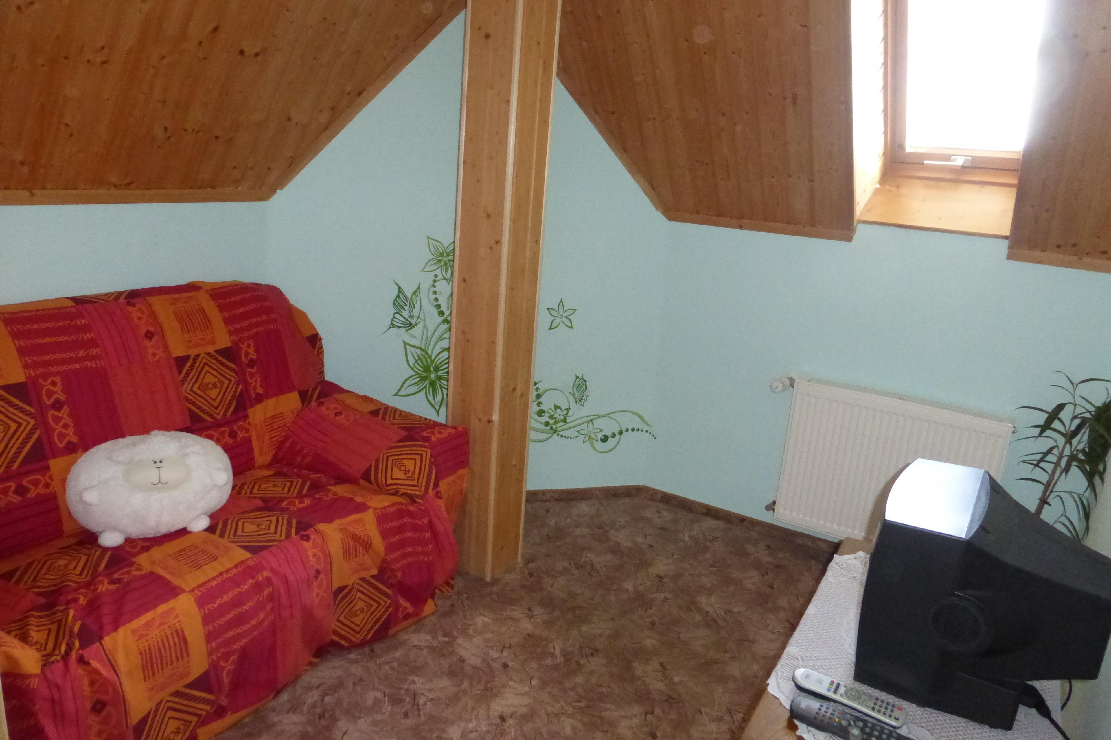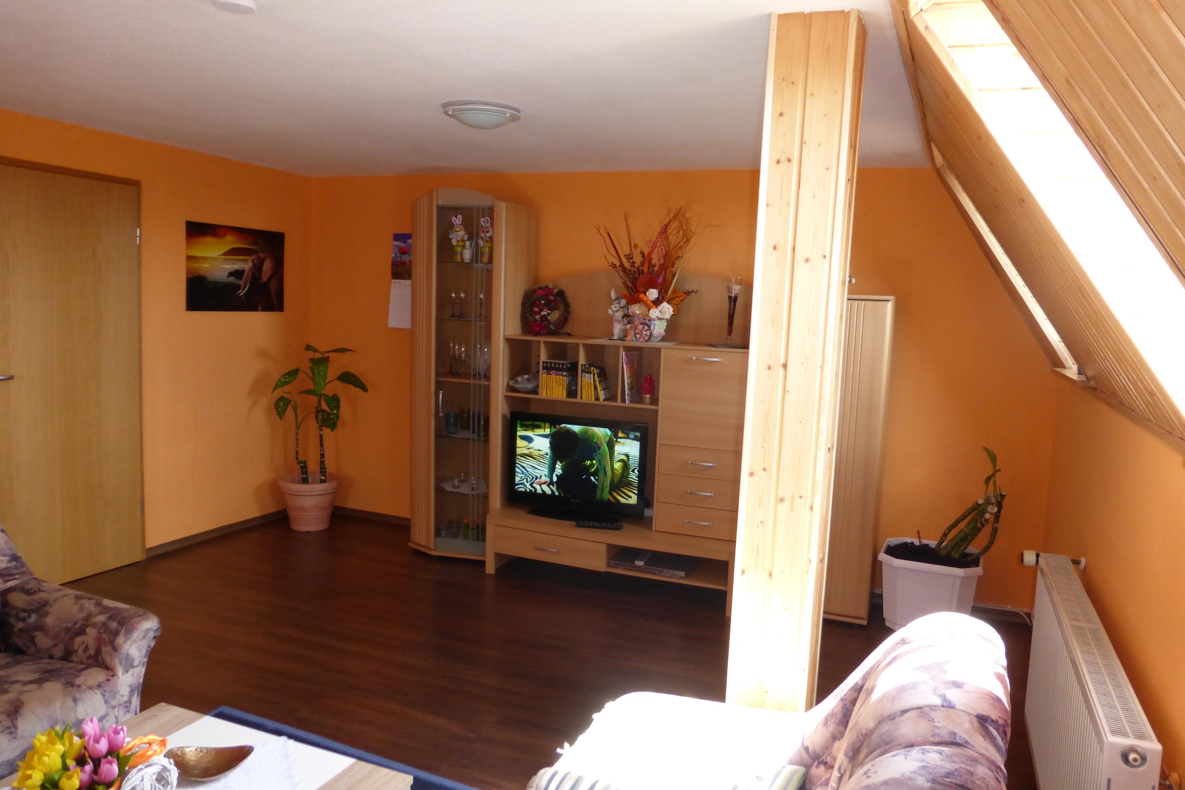 Im Wohnzimmer lädt eine große Couch zum Verweilen ein. Auch haben Sie hier einen Flachbild-TV (SAT-Empfang) und einen DVD-Player zur Verfügung.