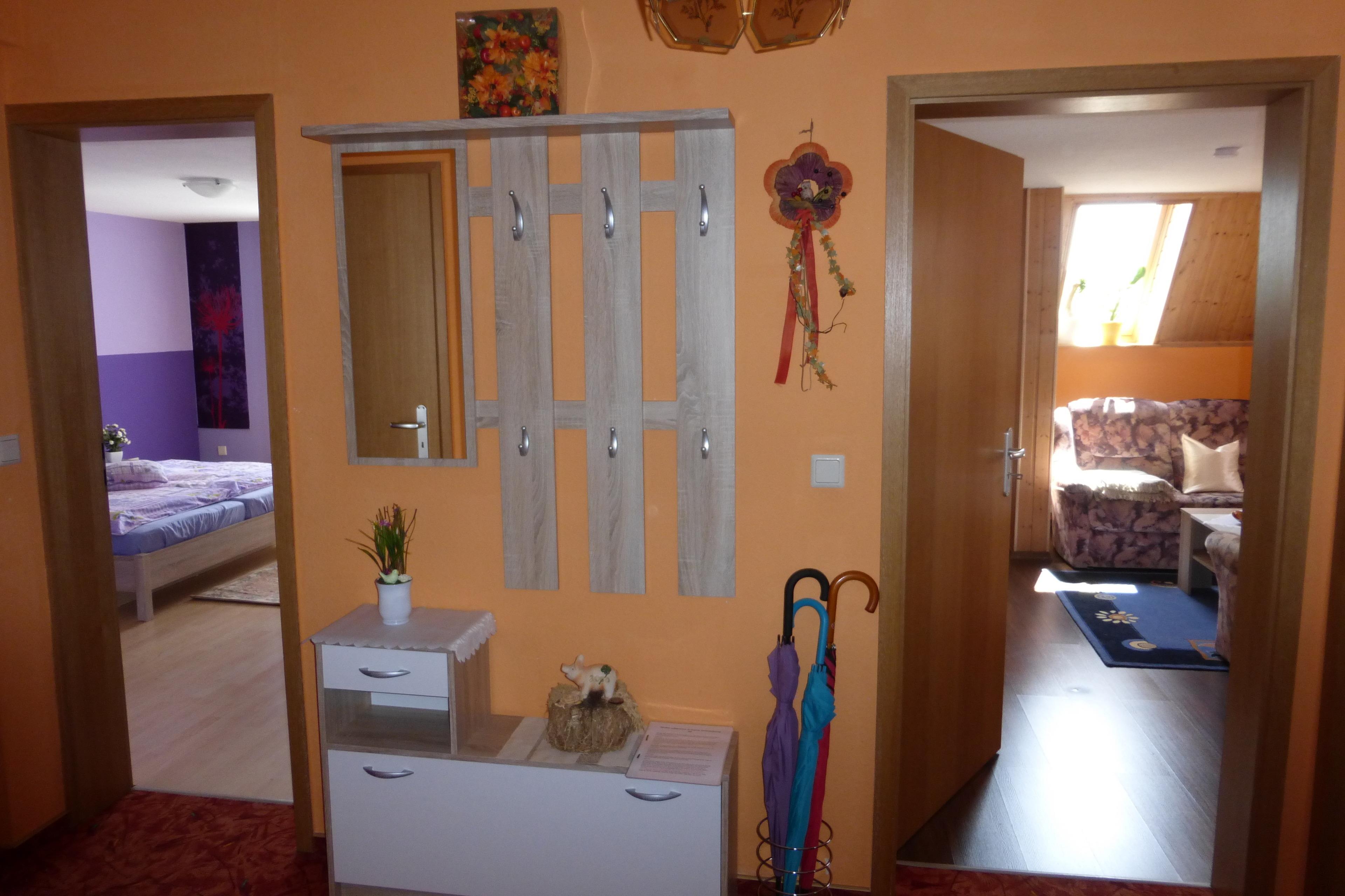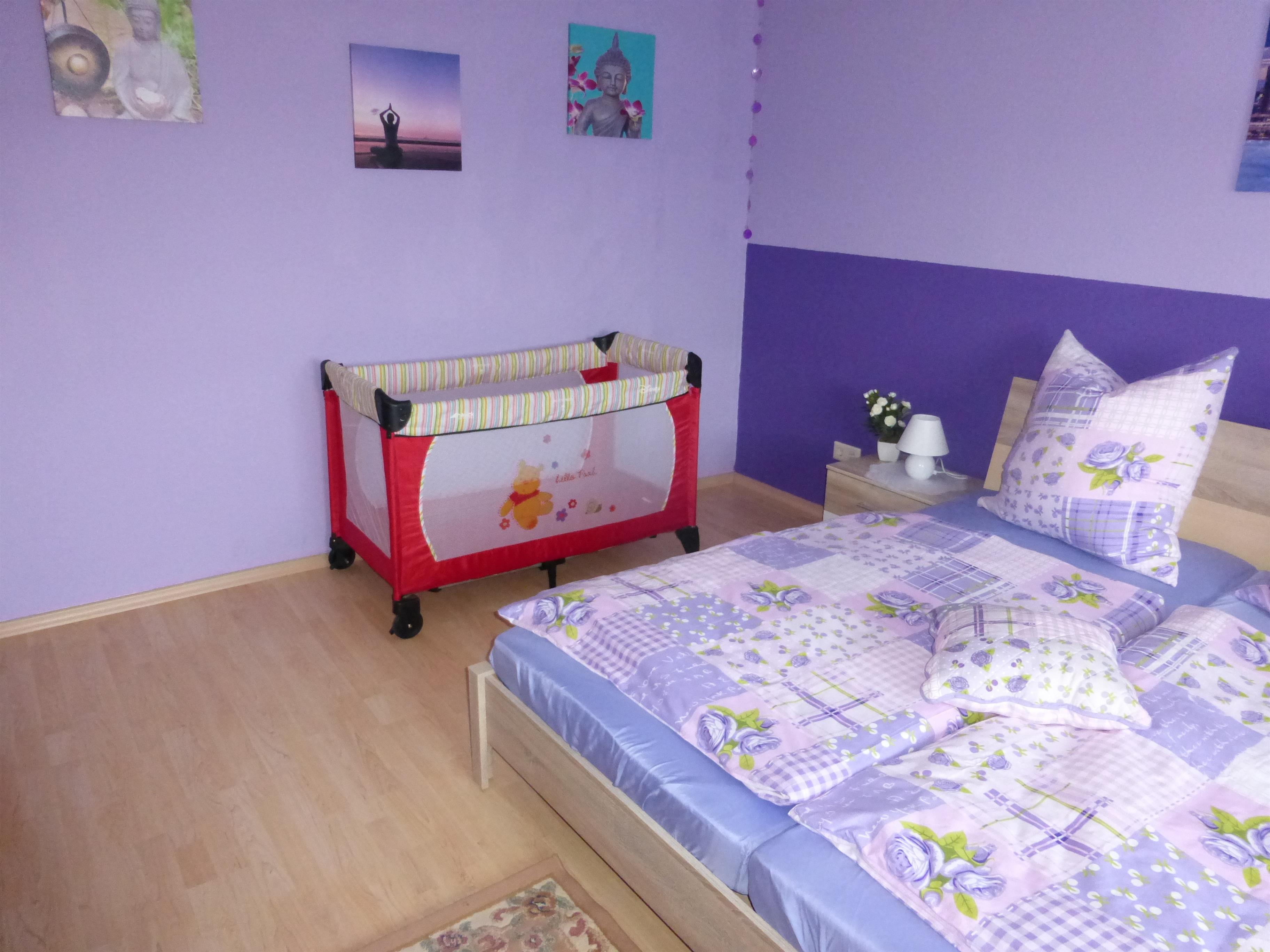 Insgesamt hat die Wohnung drei Schlafzimmer. Das erste mit einem Doppelbett (180x200cm) und einem 3-türigen Kleiderschrank, sowie Kommoden. Außerdem noch bei Bedarf ein Babybett für Kinder bis ca. 2 Jahre. Auch ein Hochstuhl kann zur Verfügung gestellt werden. Auf Wunsch leihen wir Ihnen auch eine Babywanne.