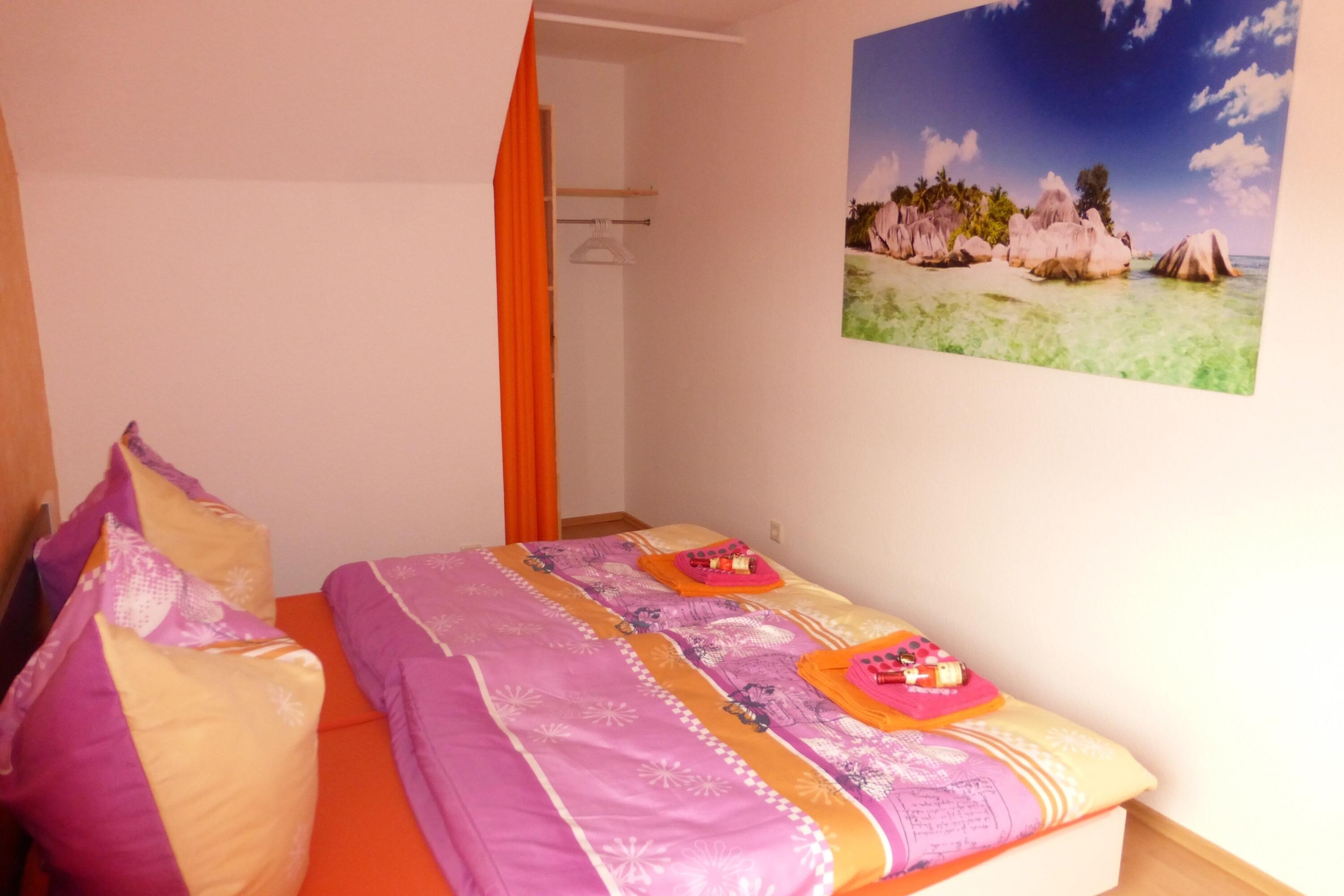 In den beiden Schlafzimmern finden Sie schließlich je ein Doppelbett (180x200 cm). In Schlafzimmer eins haben Sie einen viertürigen Kleiderschrank mit großem Spiegel. Im Schlafzimmer zwei können Sie im Kleinen einmal ausprobieren wie sich ein begehbarer Kleiderschrank anfühlen könnte. Hier haben Sie eine Miniaturausgabe davon. In beiden Schlafzimmern finden Sie auch Herrendiener für die Ablage der Kleidung während der Nacht.