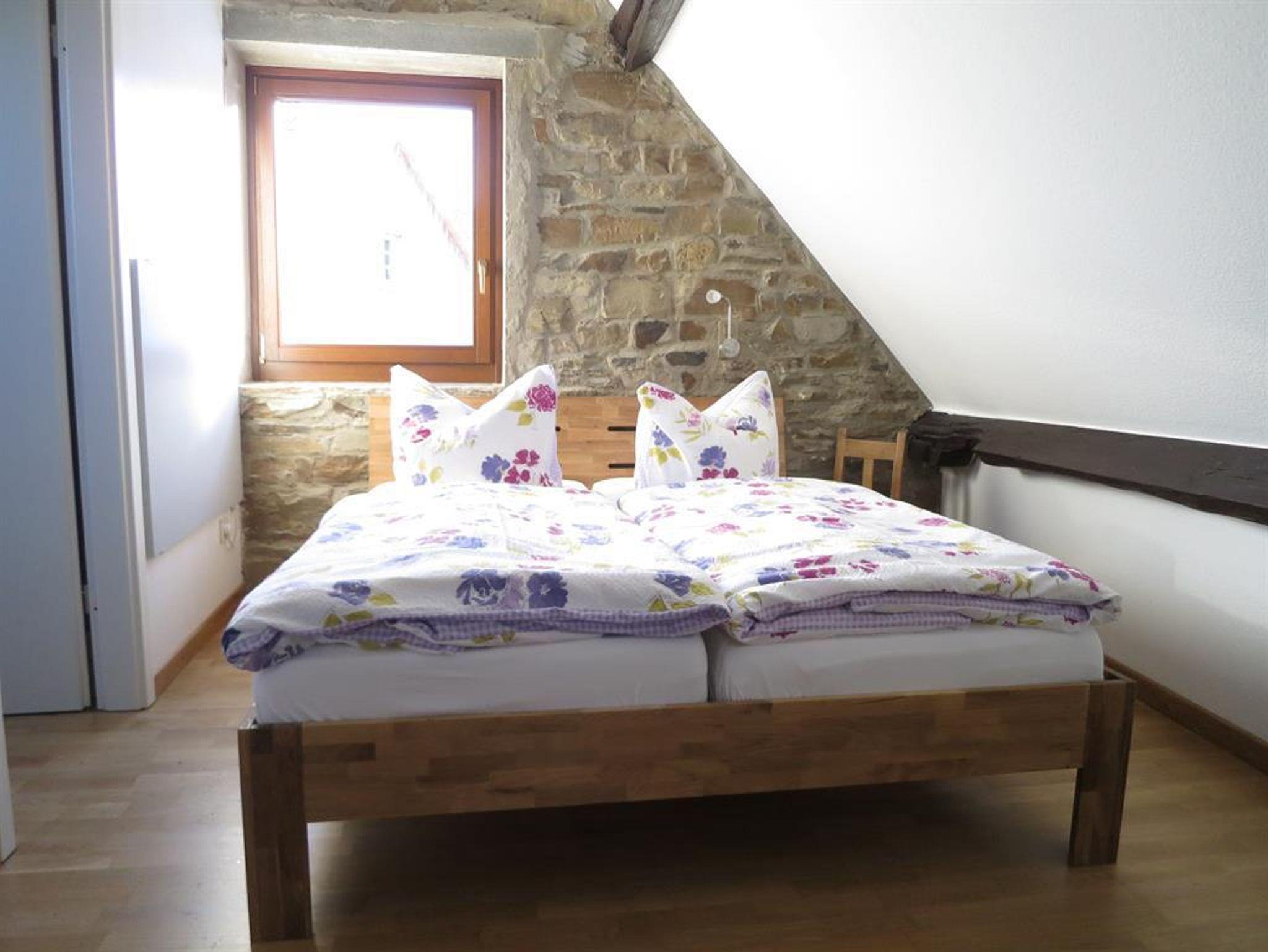 Diese Wohnung für vier Personen mit zwei getrennten Schlafzimmern mit jeweils eigenem Bad befindet sich im historischen Altbau des Hauses Hinneres. Mit einem wunderbaren Blick aufs Schalkenmehrener Maar kann man hier entspannen und den Urlaub genießen.