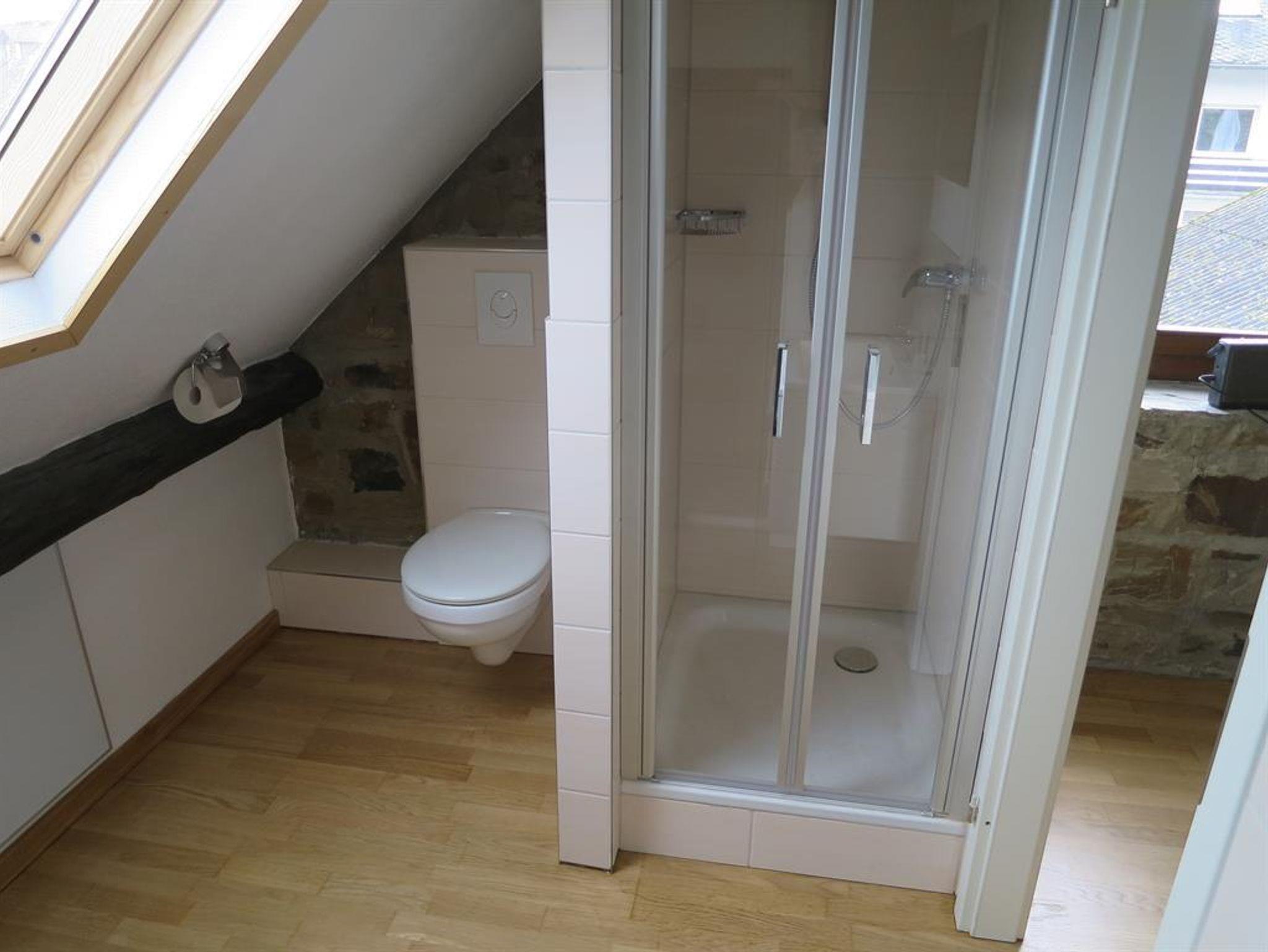 Im 1. Stock befindet sich die Küche, ein Schlafzimmer mit einem Badezimmer und ein Wohn- und Essraum. Im ausgebauten Dachgeschoss befindet sich ein weiterer Wohnraum mit wunderbarem Blick auf das Schalkenmehrener Maar. Ebenso ist hier ein zweites Schlafzimmer mit eigenem Bad vorhanden, so dass diese Wohnung sehr gut für vier Personen geeignet ist.