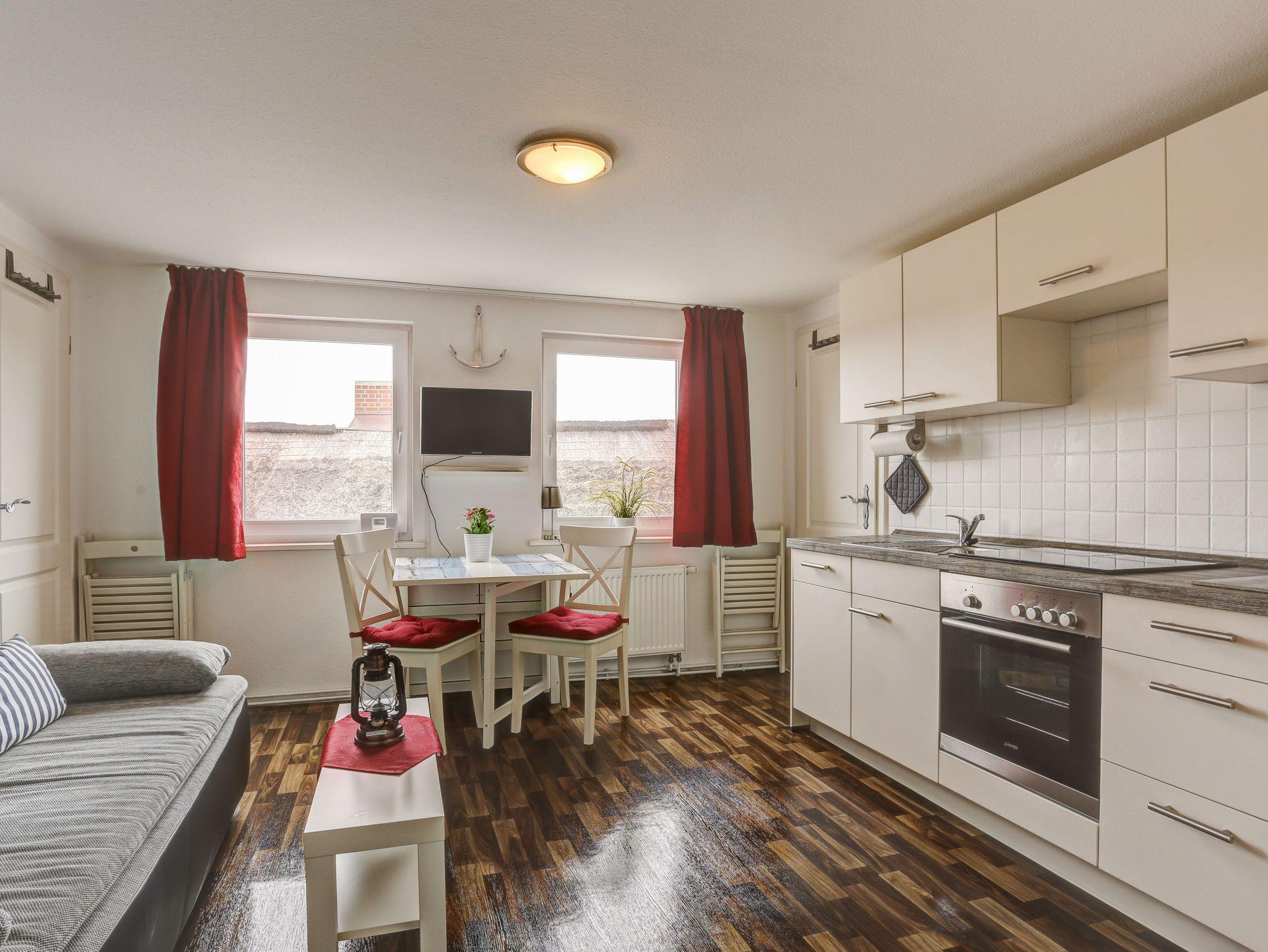 Im direkten Umfeld Ihrer Unterkunft erwarten Sie eine sehr gute Gastronomie sowie auch ein Natur-Sandstrand zum Baden und Sonnen oder zum Geniessen des Sonnenuntergangs mit Blick auf die Insel Hiddensee. Direkt neben dem Kapitänshaus erscheint die St. Johanneskirche aus dem 12. Jahrhundert allabendlich in romantischem Licht. Frisches Brot und Brötchen, regionale Lebensmittel und weitere Kleinigkeiten für den alltäglichen Gebrauch finden Sie im kleinen Hofladen an der Kirche. Das Kapitänshaus wurde in 2014 komplett modernisiert? die modernen und gepflegten Wohnungen sind mit neuem Mobiliar sowie modernen Einbauküchen inkl. Geschirrspüler ausgestattet. Weiterhin erwarten Sie Grillmöglichkeiten, eine familienfreundliche Einrichtung (Kinderbetten/-stühle) und auch Gefriermöglichkeiten für Angelfreunde sowie natürlich für jede Wohnung ein Parkplatz.