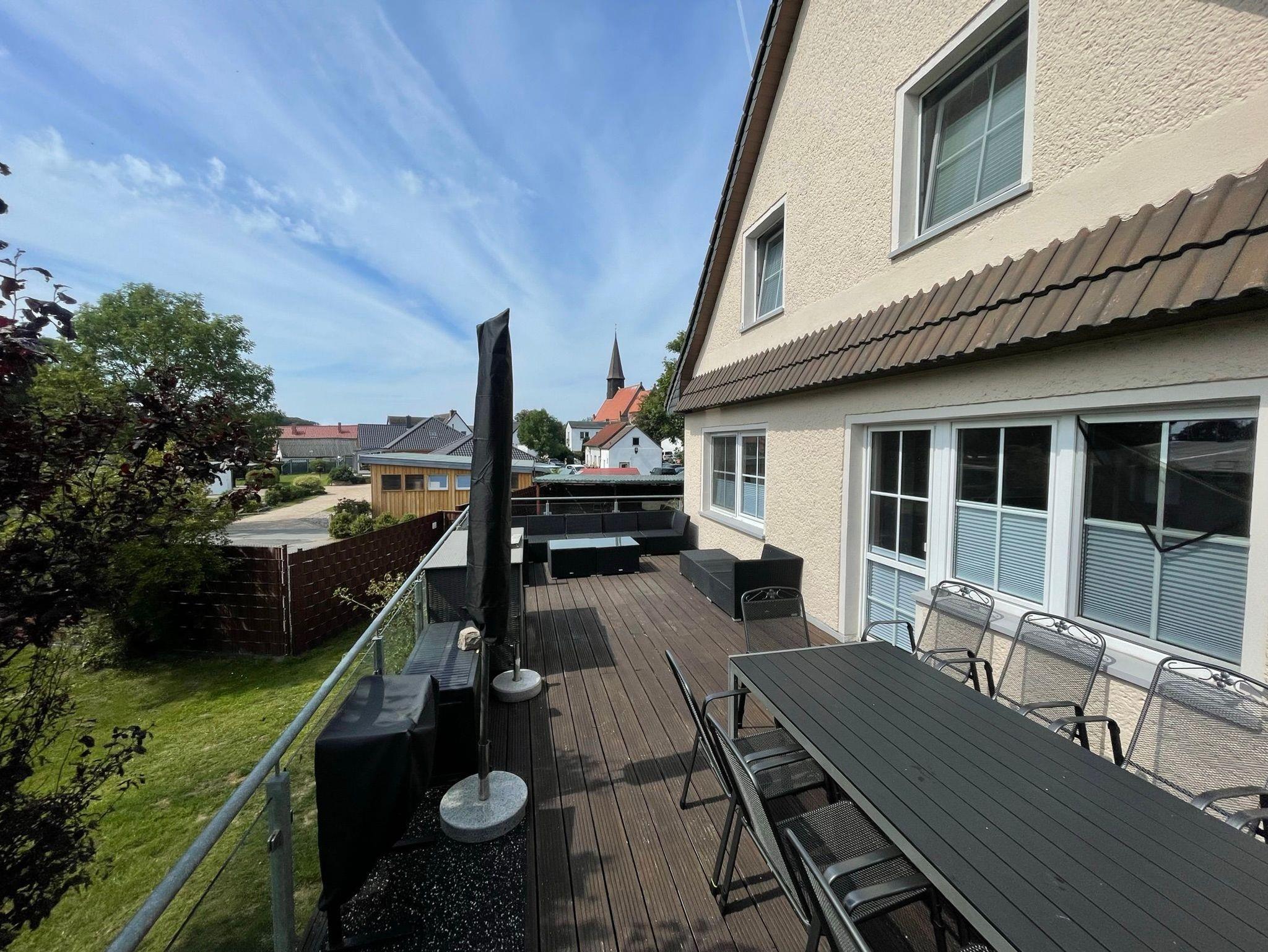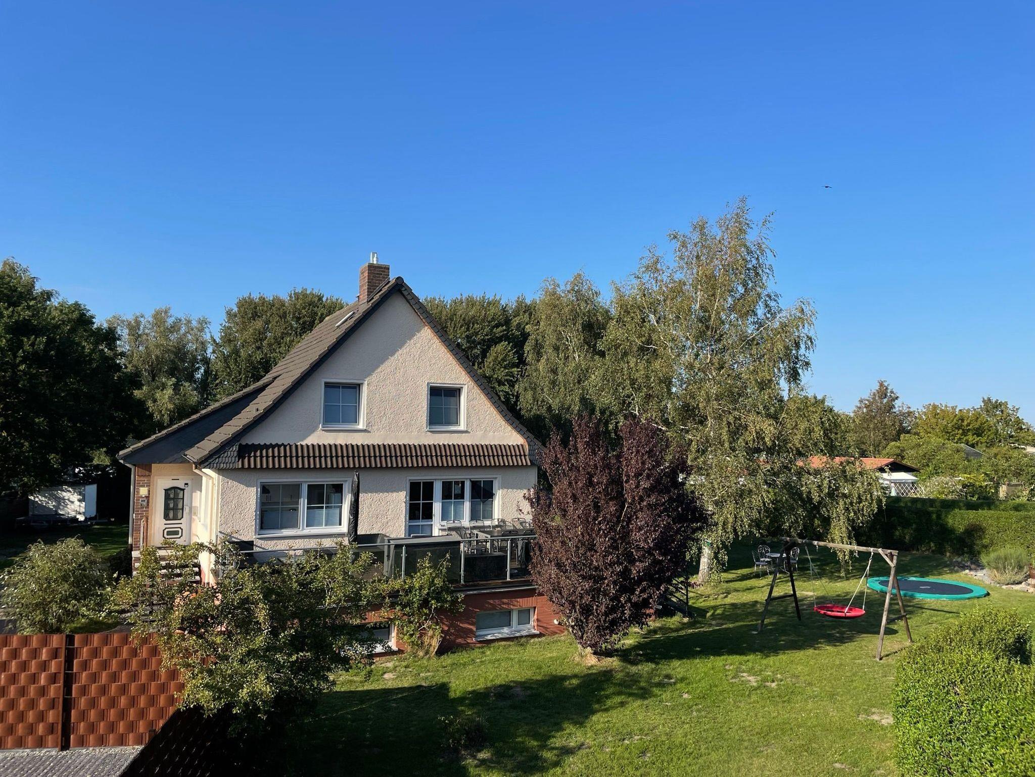 Die Wohnung 1 (im Obergeschoss und Erdgeschoss eines 1987 erbauten klassischen Rügenhauses) bietet eine grosse Terrasse mit Blick in den Garten und zur historischen Kirche, drei sep. Schlafzimmer, ein sehr grosses Wohnzimmer mit Kamin, eine voll ausgestattete Küche sowie ein Duschbad und ein WC.