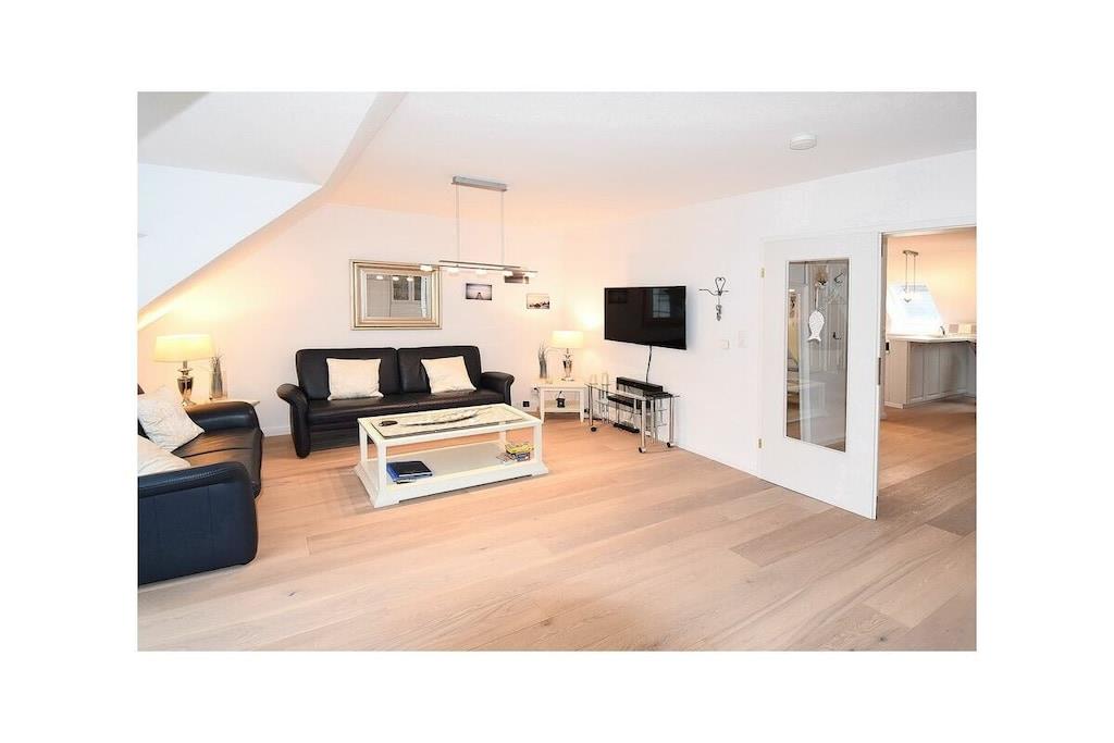 Die charmante lichtdurchflutete 3-Zimmer-Maisonette-Wohnung in Scharbeutz bietet Platz für 2-4 Personen, eine gehobene Ausstattung, Strandnähe (450m) und einen Blick ins Grüne vom Balkon. Der Separate Eingang verleiht dem Objekt einen Hauscharakter. Die Wohnung besteht aus einem großen Wohnraum mit hochwertiger Ledergarnitur, TV-Flat-Screen 4K, SAT Anschluss, Blue-Ray-Player, W-LAN Anschluss Stereoanlange und ist mit einem hochwertigen Echtholzdielenboden verlegt. Im Wohnzimmerschrank befindet sich ein leicht ausklappbares Doppelbett. In der hellen Wohnküche befinden sich ein Herd mit Ceranfeld, Umluftbackofen, Geschirrspülmaschine, Kühlschrank/Gefrierschrank. Der Essbereich ist durch eine trendige Küchentheke getrennt. Das separate, helle Schlafzimmer im 2. OG bietet ein Doppelbett, einen schwenkbaren TV-Flat Screen, Einbaukleiderschrank, Schreibtisch und einen seitlichen Blick auf die Ostsee! Im geräumigen Badezimmer befinden sich eine Dusche, Waschmaschine, Schminkspiegel und Föhn. Auf dem Balkon darf mit einem Elektrogrill (vorhanden) gegrillt werden. Ein eigener Stellplatz rechts vom Hauseingang (der linke) steht zur Verfügung. Auf dem PKW Stellplatz gibt es 2 Fahrradbügel, die das Anschließen von max. 4 Fahrrädern ermöglicht. Die Wohnung ist eine Nichtraucherwohnung, Haustiere sind nicht erlaubt. Über eine Bewertung auf unserer Website: https://scharbeutz-ferienwohnung.com würden wir uns sehr freuen!