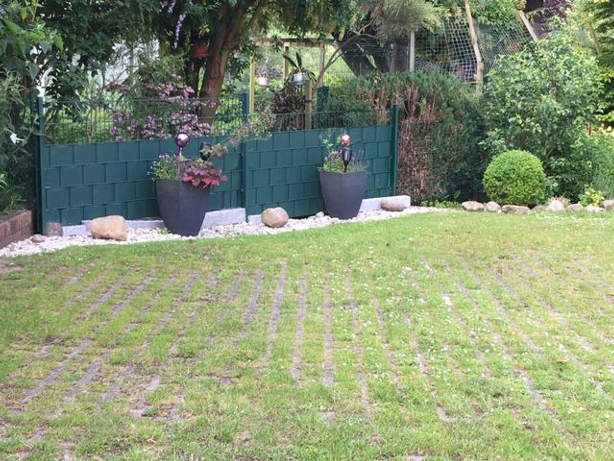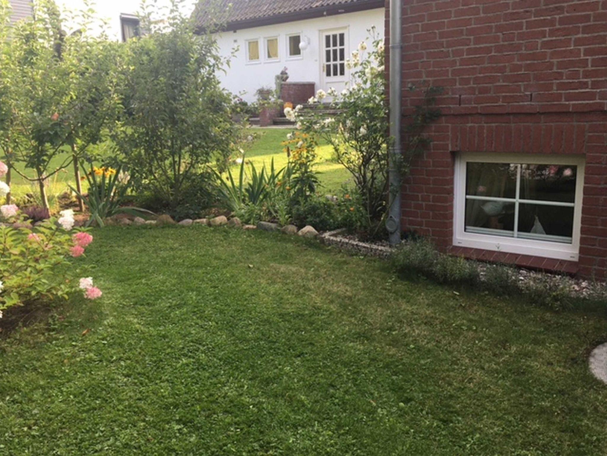 in einer gepflegten Sackgasse ohne Durchgangsverkehr. Der grüne Garten lädt zum