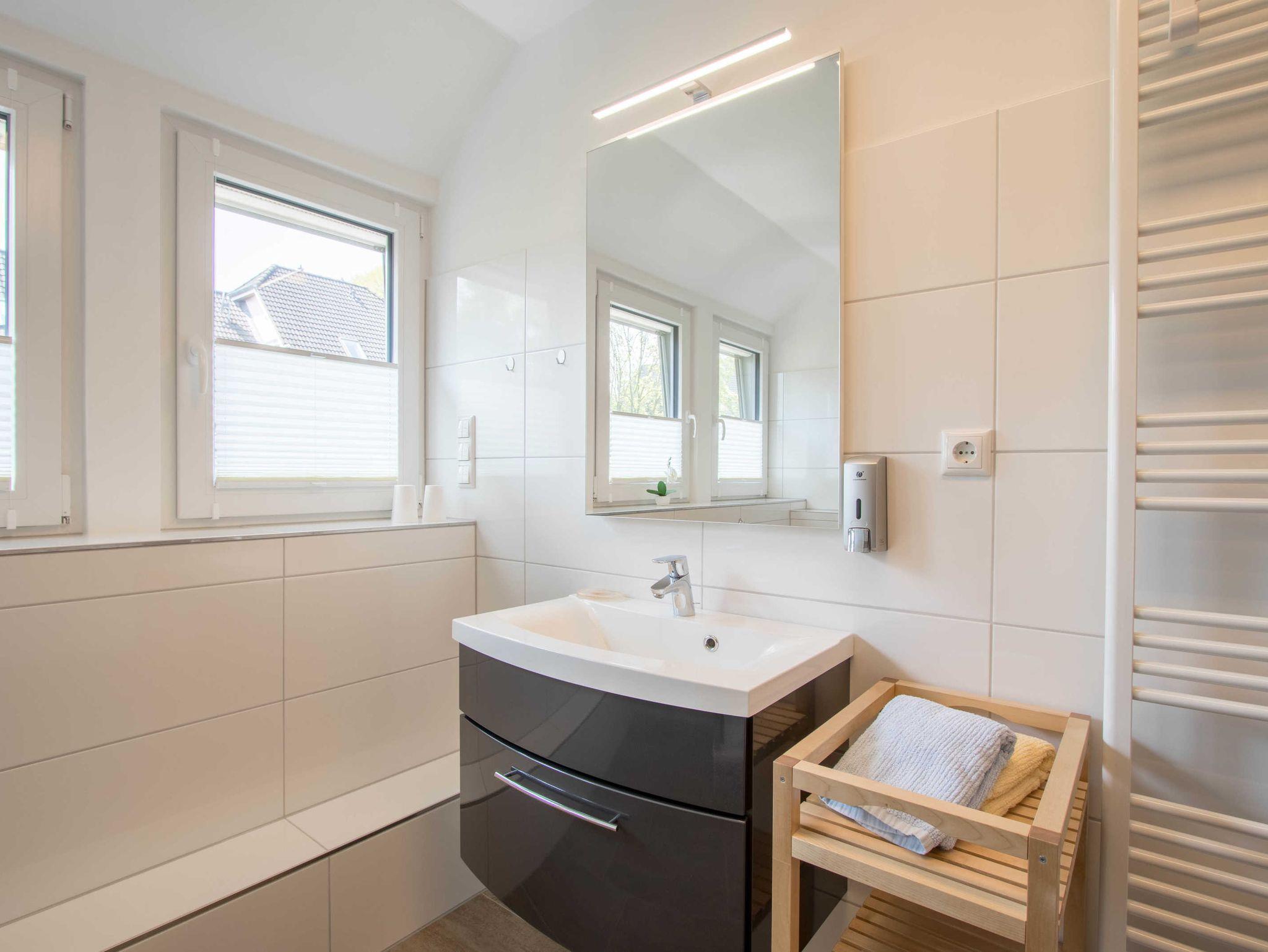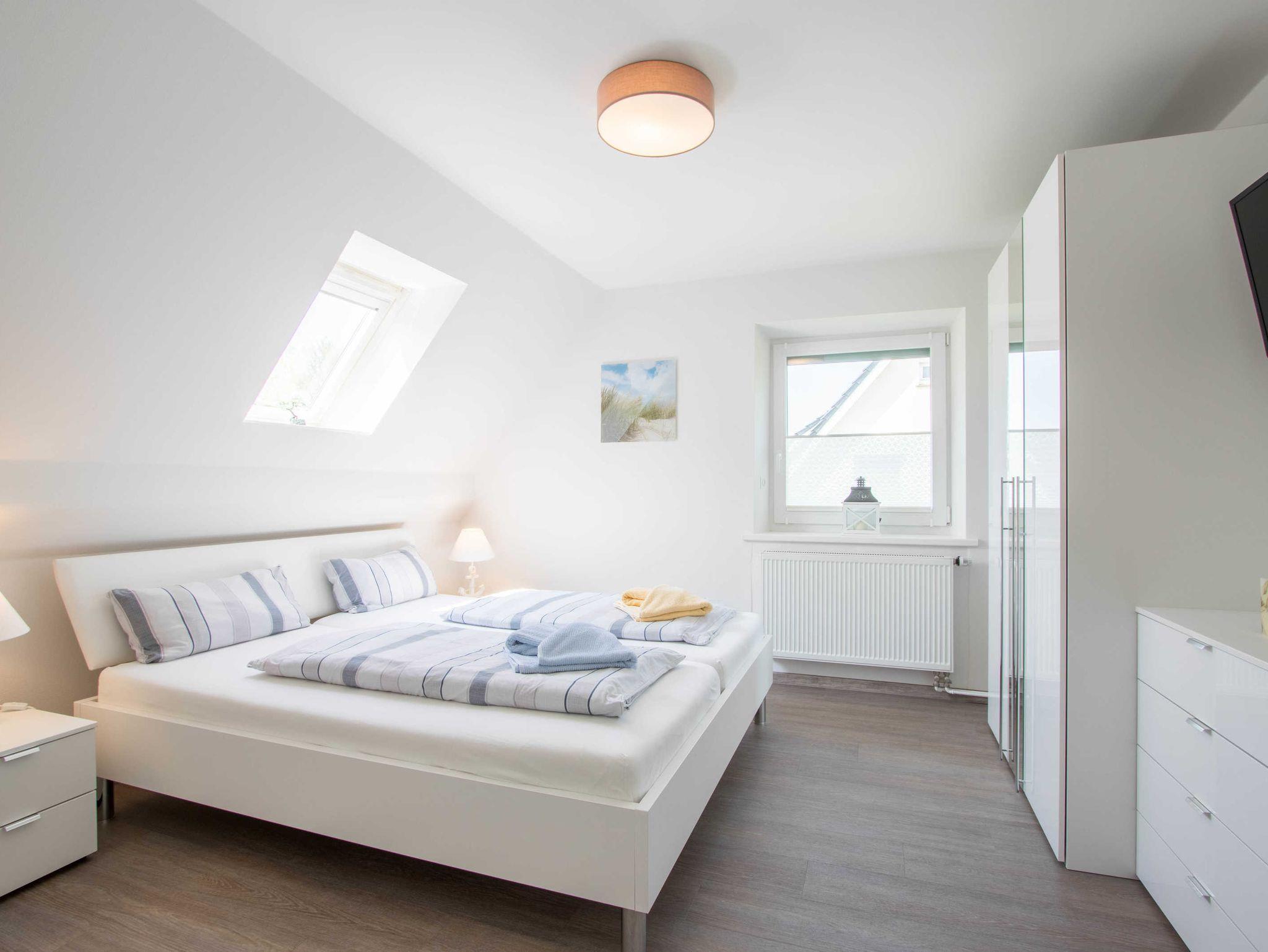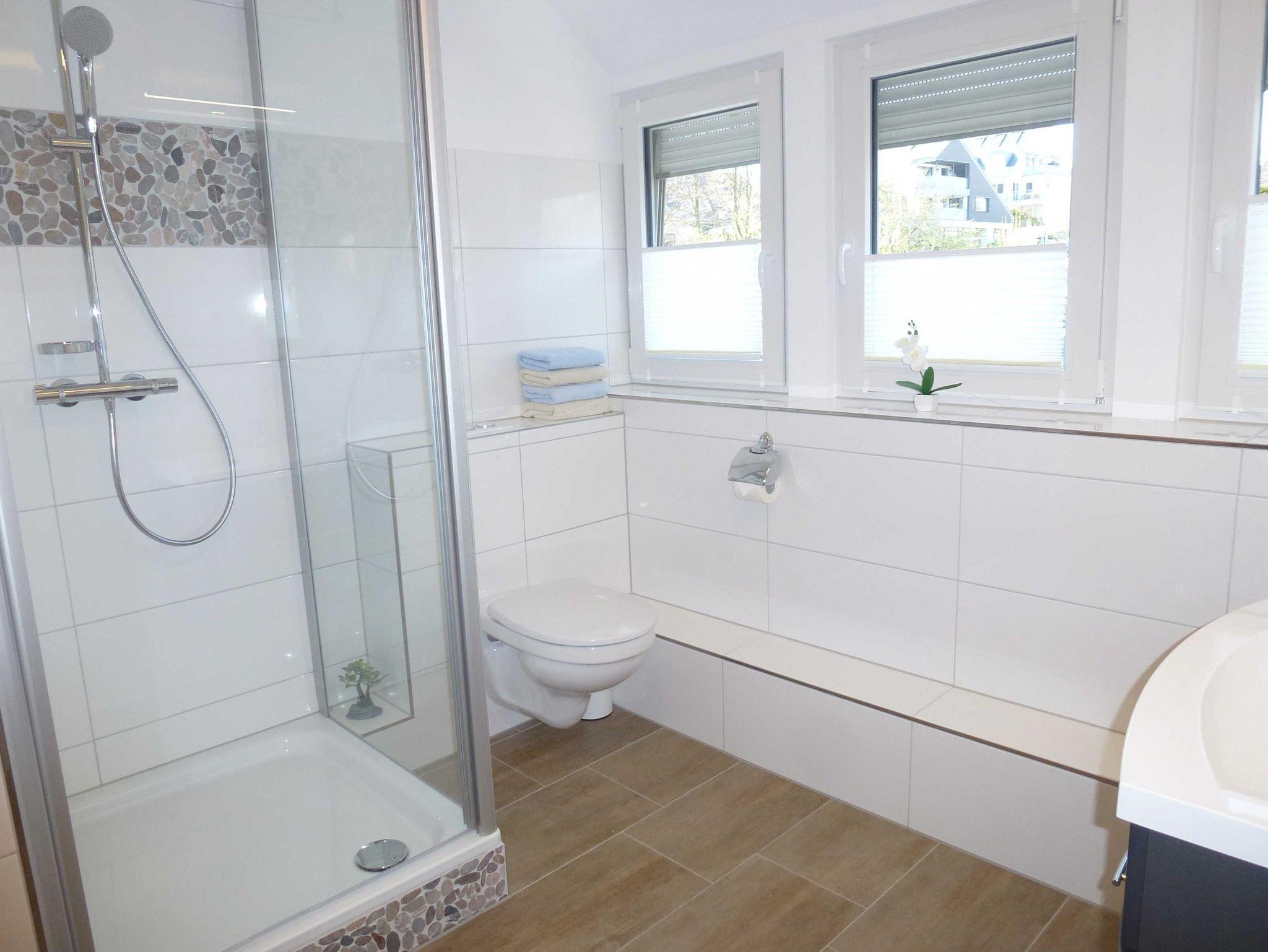 Die Ferienwohnung 2 ist mit Kabel-TV und einer Mikro-Hifi-Anlage ausgestattet. Für gemütliche Abende haben wir Bücher und Spiele für Groß und Klein bereitgestellt. In der Küche befindet sich neben Backofen und Mikrowelle auch eine Spülmaschine. Im Schlafzimmer stehen ein Doppelbett (1,80 x 2,00m) und ein zusätzlicher Flachbildfernseher mit 32 Zoll bereit. Die Fenster sind mit Außenrollos versehen und das modern gestaltete Bad verfügt über eine Infrarotsauna.