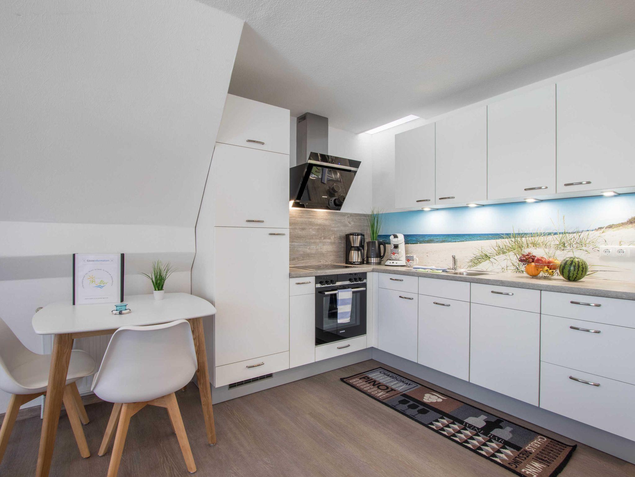 Diese 2-Zimmer Ferienwohnung ist ca. 50m² groß und bietet Platz für 2 Gäste. Gern kann auch ein Babybett dazugestellt werden. Die Wohnung ist modern und gemütlich eingerichtet und man kann sich zu Zweit ebenso wohl fühlen wie als Familie mit Kind.