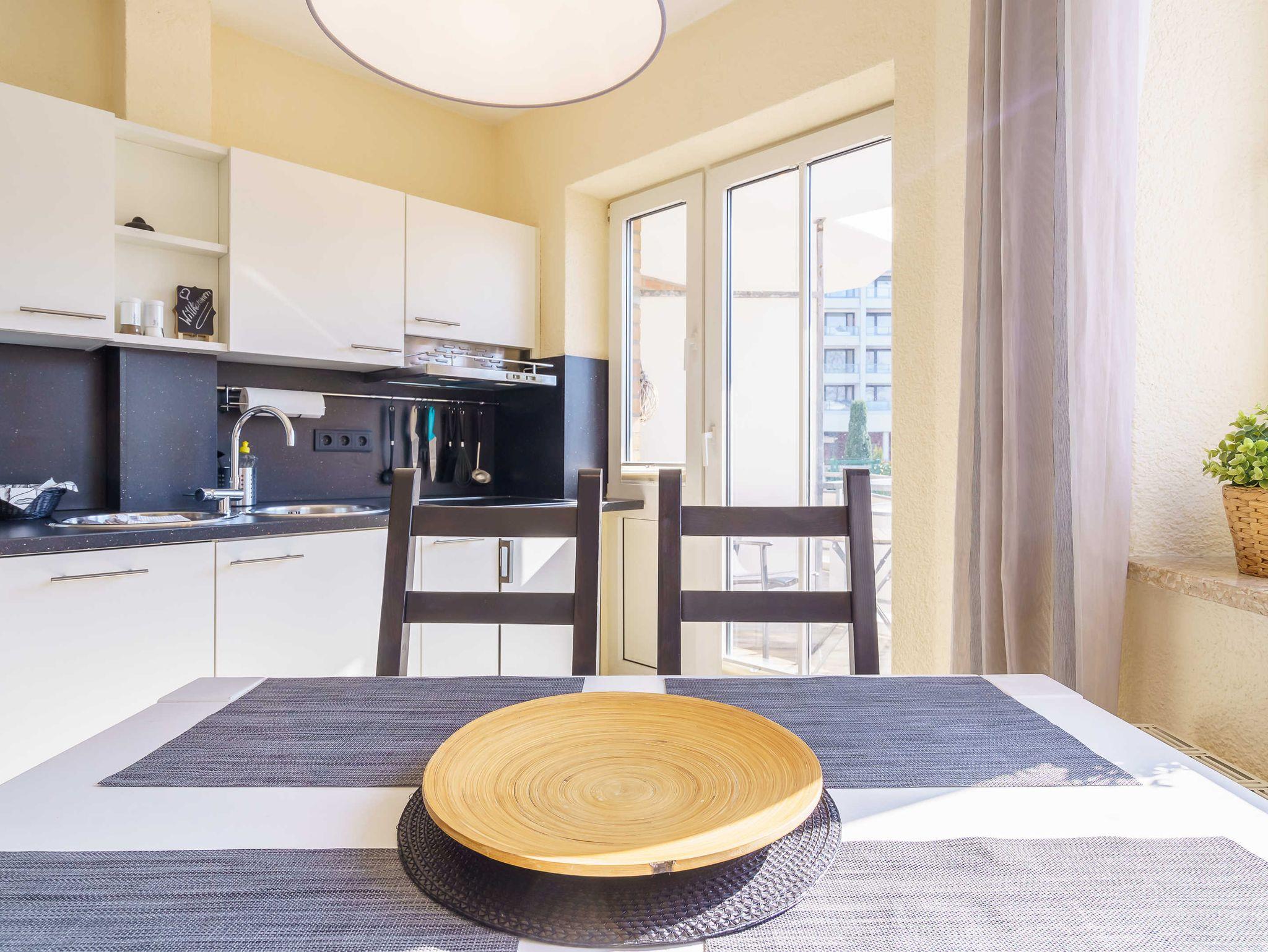 Die Ferienwohnung liegt im Erdgeschoss und hat 45m². Sie bietet einen erholsamen Urlaub für 2 Personen. Die Wohnung ist mit neuen Möbeln ausgestattet. Nichtraucher, Fußboden Designer Planken, Schwimmbad im Haus. Die Toilette und Dusche sind voneinander getrennt.