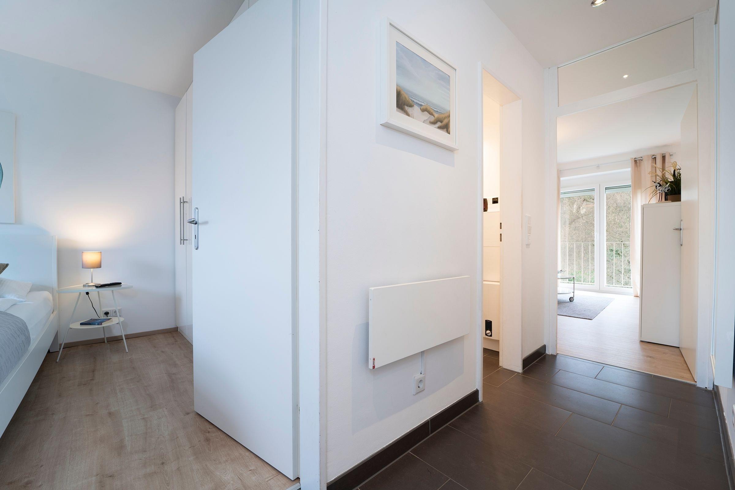Geradeaus das Wohnzimmer, herrlich faulenzen können Sie hier auf der kuscheligen Schlafcouch (160x200 cm) und nebenbei vielleicht ihre Lieblingsserie im Fernsehen ansehen. Am gemütlichen Esstisch finden Sie genug Platz, um gemeinsam beisammenzusitzen um zu spielen, zu essen und sich vielleicht auch der einen oder anderen kulinarischen Köstlichkeit des Nordens hinzugeben. Verdunkelungsgardinen zu ziehen und gemütlich im Bett noch ein Buch lesen, im separaten Schlafzimmer mit Doppelbett (2x 80x200cm), Nachttische auf jeder Bettseite und Nachttischlampen mit Leselampen bringen ausreichend Beleuchtung dafür. Ein großer Kleiderschrank verstaut Ihre Sachen. Die separate Küche ist vollwertig ausgestattet. Das moderne Duschbad mit Handtuchwärmer und WC rundet den Anspruch dieser Ferienwohnung ab. Der WLAN-Anschluss ist selbstverständlich inklusive. Einem entspannten Wochenendausflug, einem Kurztrip um dem Alltag zu entfliehen oder dem verdienten Jahresurlaub steht nichts mehr in Wege. Herzlich Willkommen in Scharbeutz!