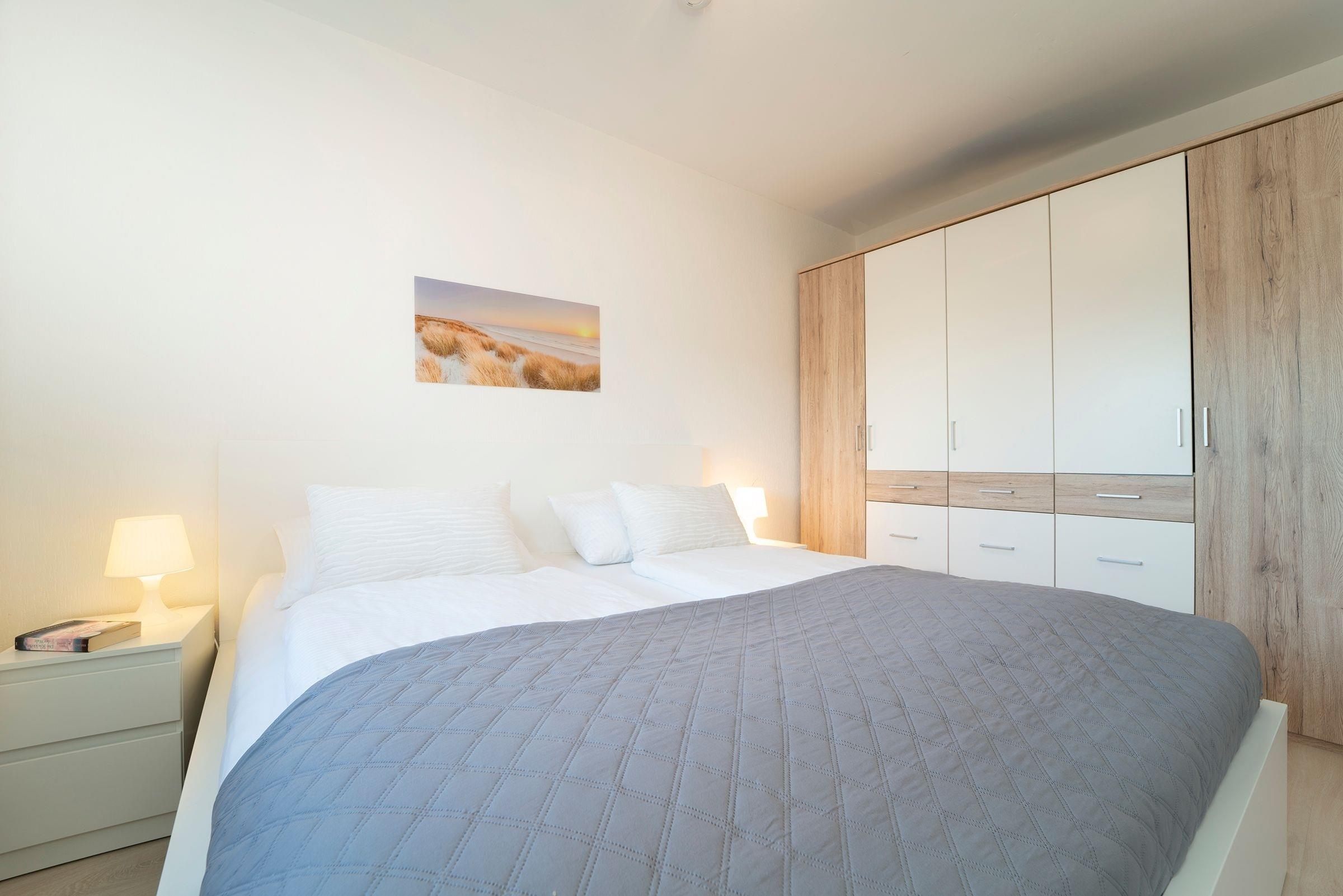 Schlafzimmer: 1 Doppelbett (180x200 cm), Kleiderschrank, Verdunkelungsmöglichkeit