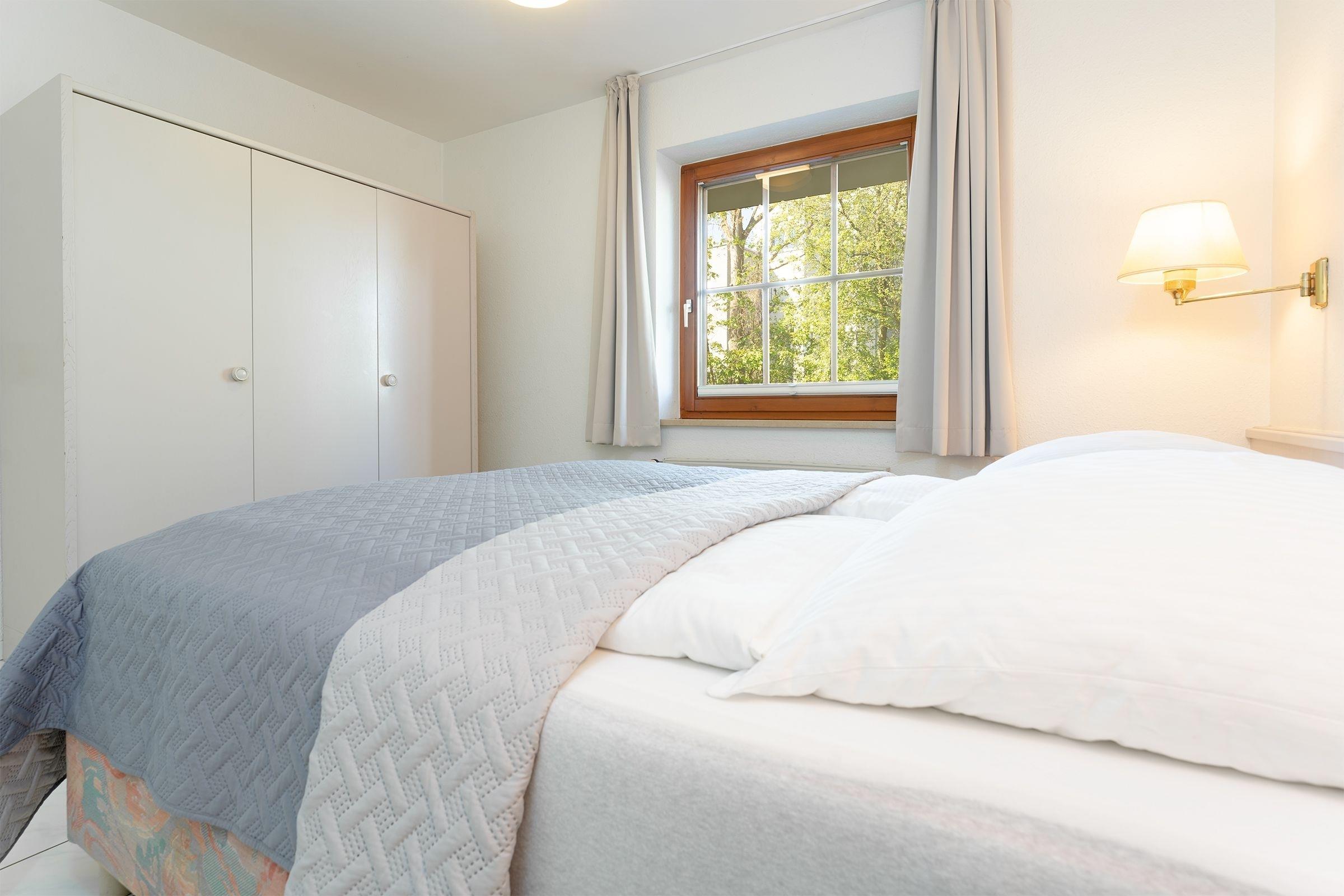 Schlafzimmer: 1 Doppelbett (2x 90x200 cm), Kleiderschrank, Verdunkelungsgardinen