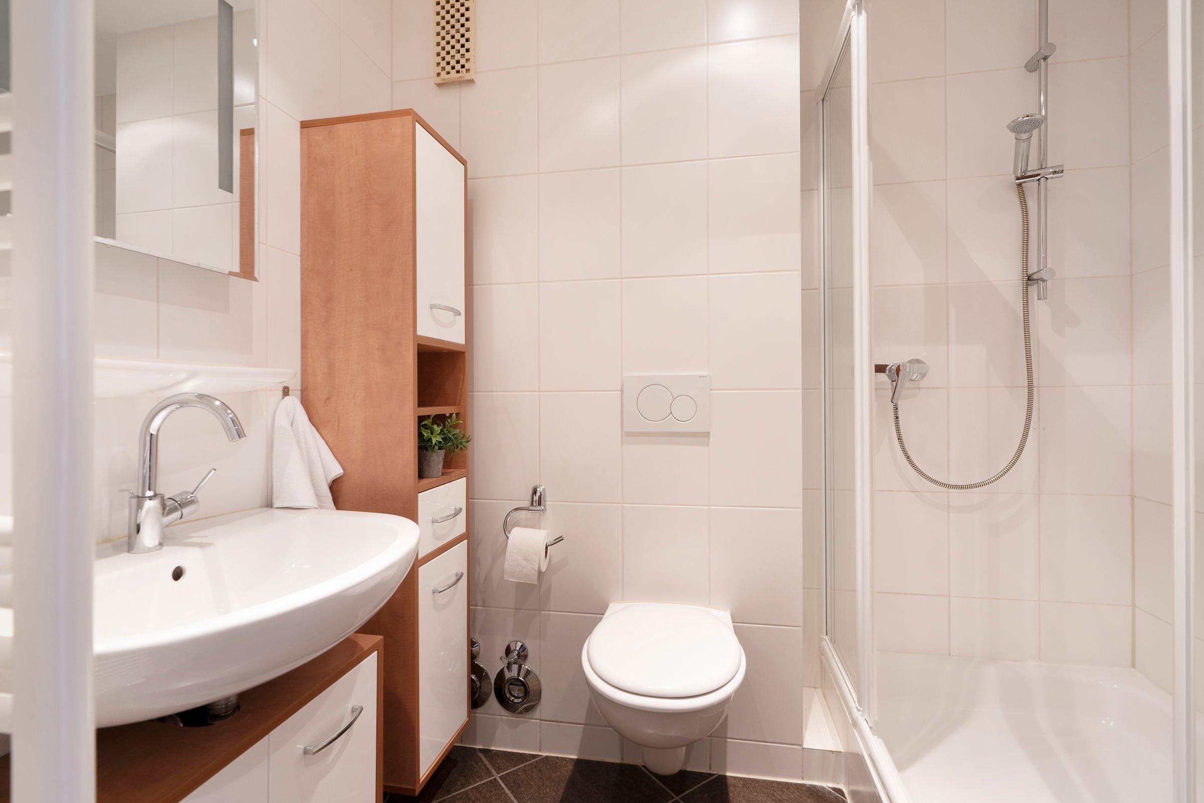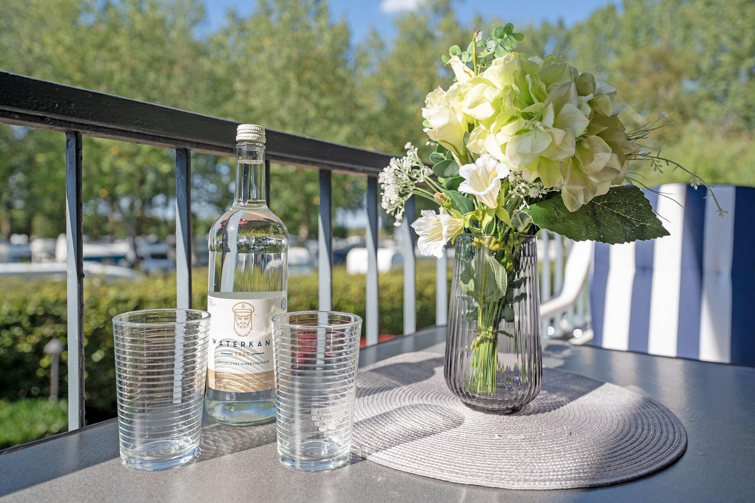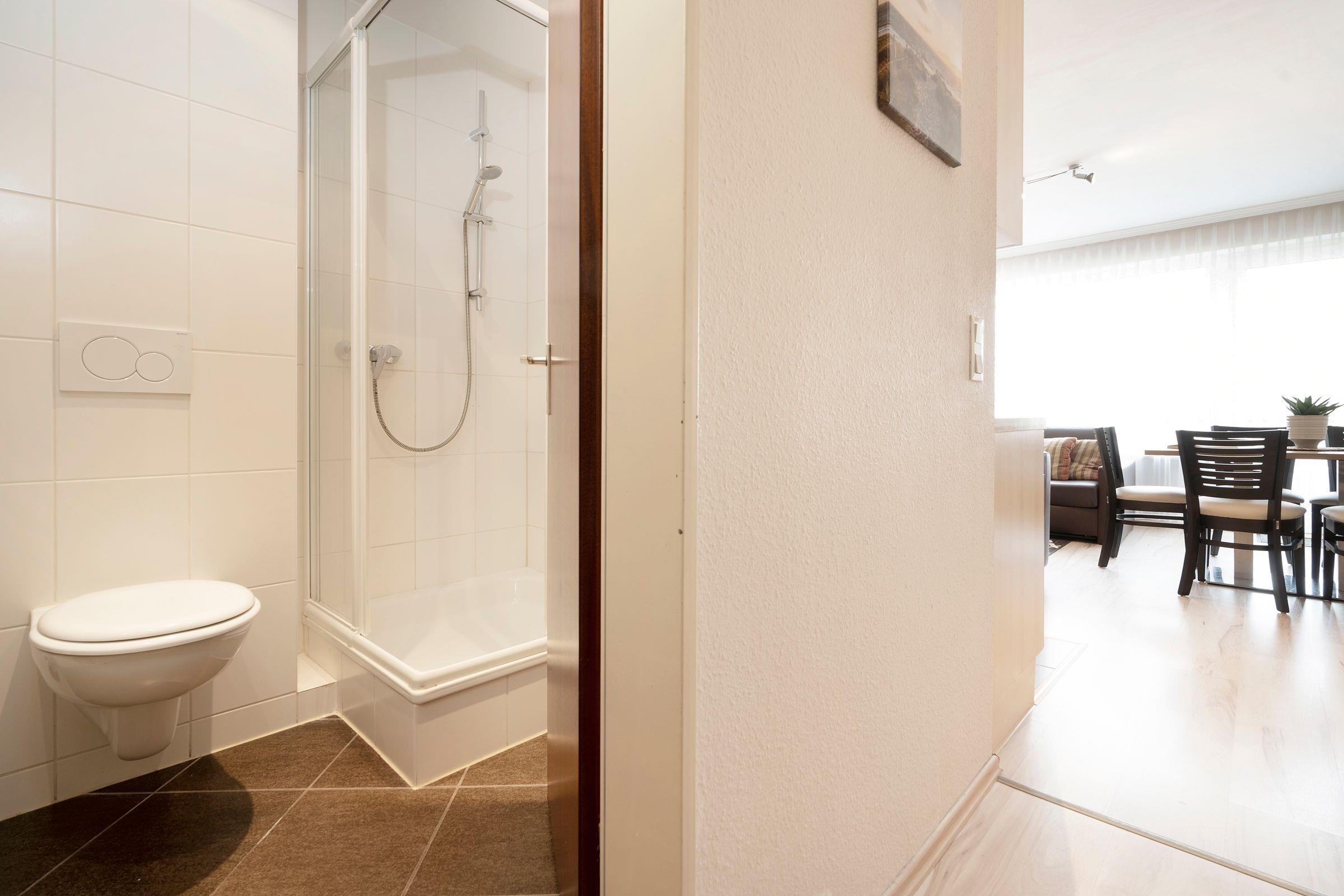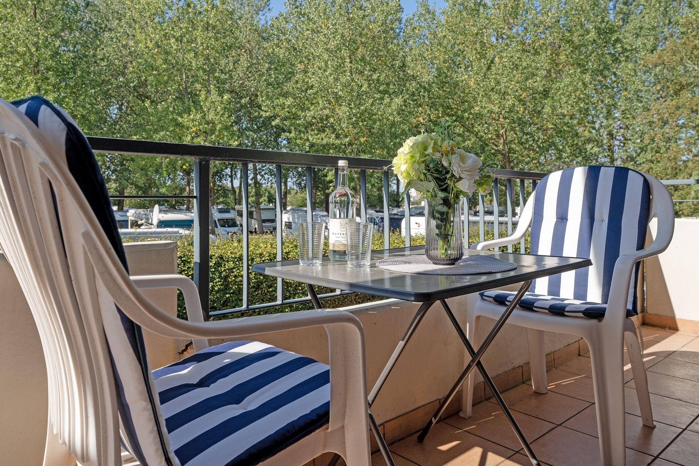 Damit Sie auch im Urlaub immer auf dem Laufenden bleiben, steht ein WLAN-Anschluss zur kostenlosen Nutzung bereit sowie ein Smart TV. Im separaten Schlafzimmer mit hochwertigem Doppelbett (180x200 cm) schlafen Sie so prima wie zuhause. Das zweite Schlafzimmer ist mit gemütlichem Etagenbett (2x 90x200 cm) möbliert. Machen Sie es sich abends auf dem Sofa bequem, hier entsteht bei Bedarf ein weiterer Schlafplatz (140x180 cm). Ihre Urlaubstage können Sie entspannt auf Ihren zwei möblierten Balkonen mit Blick ins Grüne ausklingen lassen. Pure Idylle! Die moderne Küchenzeile ist in den Wohnraum integriert und erfreut im Urlaub mit Alltagshelfern wie Backofen und Spülmaschine. Genießen Sie die erste Tasse Kaffee am modernen Esstisch. Das kleine, aber feine Badezimmer ist weiß gefliest und sorgt mit Eckdusche (Einstiegshöhe: 30 cm), Fön und beleuchtetem Spiegel für gute Laune.