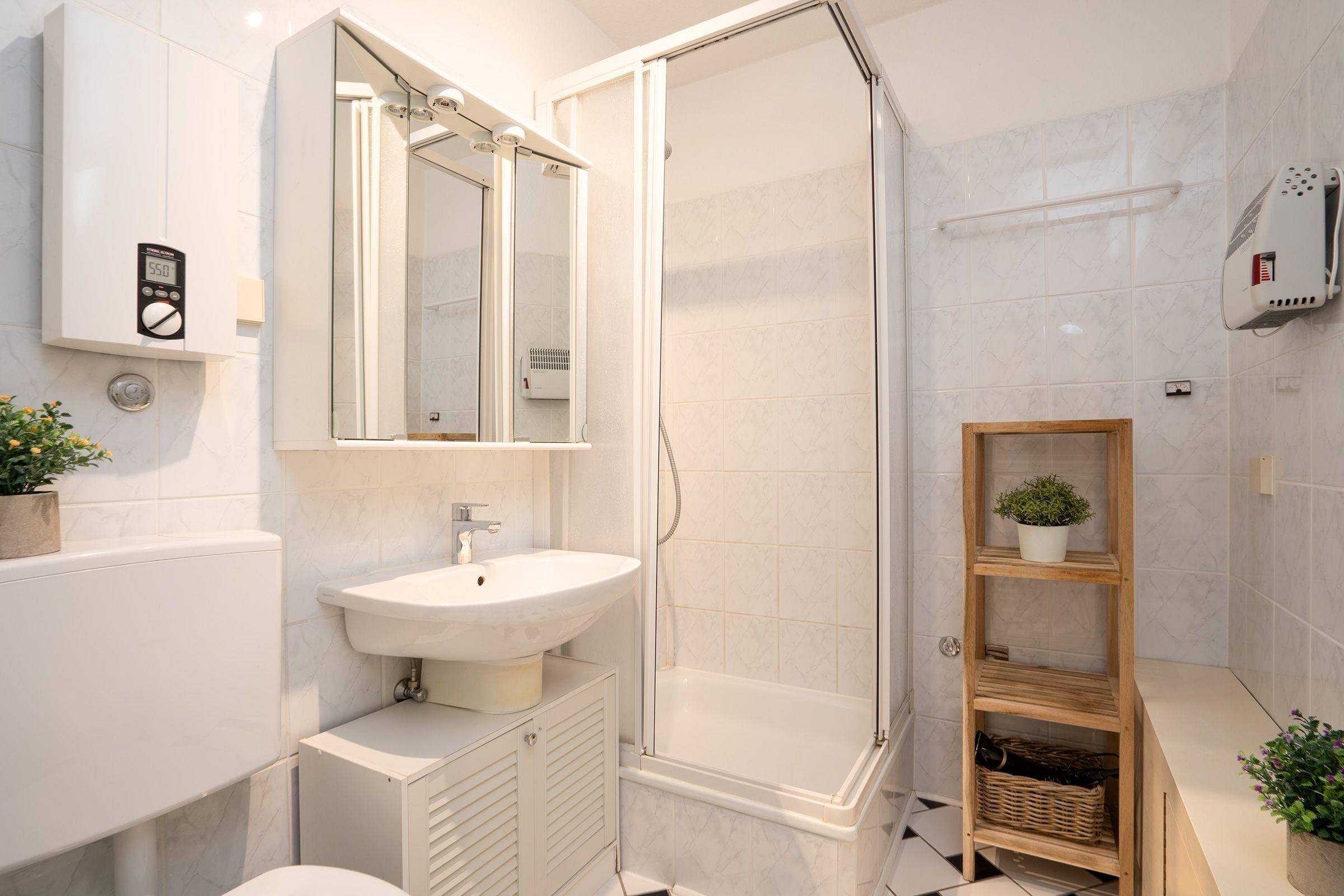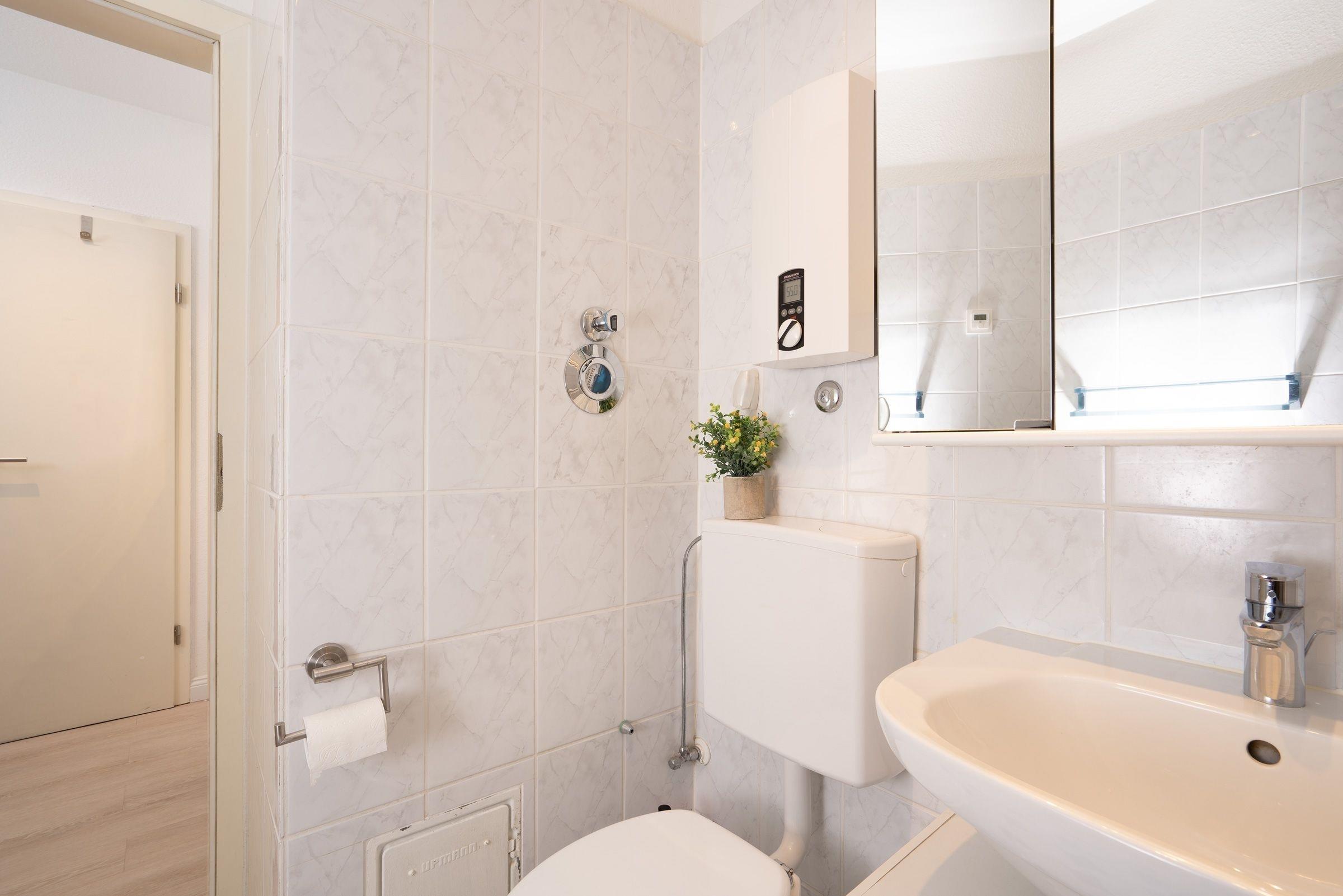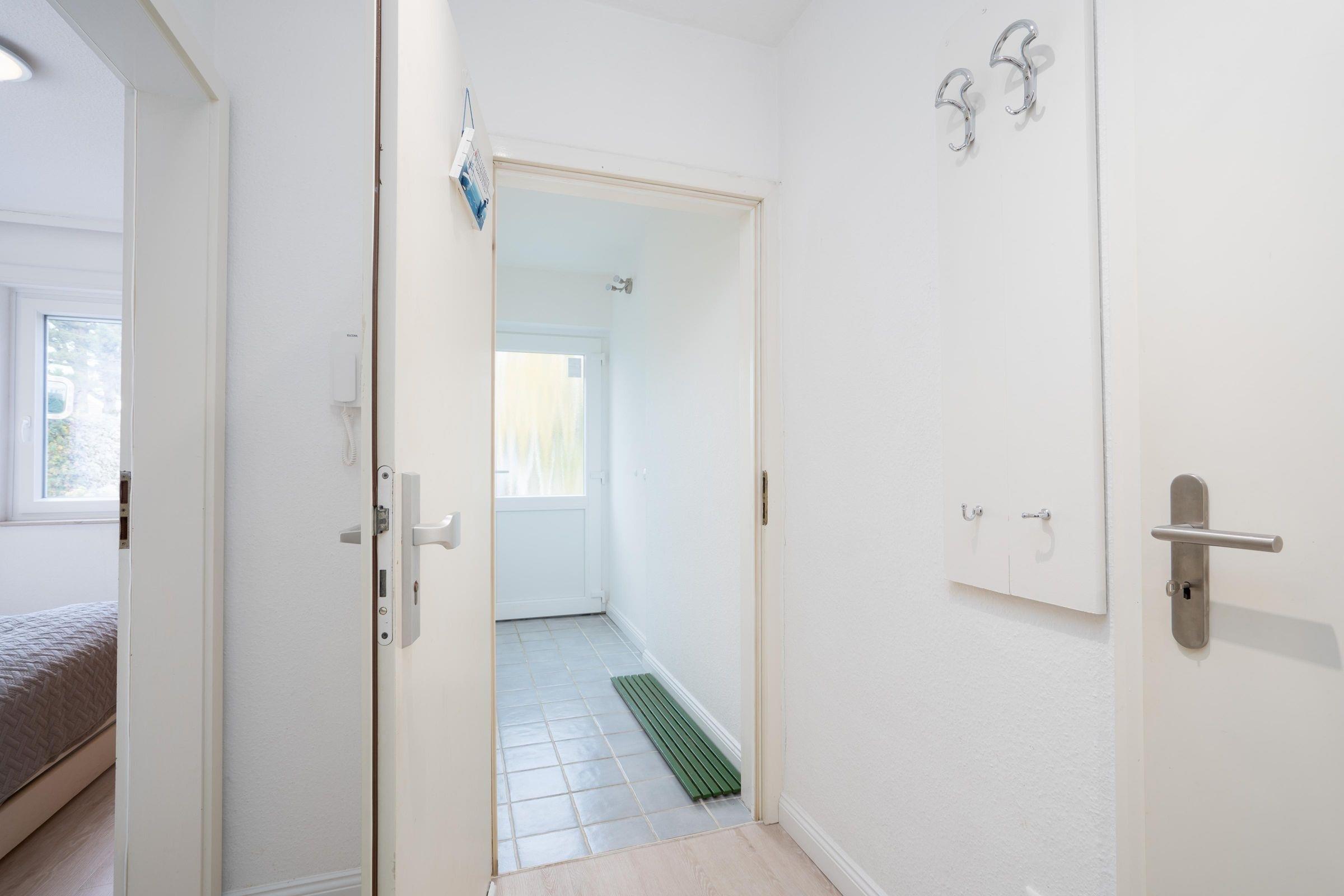 Im Wohnraum mit gemütlicher Sofalandschaft lassen sich die Urlaubsstunden mit Kinoabenden vor dem Smart-TV (mit persönlichem Amazon oder Netflix Account) füllen, natürlich können Sie hier einen kostenlosen WLAN-Zugang nutzen. Platz zum gemeinsamen Spielen und Essen haben Sie am Esstisch mit 4 Sitzgelegenheiten. Auf der möblierten Terrasse in Südlage mit kleinem Gartenstück können Sie gemütlich frühstücken oder an lauschigen Abenden ein Glas Wein genießen. Für Ihr leibliches Wohl bietet die kleine, aber voll ausgestattete Küche alles, was Sie benötigen. Ein Ceranfeld und Backofen, Geschirrspüler, Kühlschrank, Kaffeemaschine, Wasserkocher und Toaster gehören zur Ausstattung. Im hellen Schlafzimmer mit Doppelbett (2x 90x200 cm) und Kleiderschrank entspannen Sie nach einem ereignisreichen Urlaubstag. Zwei zusätzliche Schlafmöglichkeiten in Form von Einzelbetten (je 90x190 cm) warten in einem weiteren separaten Schlafzimmer mit Kleiderschrank für die mitgebrachte Urlaubsgarderobe. Ein hell gefliestes Badezimmer mit Dusche, Waschbecken, WC und Fön rundet diese Ferienwohnung ab.