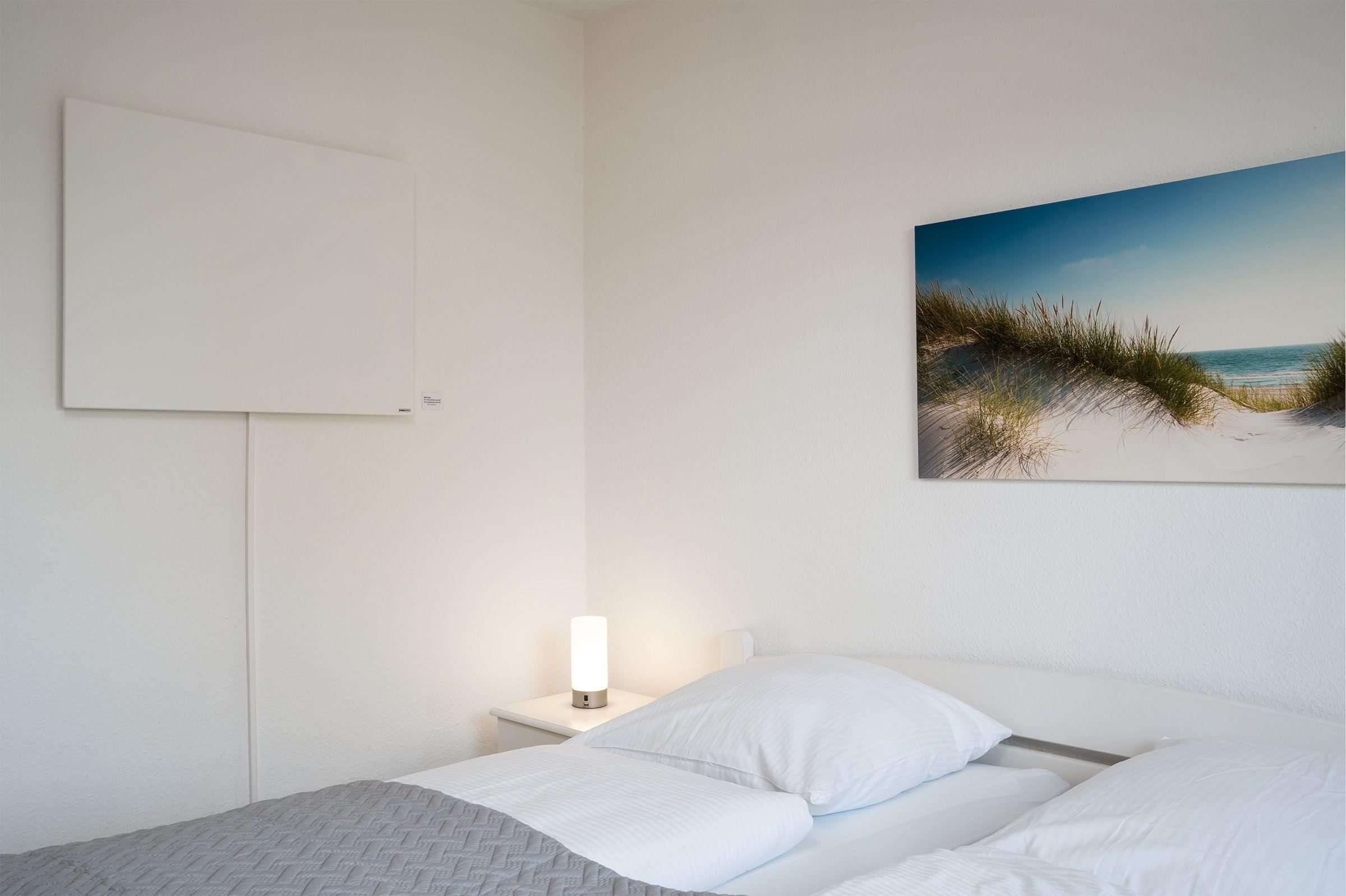 Schlafzimmer 1: 1 Doppelbett (2x 90x200 cm), Kleiderschrank, Verdunkelungsmöglichkeit.