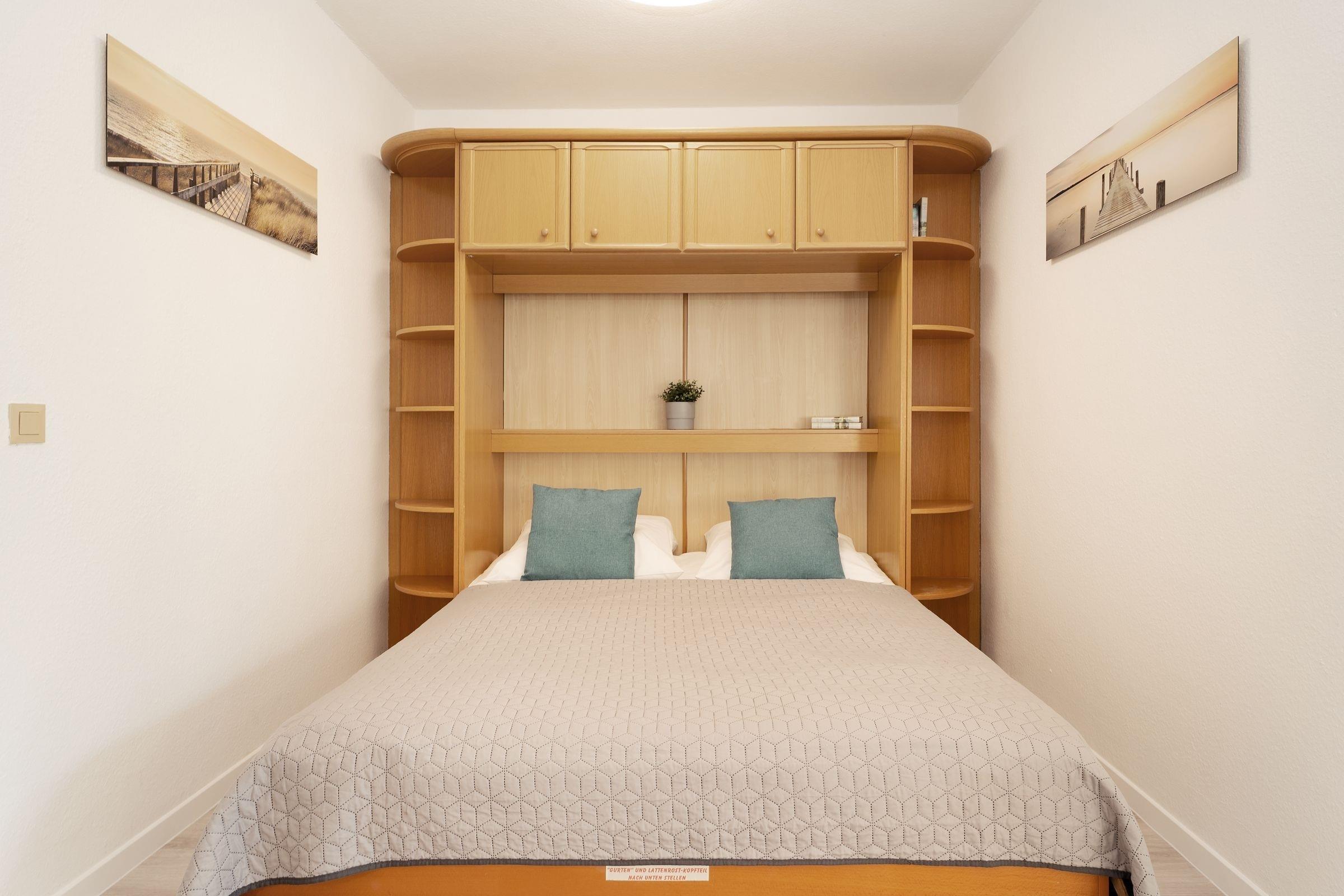 Wohnzimmer: 1 Schrankbett (2x 80x190cm), Verdunkelung: Vorhänge, Platz für Babybett vorhanden