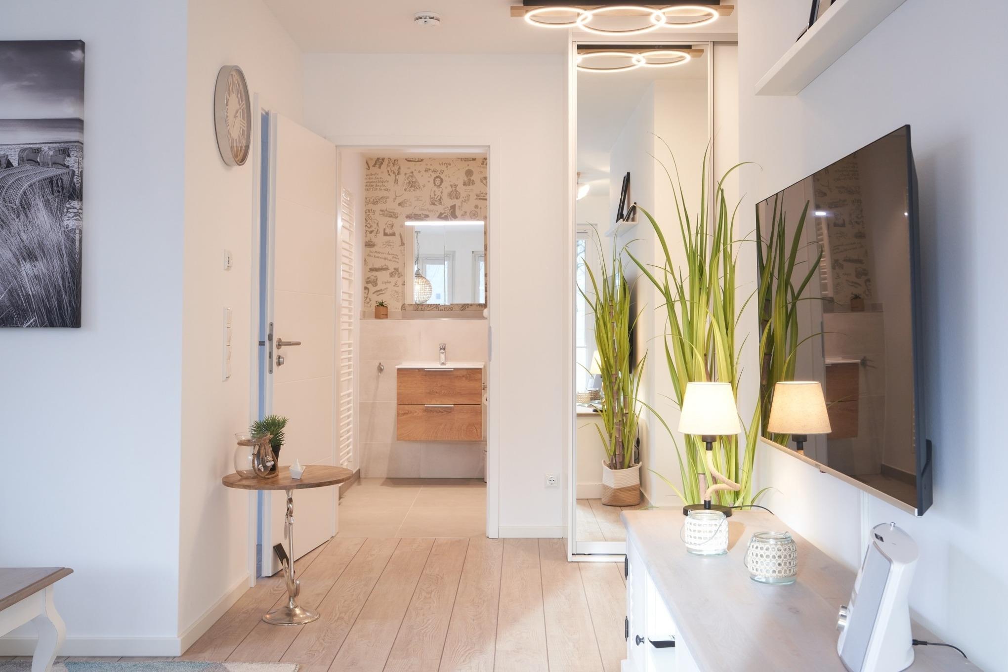 Wohnung LEE – für 2 Personen plus 1. Helle und freundliche sowie sehr ansprechende 2-Zimmerwohnung, ca. 66 m², im Hochparterre, in der Villa Scharbeutz, großer Süd-Westbalkon. Elektrische Außenrollläden im Schlafzimmer, Kfz-Außenstellplatz. Fahrstuhl, Waschmaschine und Trockner im Keller.