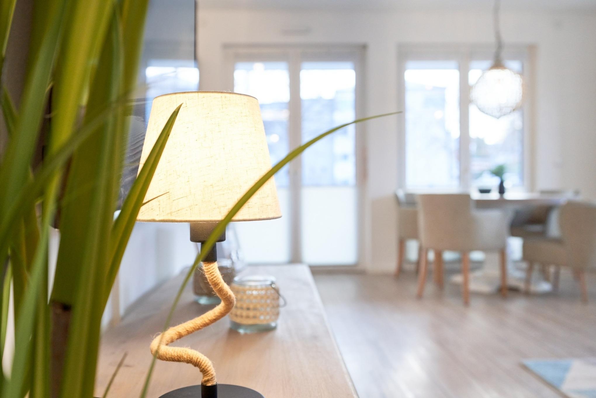 Die Villa Scharbeutz liegt gegenüber dem Kurpark in Zentrumsnähe. Die sonnige Wohnung LEE[nbsp] liegt im Hochparterre nach Südwesten. Kurze Wege an den Strand. Die Dünenmeile mit zahlreichen Cafés, Restaurants und Geschäften ist fußläufig in wenigen Minuten zu erreichen. Morgens frische Brötchen – der Bäcker ist in wenigen Schritten erreichbar.