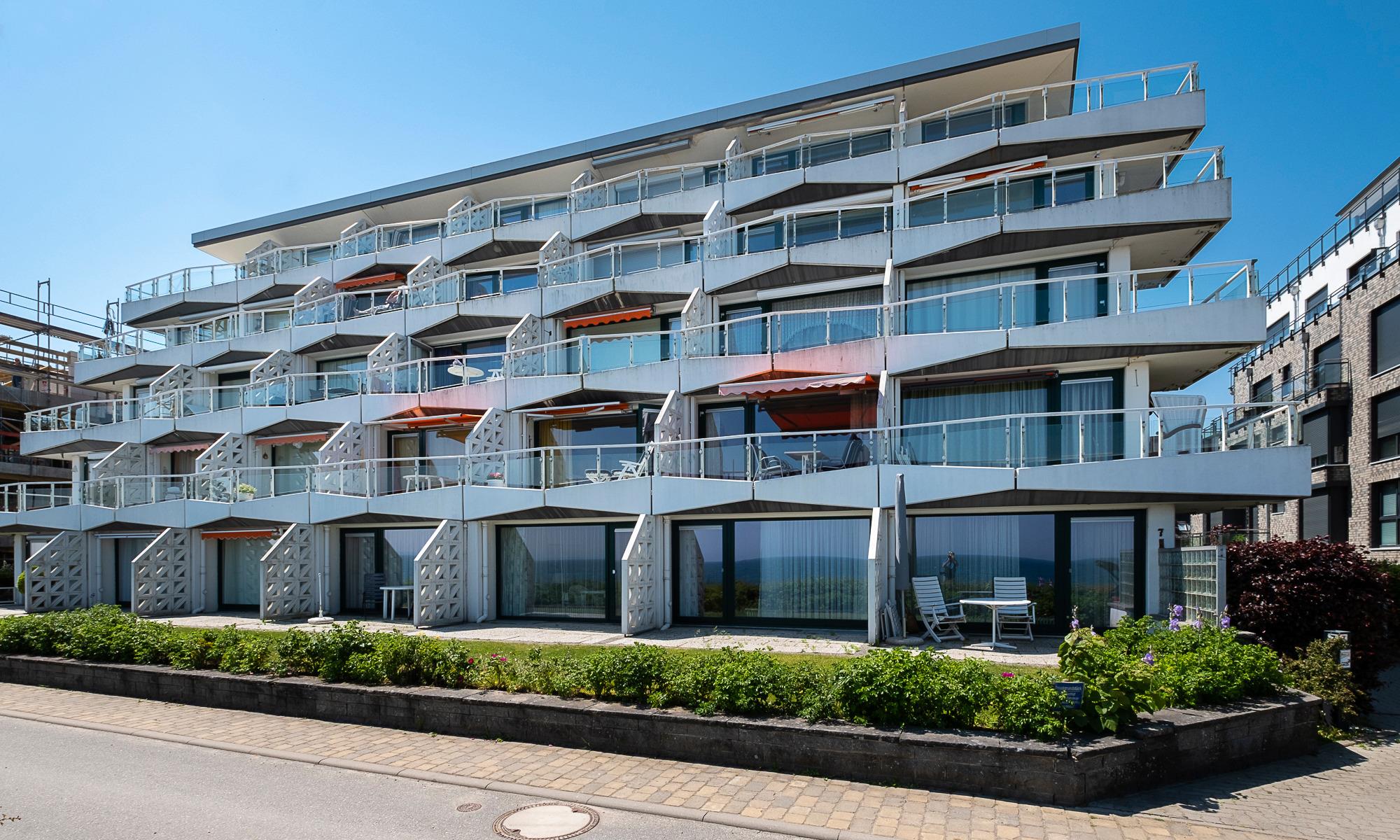 Diese 1-Zimmerwohnung bietet Platz für bis zu 2 Personen. Verschiedene Design-Klassiker sorgen für eine stylische und gleichzeitig gemütliche Atmosphäre. Es erwarten Sie ein bequemes Schlaraffia Boxspringbett (1,80x2,00m) und eine elegante Designer-Wohnzimmercouch von Rolf Benz, von welcher aus Sie den traumhaften Blick auf die Ostsee genießen können. Ein modernes Duschbad mit Kosmetikspiegel, eine Küchenzeile mit einem Geschirrspüler, einer Senseo-Kaffeemaschine sowie einer Filterkaffeemaschine und einem Wasserkocher, WLAN und ein Flachbildfernseher runden das Angebot ab. Die große Terrasse mit Blick auf die Ostsee lädt zum "Outdoor-Living" ein. Durch die Terrassenbauweise des Hauses können Sie hier viele Sonnenstunden genießen. Für Ihren PKW steht Ihnen hinter dem Haus ein Stellplatz zur Verfügung. Falls Sie eigene Fahrräder mitbringen möchten, können Sie diese in einer, nur zu dieser Wohnung gehörenden, abschließbaren Fahrradbox unterbringen.