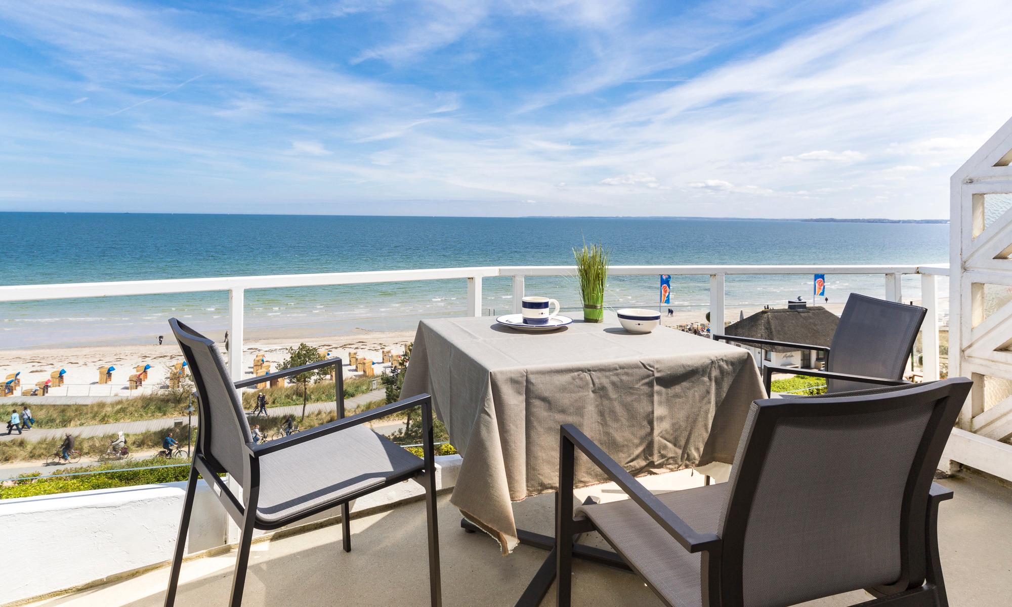Die 1-Zimmer-Wohnung, ca. 32 m², bietet Platz für bis zu zwei Erwachsene und ein Kind. Design-Klassiker wie Riviera-Maison-Tische, Ligne-Roset-Sofas, Arne-Jacobsen-Stühle, Artemide-Leuchten und Lexington-Geschirr begeistern Designfreunde und sorgen für eine stylische, aber auch gemütliche Atmosphäre. Echtholzparkett, ein modernes Duschbad und eine Pantryküche mit Geschirrspüler, Nespresso-Maschine und Holzarbeitsplatte. WLAN und ein Flachbildfernseher runden das Angebot ab, eine Spielesammlung ist ebenfalls vorhanden. Der große Balkon zur Ostsee lädt zum "Outdoor-Living" ein; durch die Terrassenbauweise des Hauses können Sie hier die Sonne lange genießen. Für Ihren Pkw steht Ihnen hinter dem Haus ein Stellplatz zur Verfügung. Falls Sie eigene Fahrräder mitbringen möchten, können Sie diese in einer nur zu dieser Wohnung gehörenden abschließbaren Fahrradbox unterbringen.