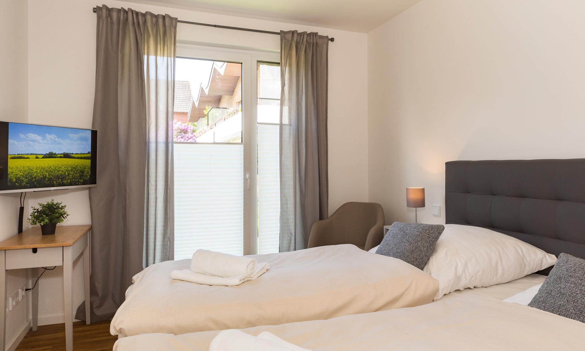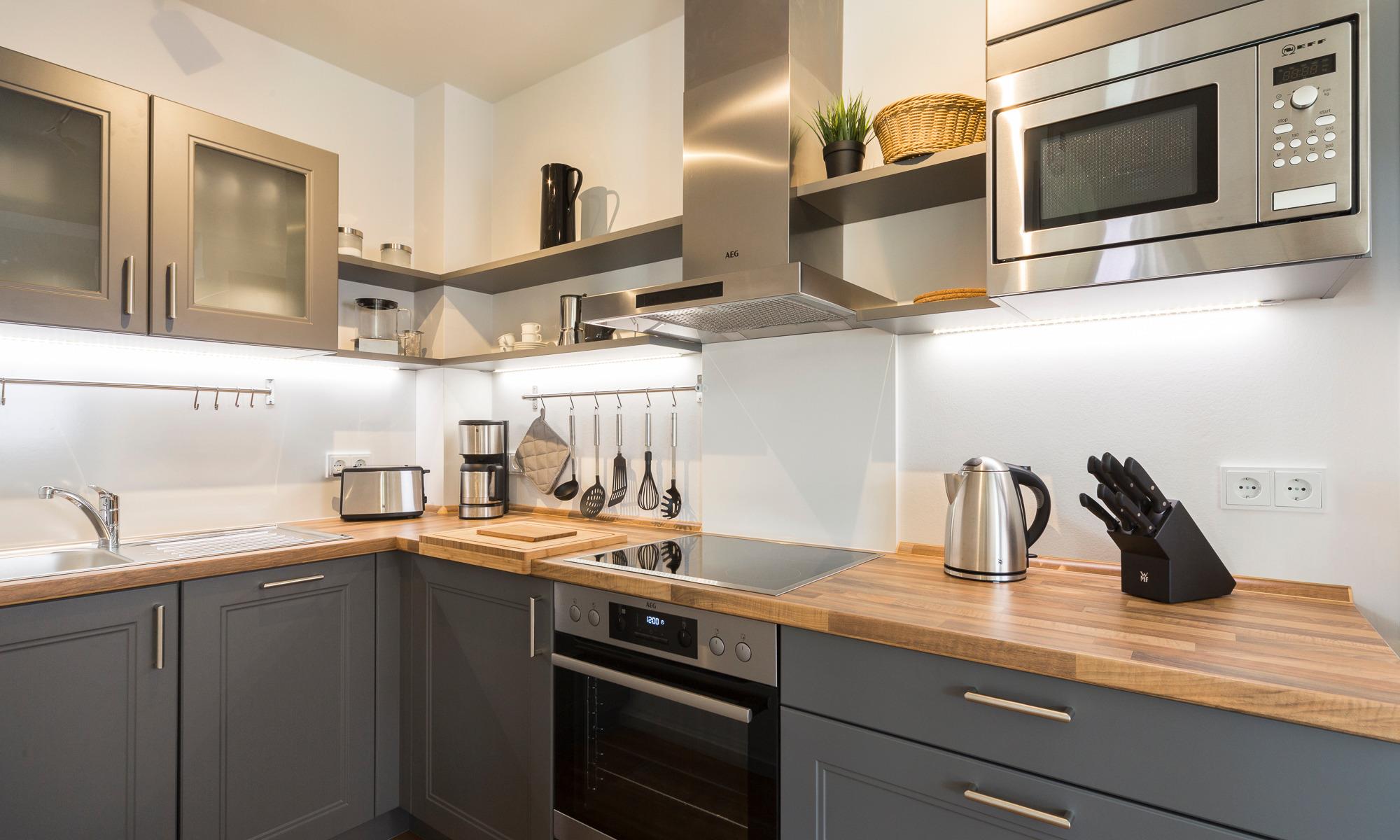 Die Ferienwohnung bietet Ihnen einen gemütlichen Wohn-Essbereich mit einer Eck-Couch und einem ansprechenden Essbereich. Neben dem Flachbildfernseher steht Ihnen eine Stereoanlage zur Verfügung. Kostenloses WLAN ist selbstverständlich. Eine moderne Küche lässt keine Wünsche offen. Das Duschbad ist mit einer bodengleichen Dusche und einem großen Spiegel ausgestattet. Neben der Fußbodenheizung ist hier ein zusätzlicher Handtuchheizkörper angebracht. Das Schlafzimmer verfügt über eine Kommode, ein bequemes Boxspringbett (1,80cm x 2,00m) und einen Flachbildfernseher. Über die Außenrollläden haben Sie die Möglichkeit, das Schlafzimmer sowie das Wohnzimmer nach Ihren Wünschen zu verdunkeln.