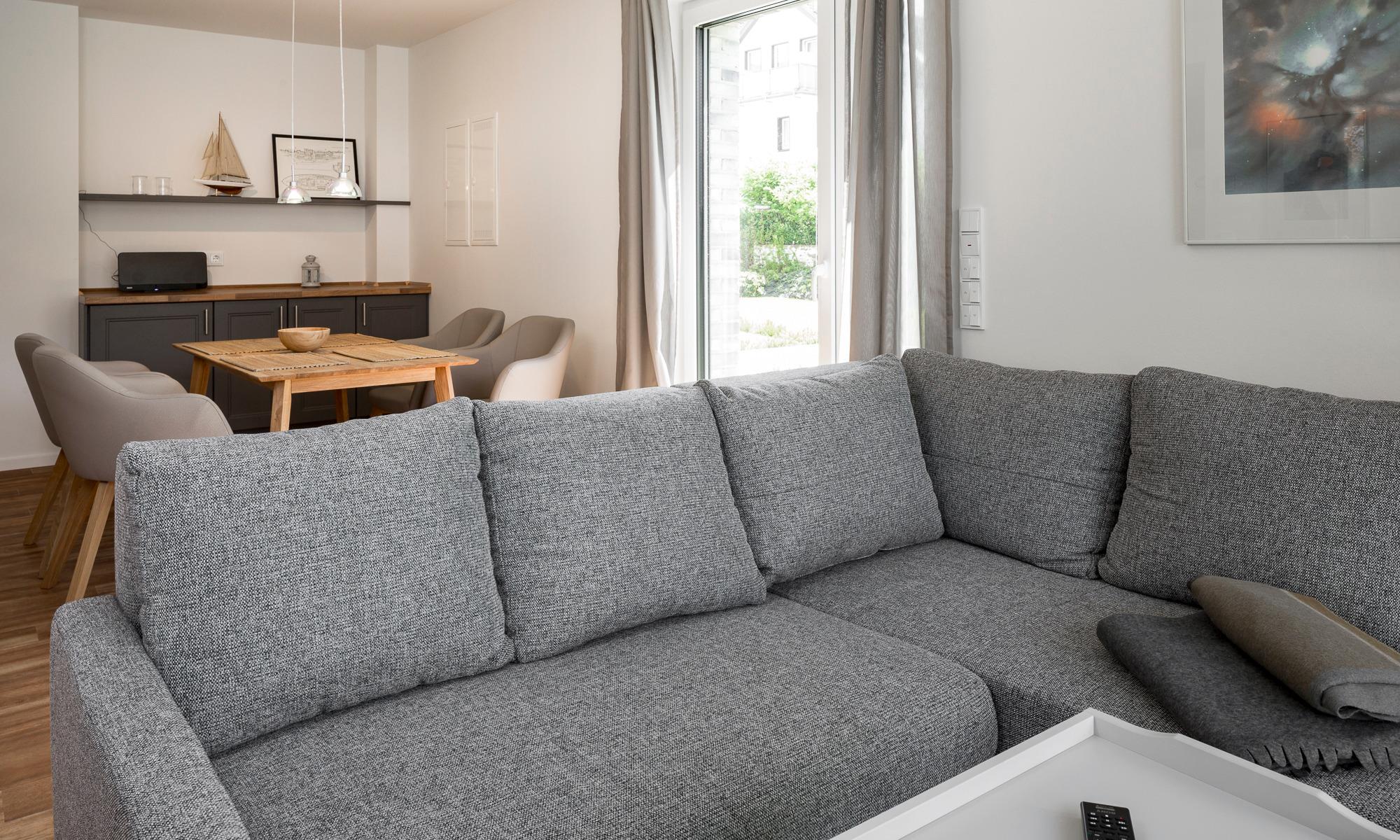 Sehr ansprechende 2-Zimmer-Ferienwohnung, ca. 54 m² im Erdgeschoss, mit herrlicher Terrasse nach Südwesten. Inkl. PKW-TG-Stellplatz (Durchfahrtshöhe 2,08 m) sowie Strandkorb am Strand (saisonbedingt 15.05. – 15.09.).