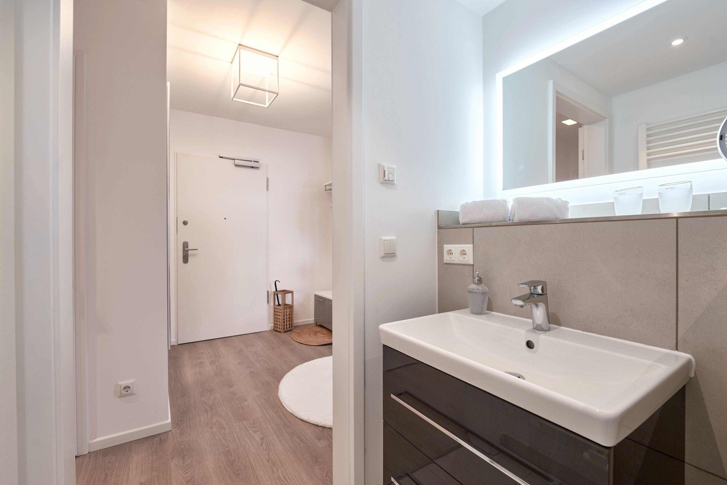 Im Flurbereich steht Ihnen eine Garderobe mit einer Sitzbank zur Verfügung. Im Abstellraum finden Sie Staubsauger sowie Reinigungsmittel; Hier können auch gerne Ihre Koffer abgestellt werden.