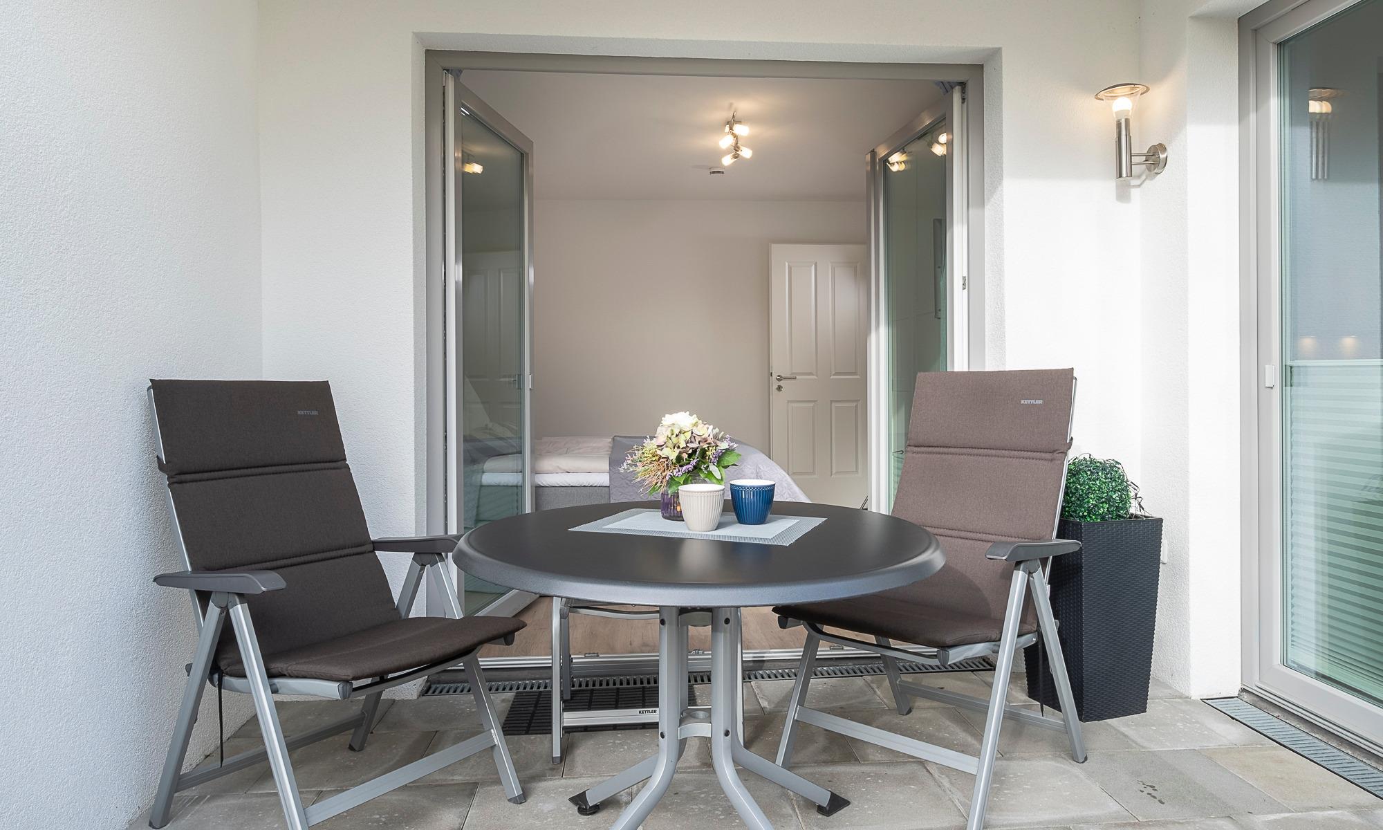 Diese geschmackvoll im Landhausstil eingerichtete Ferienwohnung bietet Ihnen einen gemütlichen Wohnbereich mit Couch und Sessel. Die Couch ist mit wenigen Handgriffen in eine bequeme Schlafcouch umwandelbar. Neben dem Flachbildfernseher und dem Blu-ray-Player steht Ihnen eine Stereoanlage zur Verfügung. Kostenloses WLAN ist selbstverständlich. Die Terrasse Richtung Süden ist mit Tisch und Stühlen ausgestattet. Die moderne Küche ist komplett ausgestattet und der Esstisch lädt zu geselligen Abenden ein. Das Schlafzimmer ist mit einem geräumigen Schrank und einem komfortablen Doppelbett (1,80x2,00m, durchgehender Topper ) und einem Flachbildfernseher ausgestattet. Zur Verdunkelung sind Plissees angebracht. Das helle Tageslichtbad verfügt über eine bodentiefe Dusche und einen großen Spiegel. Neben der Fußbodenheizung ist hier ein zusätzlicher Handtuchheizkörper angebracht.