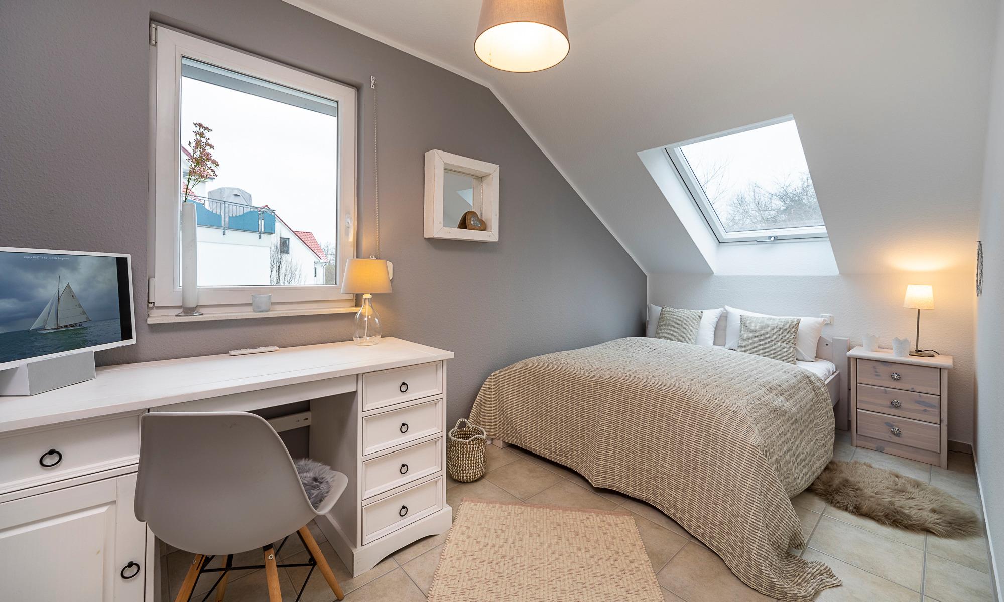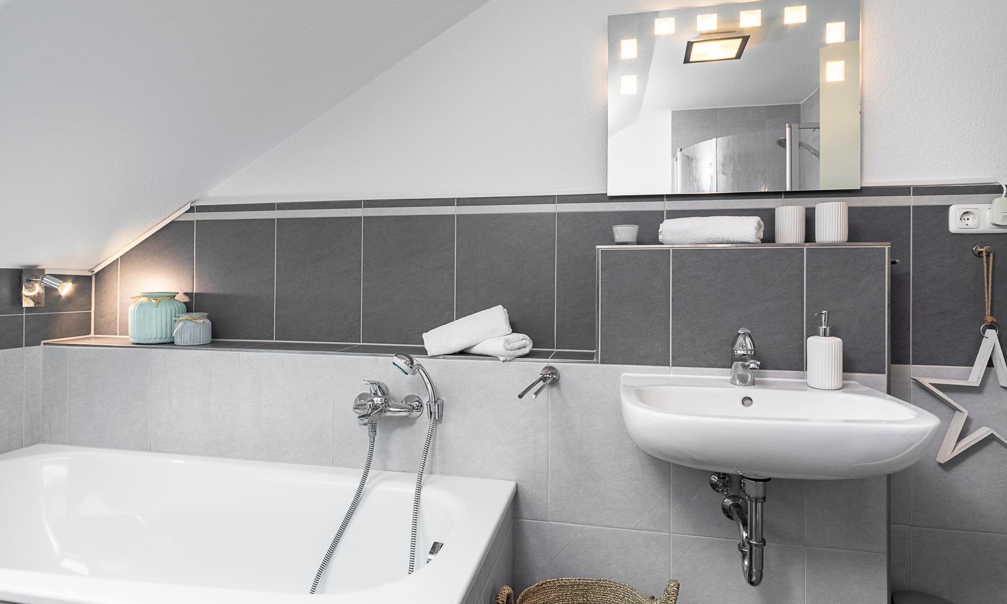 Der lichtdurchflutete Wohn-Essbereich ist mit einer bequemen Couch, einem TV, einem Sessel und einem großen Esstisch ausgestattet. Neben einem Flachbildfernseher und einer Stereoanlage steht Ihnen selbstverständlich kostenloses WLAN zur Verfügung. In der großen Loggia, Richtung Westen, stehen Tisch und Stühle für Sie bereit. Die moderne Küche ist komplett ausgestattet und lässt keine Wünsche offen. Neben der Filterkaffeemaschine steht Ihnen hier zusätzlich eine Kapselmaschine zur Verfügung. Das große Tageslichtvollbad verfügt über eine Dusche und eine Badewanne sowie eine Waschmaschine. Im großen Schlafzimmer finden Sie ein bequemes Doppelbett (1,80 x 2,00m) sowie einen Kleiderschrank. Das zweite Schlafzimmer ist mit einem Doppelbett (1,40 x 2,00m), einem TV sowie einem Schreibtisch ausgestattet.
