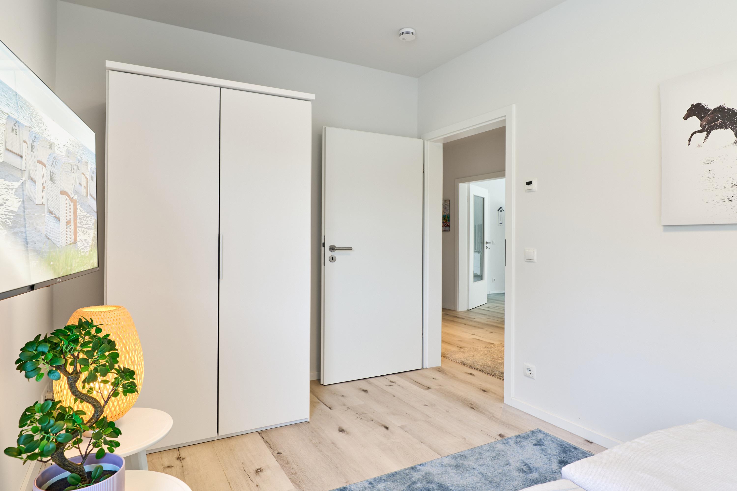 Die gesamte Wohnung ist mit bodentiefen Fenstern sowie elektrischen Außenrollläden ausgestattet. Fußbodenheizung in allen Räumen. Großer, extra Flurbereich mit einem Schrank und einer Garderobe. Diese Wohnung ist eine Nichtraucherwohnung.