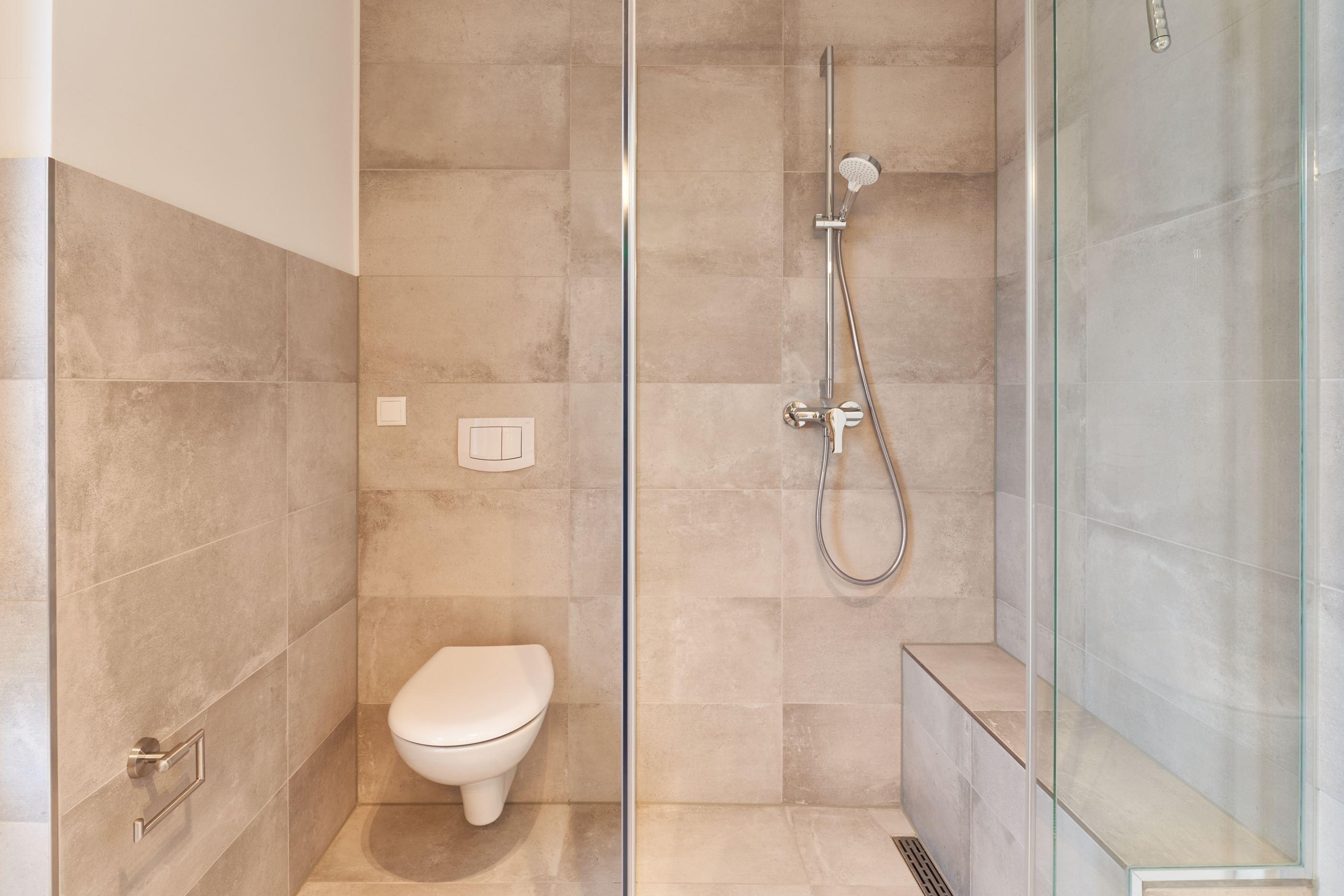 Das zweite Schlafzimmer hat ebenfalls ein Doppelbett mit Einzelmatratzen und verstellbarem Kopf- und Fußteil. Ein Smart-TV ist auch hier vorhanden. Das zweite Tageslichtbad ist mit einer bodengleichen Dusche ausgestattet.