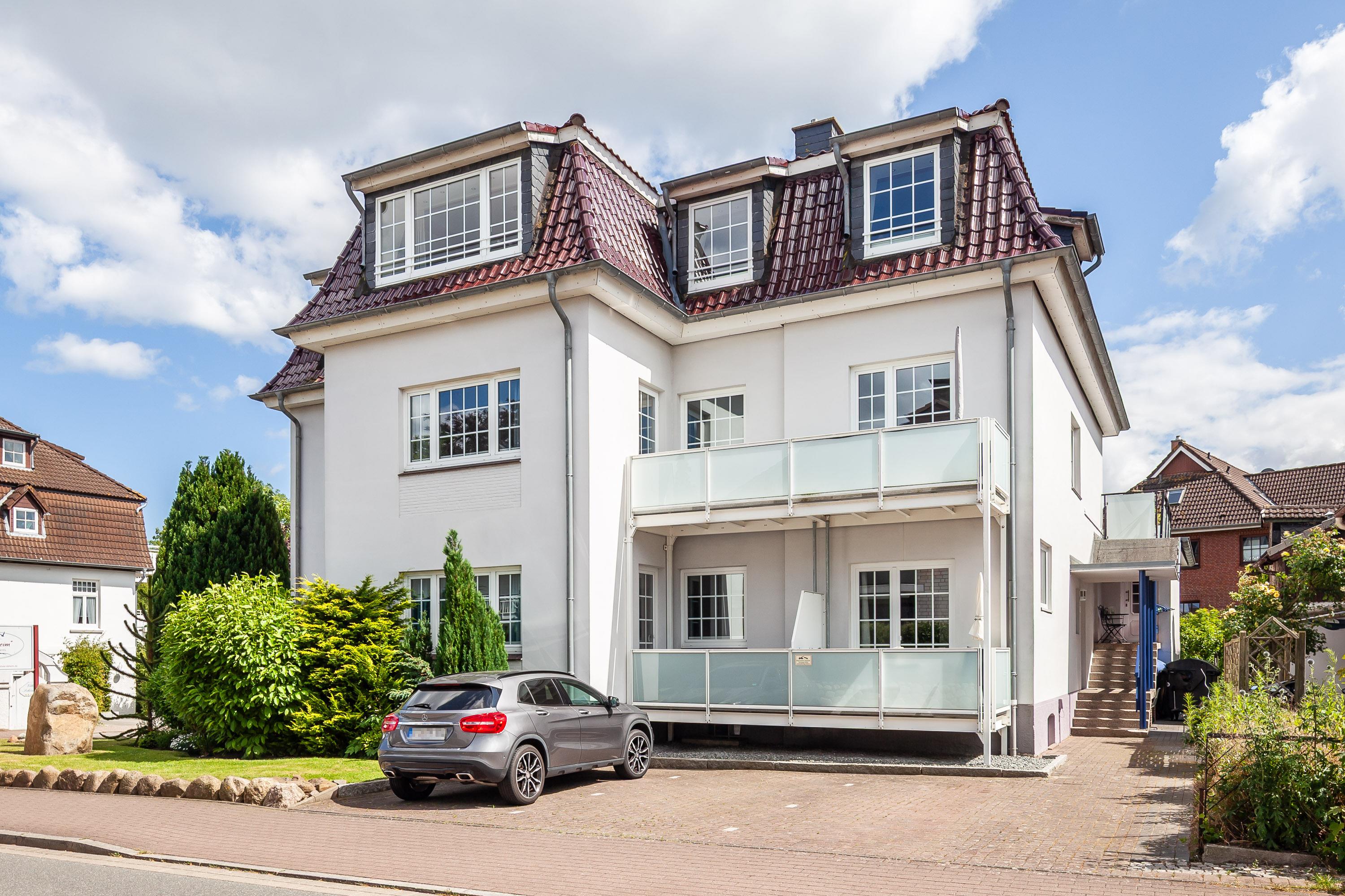 Bäckereien sind in nur wenigen Gehminuten zu erreichen, weitere Einkaufsmöglichkeiten wie ein Supermarkt befinden sich in einer Entfernung von ca. 650 m. Geschäfte, Restaurants und der Strand sind nur ca. 250 m entfernt. Der Kurpark beginnt schon nach ca. 50 m.