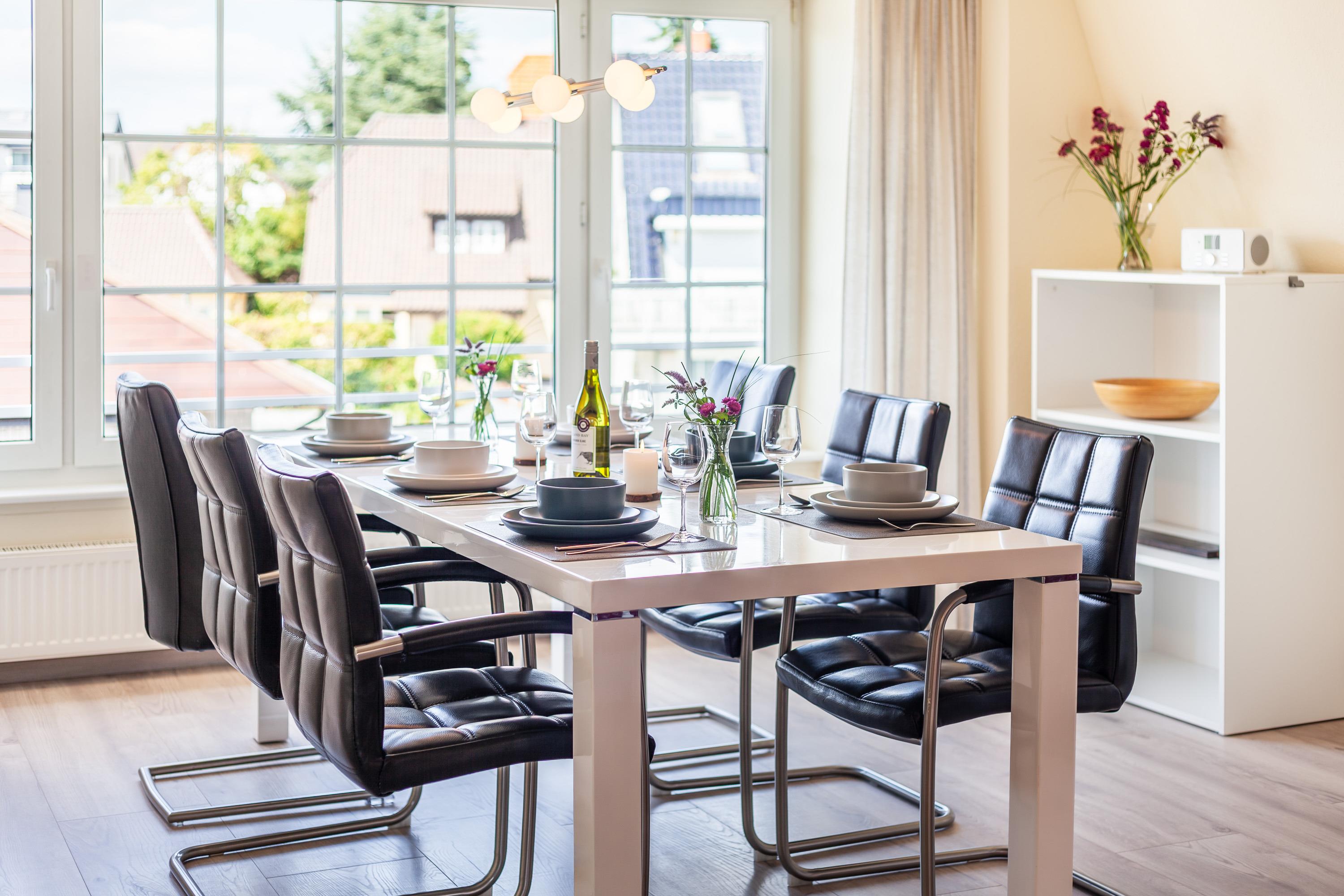 Das komfortable "DELUXE Appartement 10 mit Loggia" befindet sich im Gästehaus Daheim in Scharbeutz und bietet auf 130 m² Platz für maximal 6 Personen (zzgl. max. 2 Babybetten). Es verfügt über 2 Schlafzimmer, 2 Badezimmer, 2 Wohnzimmer (2. WZ ist ein kombinierter Wohn- Schlafraum) und eine großen vollausgestattete Küche, mit Platz für die gesamte Familie. Das Deluxe Appartement erstreckt sich über die komplette 2. Etage. Zwei Parkplätze stehen direkt am Haus kostenfrei zur Verfügung. Für die Raucher unter den Gästen befindet sich auf der Loggia ein Aschenbecher.