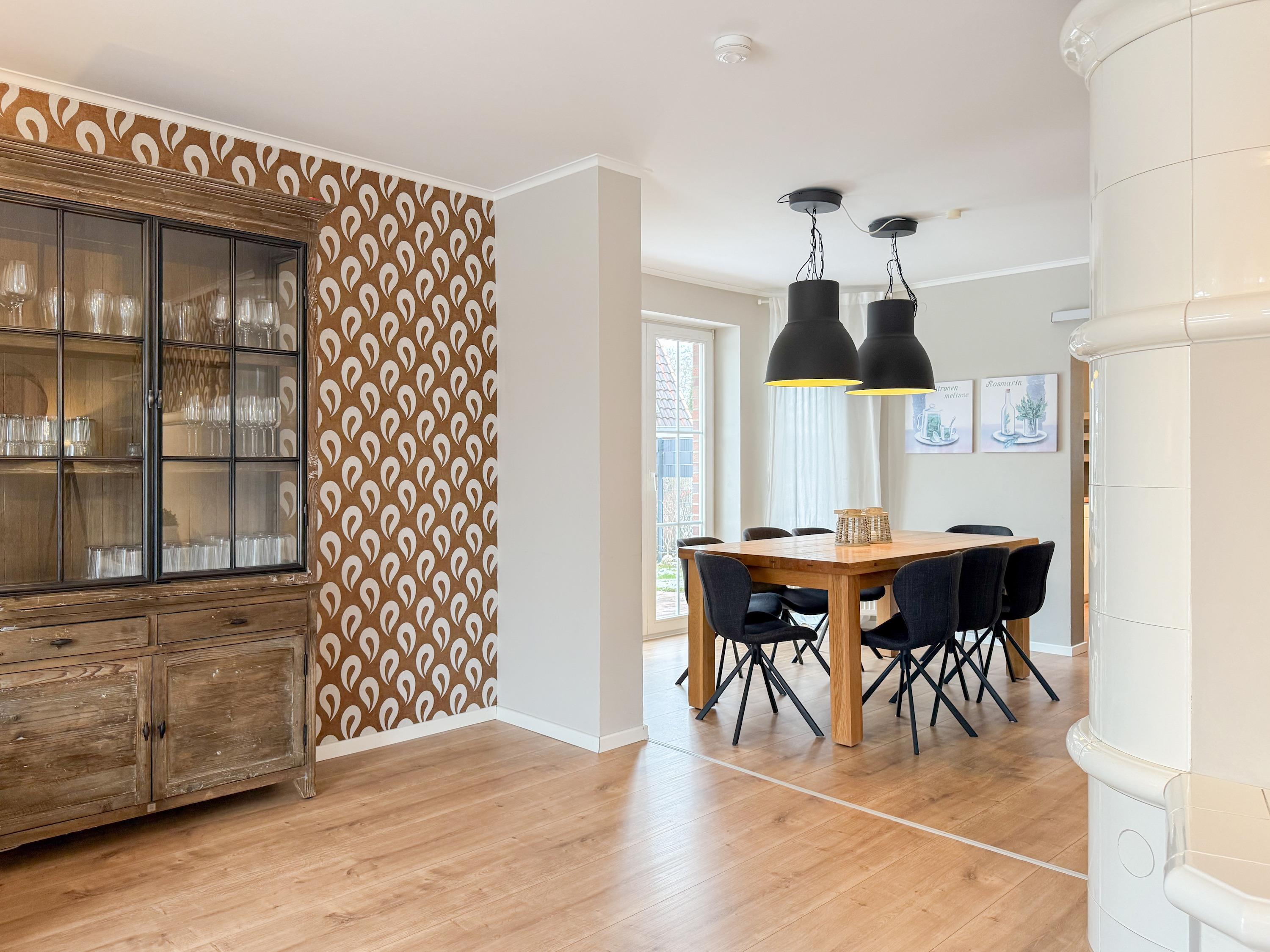 Kostenloser Internetzugang über WLAN. Sämtliche Fenster im Unter- und Erdgeschoss sind mit Außenjalousien versehen. Ein Carport Stellplatz und zwei weitere PKW Stellplätze[nbsp] befinden sich auf dem Grundstück. Ein Fahrradschuppen zum trockenen Abstellen von Fahrrädern ist ebenfalls vorhanden. Das Grundstück ist vollständig eingezäunt. Die Nutzung des Kachelofens im Wohnzimmer ist nicht möglich.