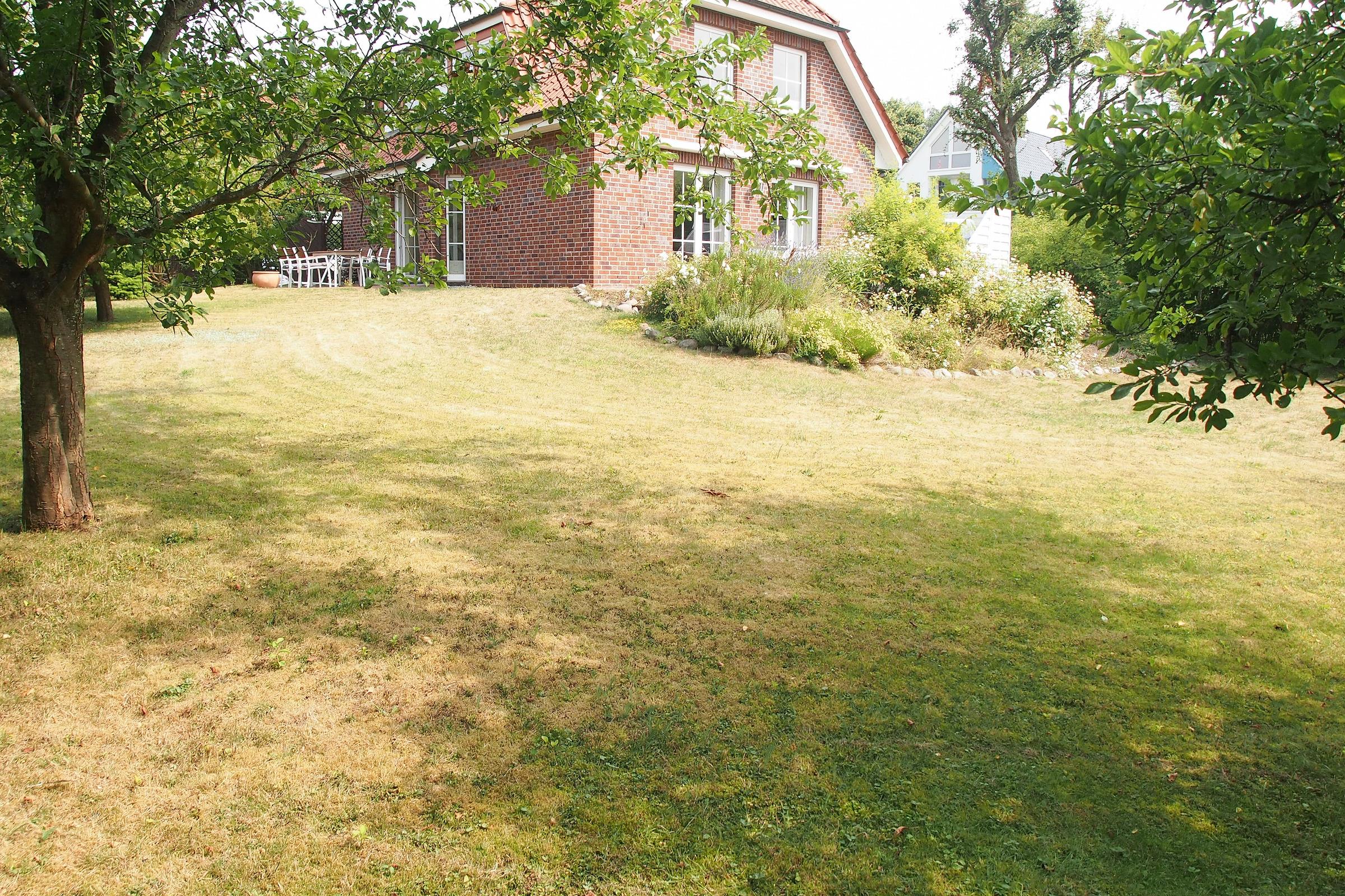 Das geschmackvoll eingerichtete Ferienhaus ist von einem schönen, vollständig eingezäuntem Garten mit altem Baumbestand umgeben. Es gibt insgesamt drei Terrassen[nbsp][nbsp]mit[nbsp][nbsp] Loungemöbeln, Markise, Sonnenliegen und Essgruppe. Im Erdgeschoss erwartet Sie ein heller Wohnraum und eine gemütliche Leseecke mit schönem Blick in den großzügig angelegten Garten, ein anschließender Essbereich[nbsp] sowie eine vollausgestattete Küche. Ein Schlafzimmer mit Boxspringbett (160x200), TV und Verdunkelungsplissees sowie ein Gäste WC sind ebenfalls auf dieser Ebene untergebracht. Drei weitere Schlafzimmer, ebenfalls mit Boxspringbetten (180x200), TV und Verdunkelungsplissees sowie zwei separate Bäder, in deren Mitte sich die Dusche befindet, die von beiden Bädern aus betreten und genutzt werden kann,[nbsp][nbsp]befinden sich im Obergeschoss. Im Untergeschoss sind der Wellnessbereich mit Sauna und Fitnessraum sowie Waschmaschine und Trockner untergebracht.