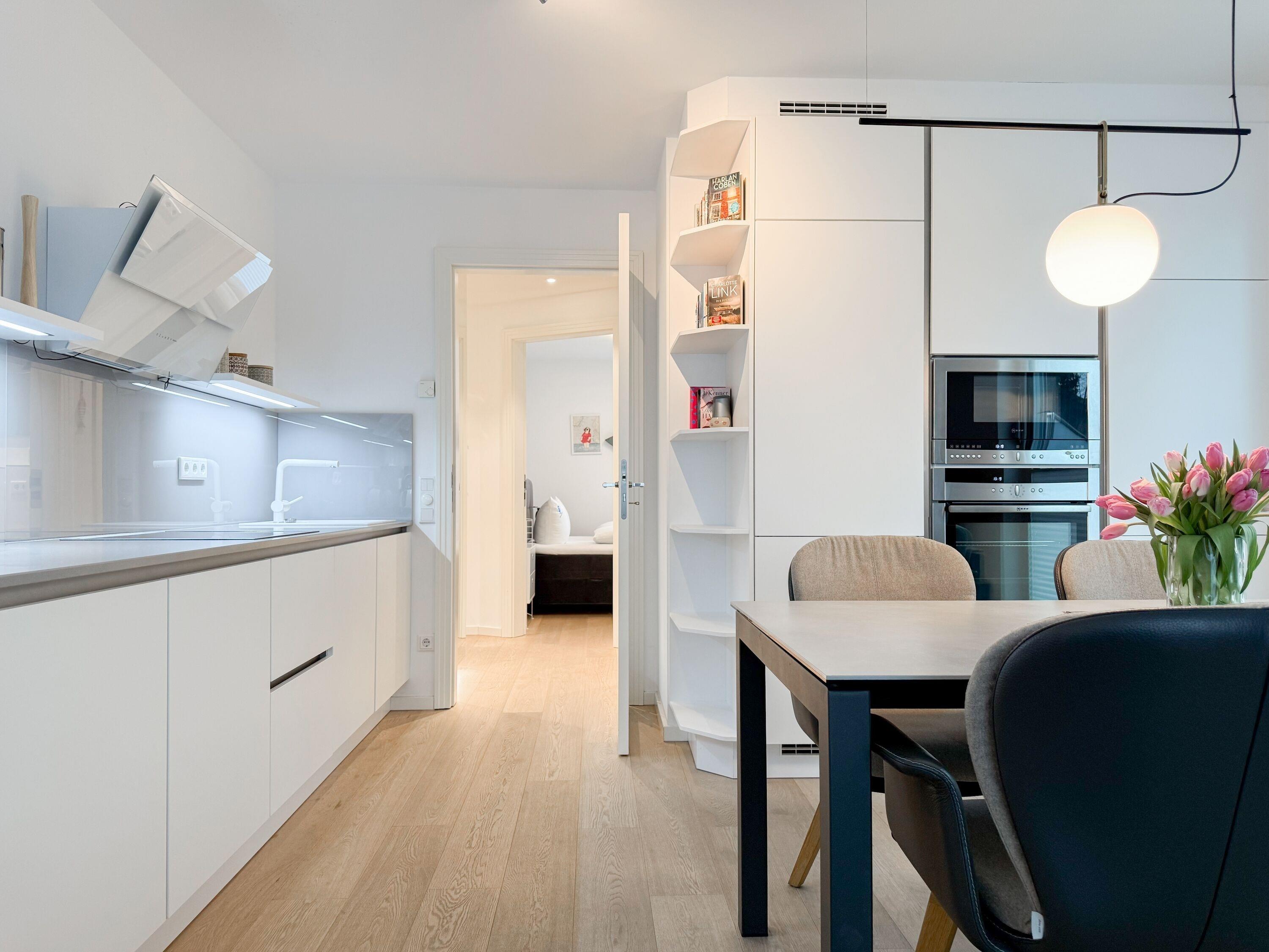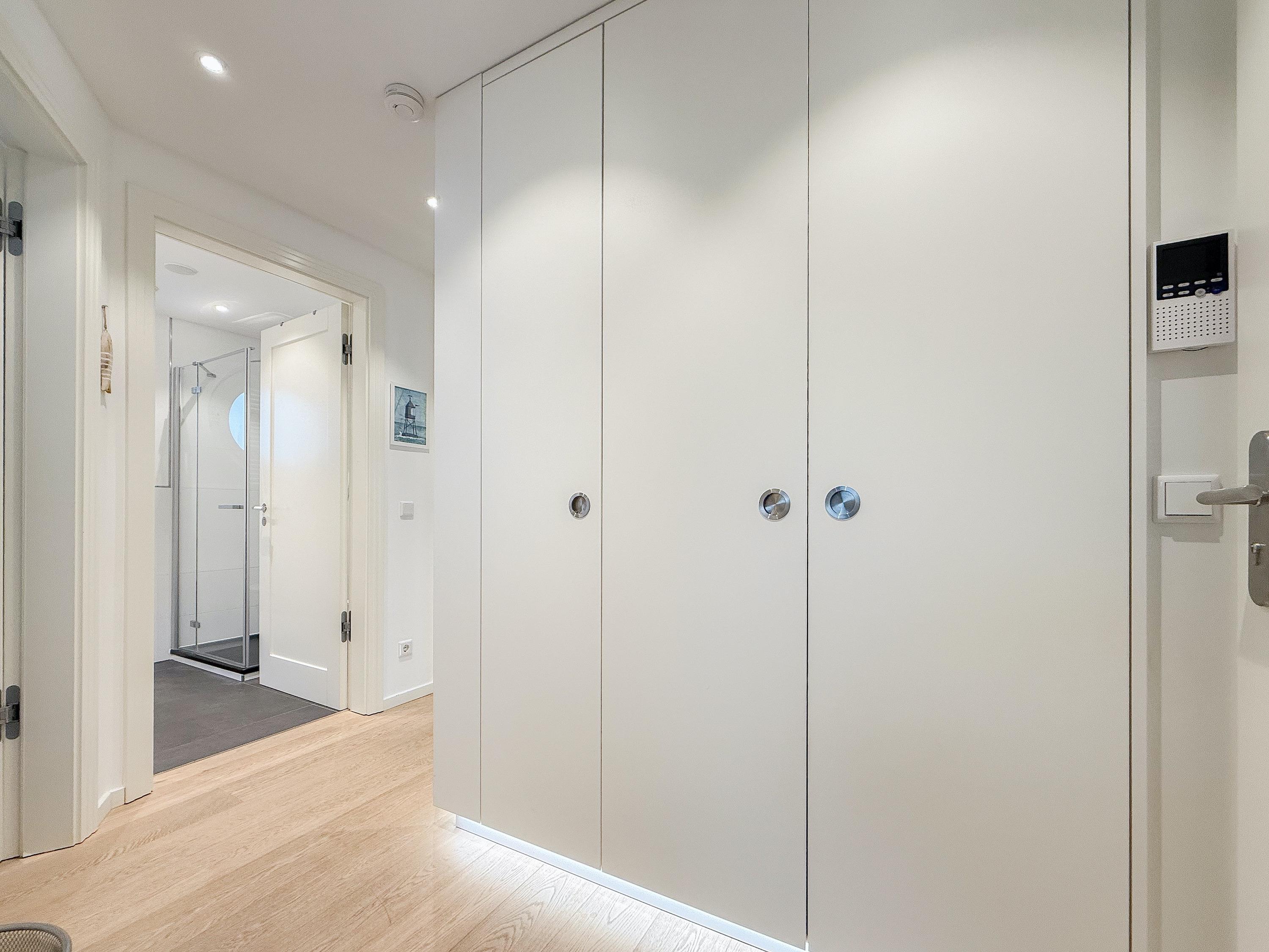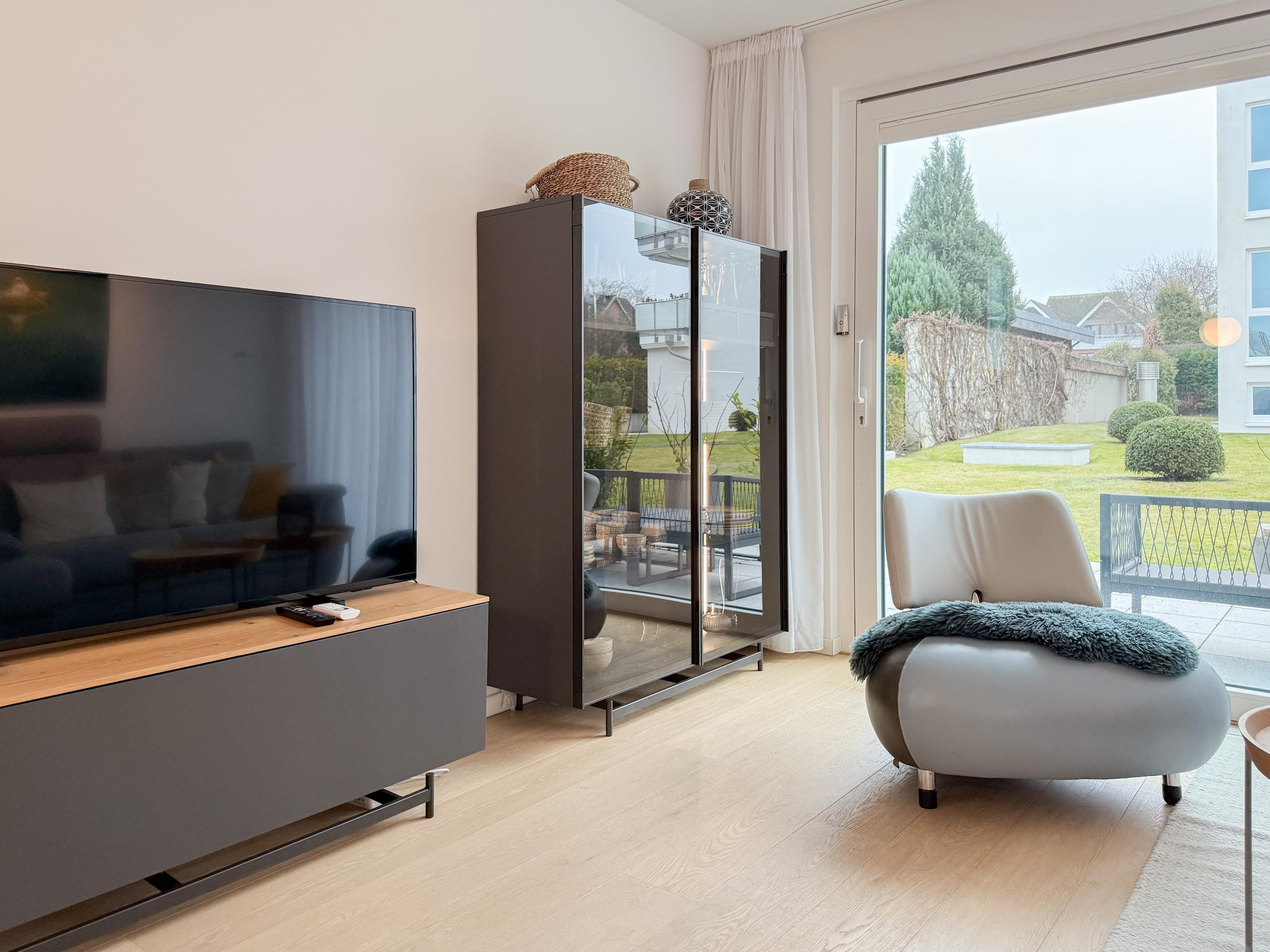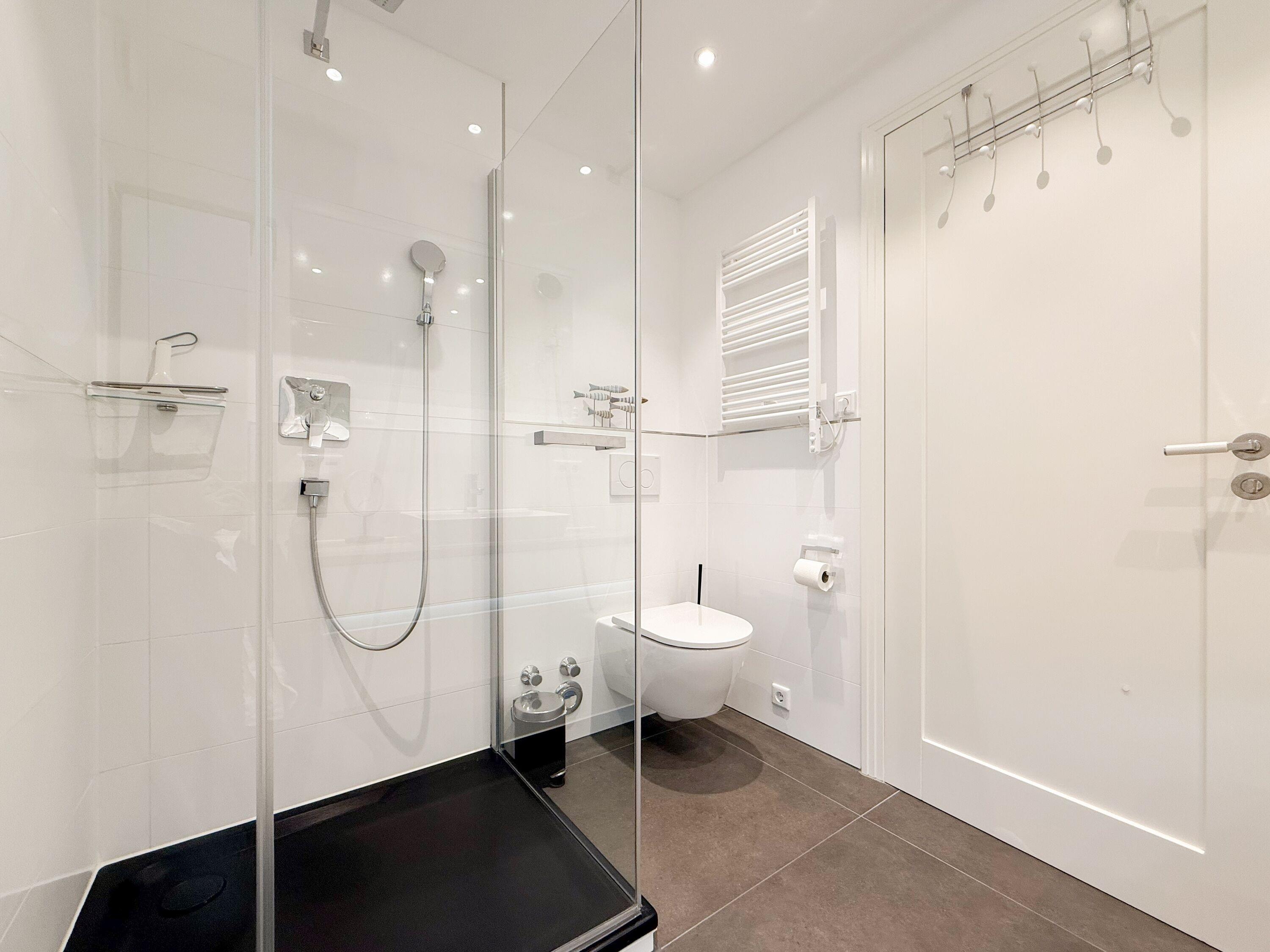 Die Strand Lodge ist eine äußerst hochwertig ausgestattete und geschmackvoll eingerichtete Ferienwohnung, die jeglichen Komfort bietet, um einen entspannten Ostseeurlaub in Strandnähe zu verleben. Fußbodenheizung, elektrische Außenjalousien und bodentiefe Fensterelemente, die für ein offenes Raumgefühl sorgen, gewährleisten einen hohen Wohnstandard in einem sehr schönen Ambiente.[nbsp] 2 separaten Schlafzimmern ausreichend Raum für 4 Personen bietet, um einen entspannten Urlaub in einem herrlichen Ambiente zu verleben. Absolutes Highlight der Wohnung sind zwei großzügige Terrassen (Süd und Ostausrichtung), die mit Gartenmöbeln, einem Strandkorb und elektrischer Markise ausgestattet sind. Ein herrlicher Rückzugsort zu jeder Tageszeit. Es erwartet Sie ein lichtdurchfluteter Wohnbereich mit einem Sofa, TV, Radio und WLAN, ein schöner Essbereich für 4 Personen sowie eine moderne, sehr gut ausgestattete Designküche. Das Hauptschlafzimmer ist mit einem komfortablen Boxspringbett (180x200), einem Kleiderschrank und TV ausgestattet. Das kleine Schlafzimmer verfügt ebenfalls über ein Boxspringbett (140x200), einen kleinen Kleiderschrank und TV, geeignet für eine Person oder zwei Kinder. Das Duschbad ist hochwertig und modern. Ein Bullauge und ein Handtuchwärmer sorgen für zusätzlichen Komfort.