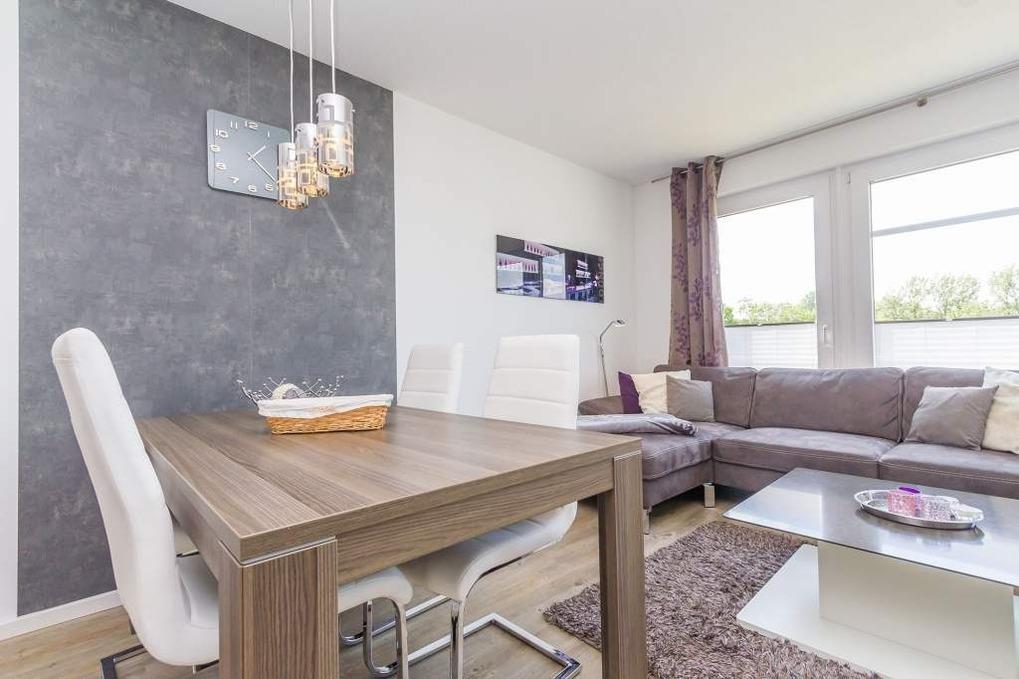 Das moderne 3-Zimmer-Appartement befindet sich in einem 2013 neu erbauten Gebäude und ist für 4 Personen geeignet. Die Ferienwohnung liegt auf der 2. Etage und ist bequem mit dem Fahrstuhl zu erreichen.