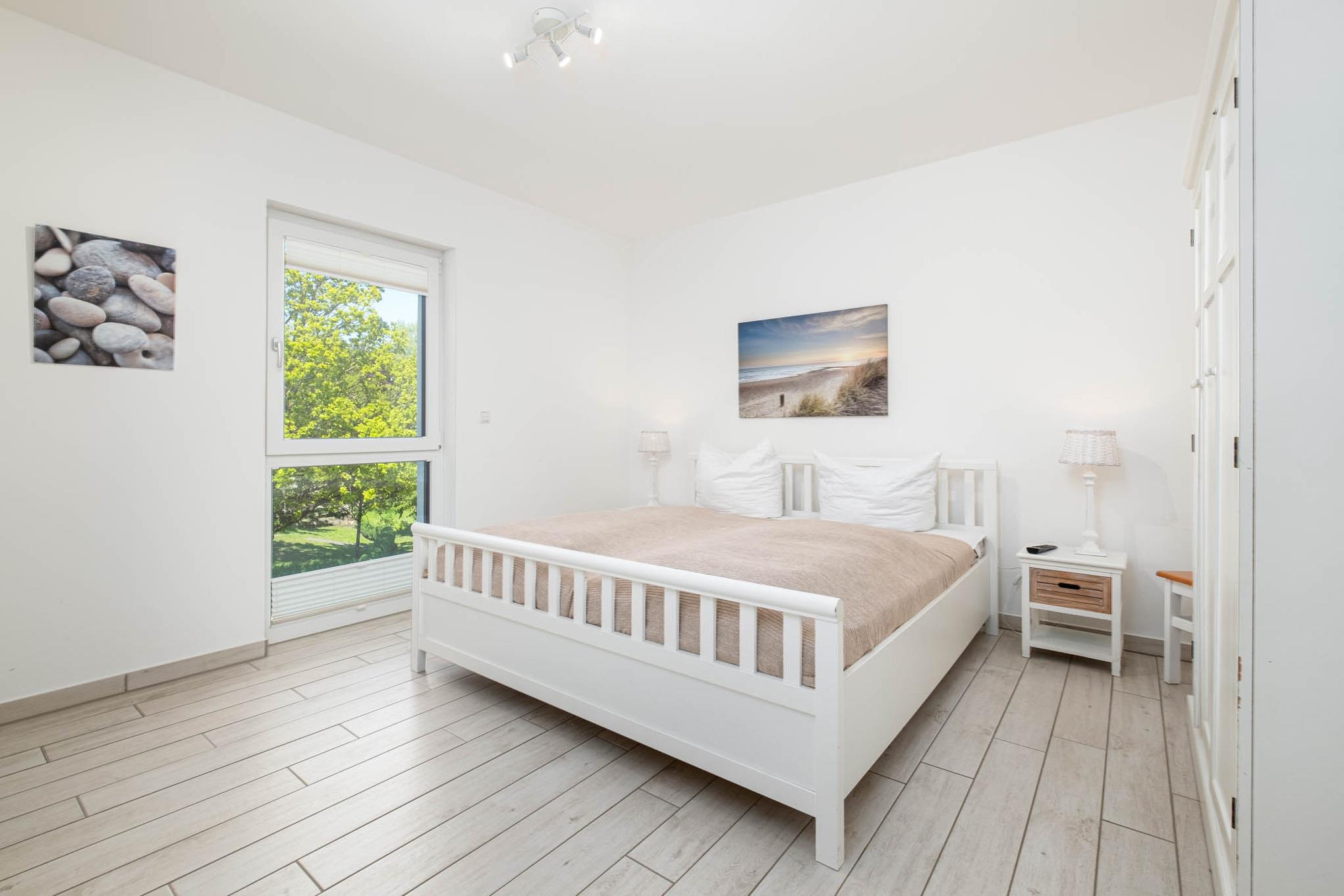 Die 4 Schlafplätze verteilen sich auf 2 separate Schlafzimmer. Das Schlafzimmer I ist mit einem Doppelbett (180x200cm), einem zusätzlichen Flatscreen-TV und einem Kleiderschrank ausgestattet. Das Schlafzimmer II verfügt ebenfalls über ein Doppelbett (180x200xm) und einen Kleiderschrank. Zudem gibt es einen großen Einbauschrank im Flur.