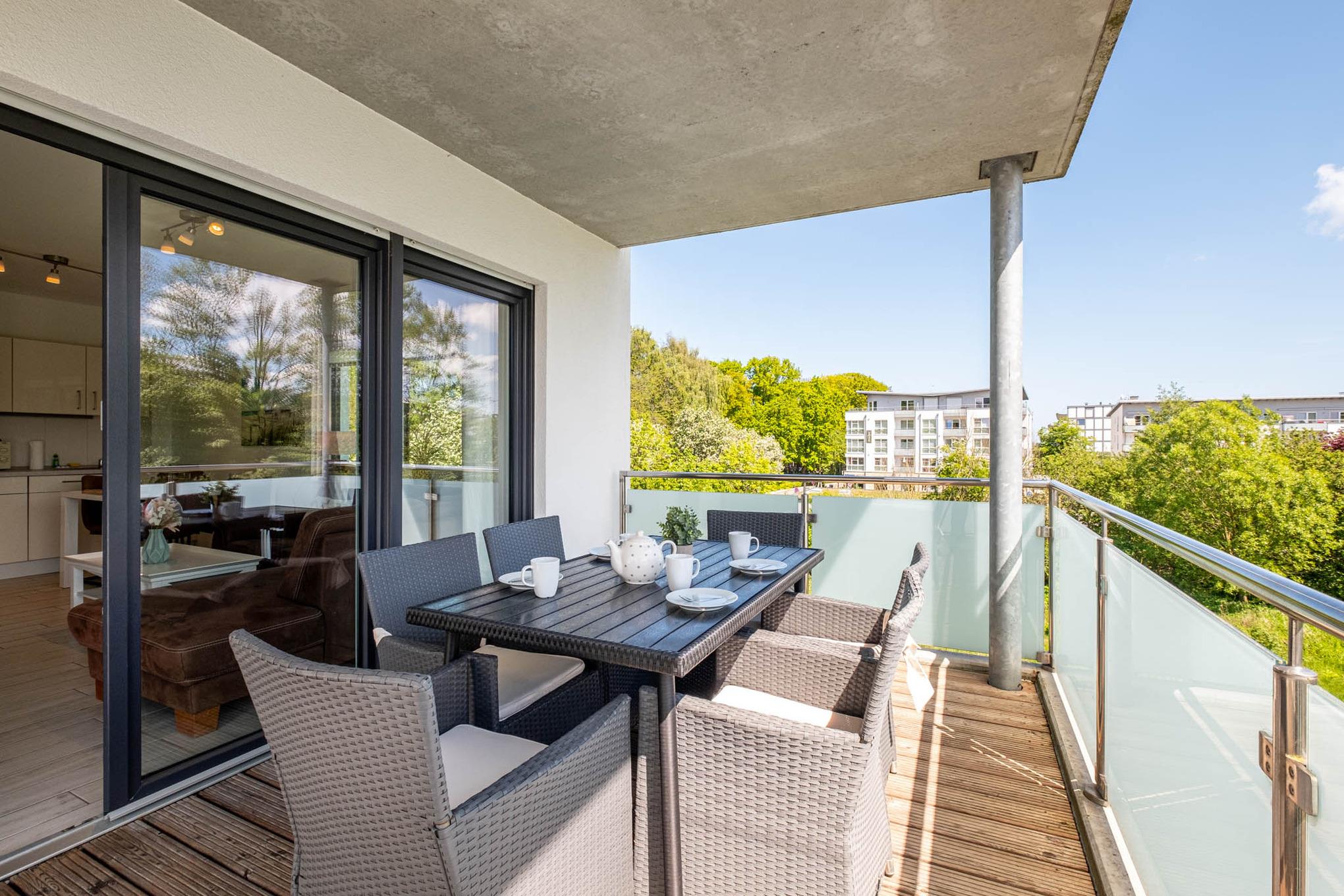 Diese Scharbeutz Ferienwohnung ist mit 2 separaten Bädern ausgestattet. Ein Badezimmer ist mit einer Dusche eingerichtet, das andere Badezimmer verfügt über eine Badewanne. Der möblierte und große Balkon in Süd-Lage bietet Platz für entspannte Stunden mit der Familie und rundet dieses wunderschöne Urlaubsdomizil im Zentrum von Scharbeutz ab.