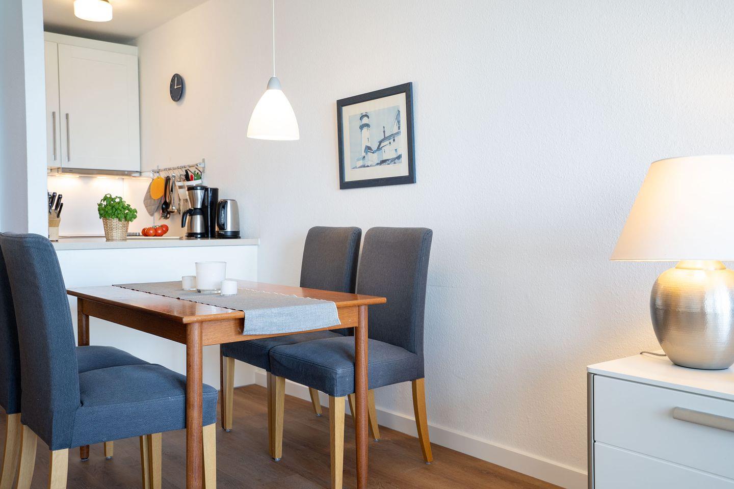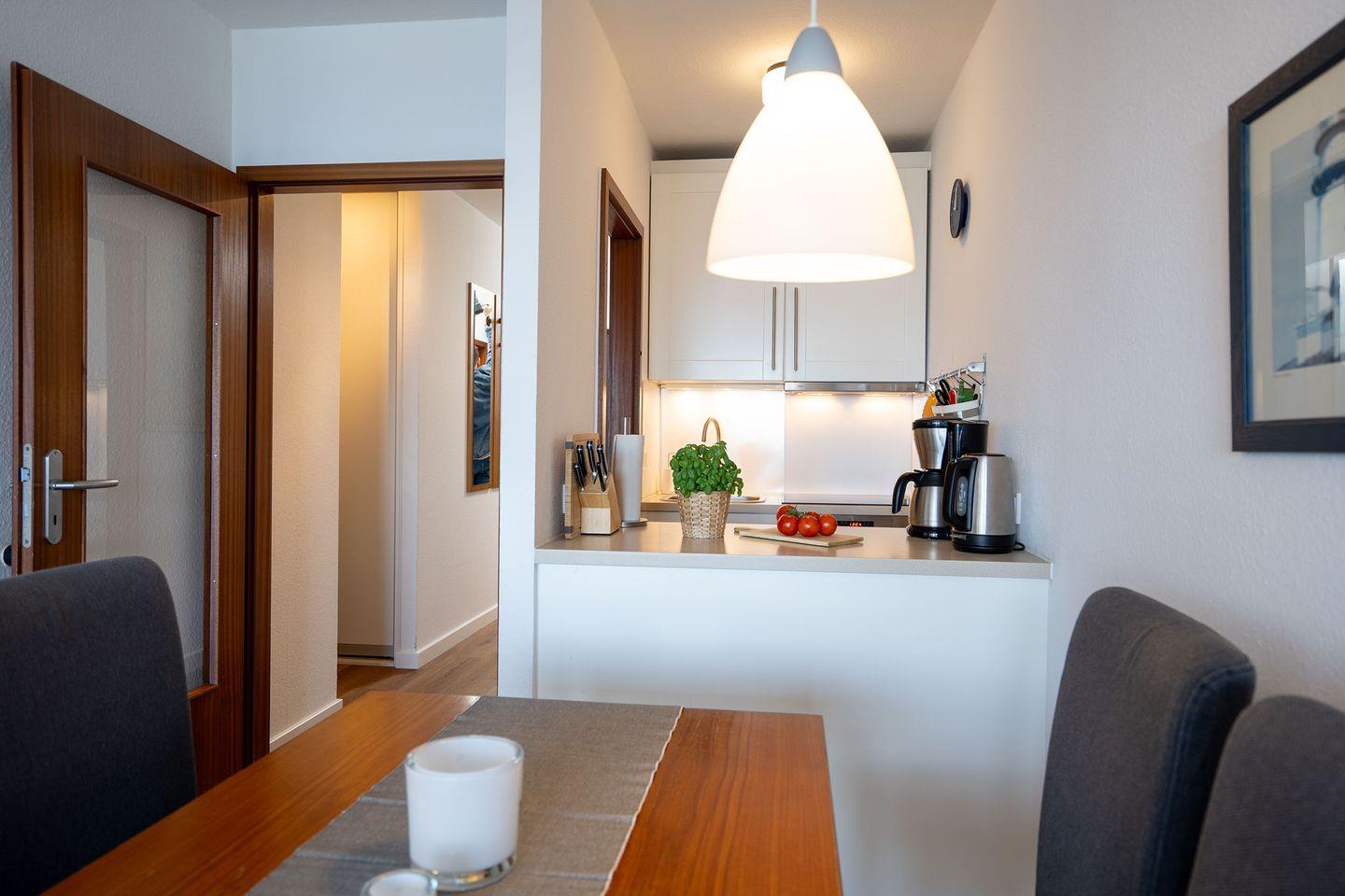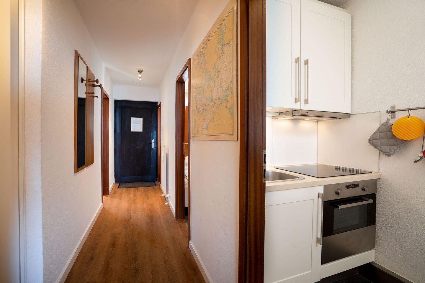 Das ca. 60 qm große 3-Zimmer-Appartement befindet sich im 3.OG und ist bequem mit dem Lift erreichbar. In dem großzügigen Wohnzimmer gibt es eine Couch mit Sessel sowie TV, CD- und DVD-Player und vom Balkon bietet sich Ihnen ein direkter, ungehinderter Blick auf das Meer! Der Essbereich ist für vier Personen und in der offenen Küche findet sich die Komplettausstattung nebst Backofen und Geschirrspüler.