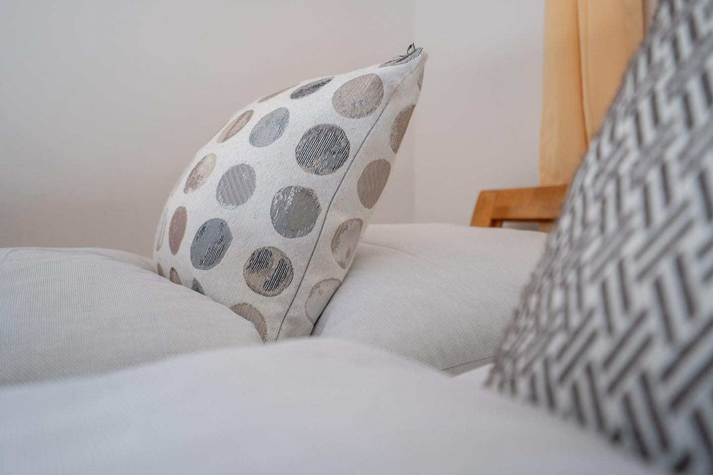 Die beiden separaten Schlafräume verfügen jeweils über ein Doppelbett mit Einzelmatratzen, Kleiderschrank, Vorhänge und Jalousien.