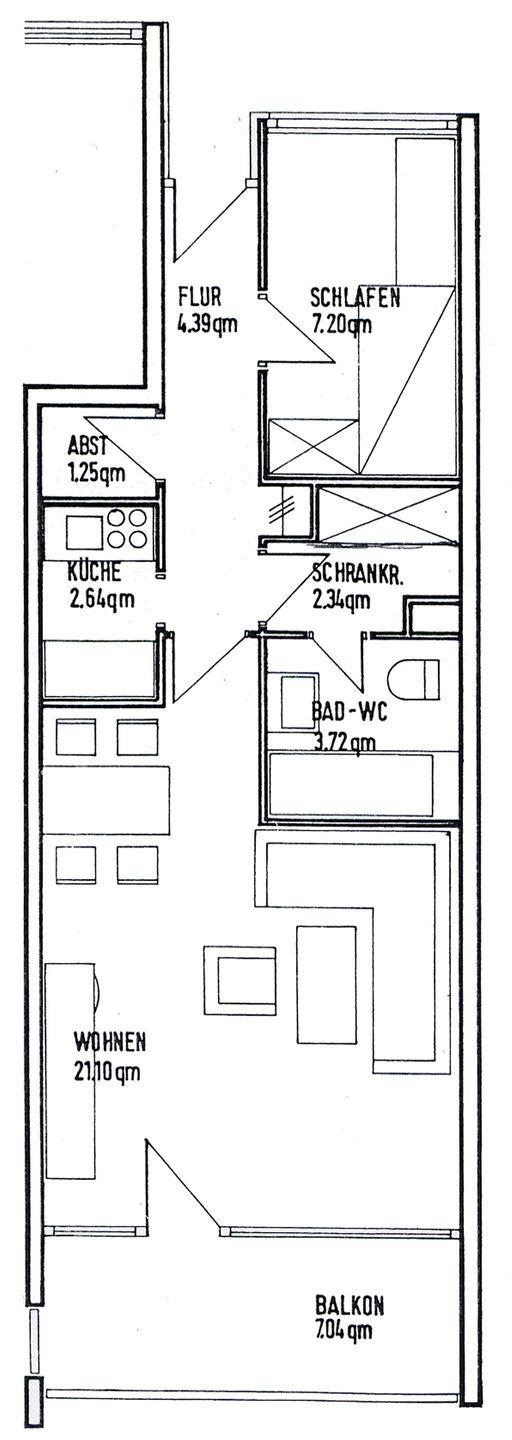 Das ca. 50qm große 2-Zimmer-Appartement liegt im 4.Wohngeschoss, ein Lift ist vorhanden.