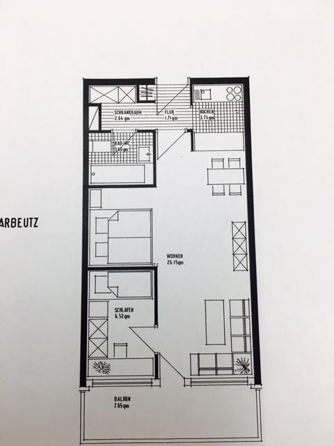 Dieses ca. 48 qm große 2-Raum-Appartement befindet sich im 1. OG und ist bequem mit dem Lift zu erreichen.