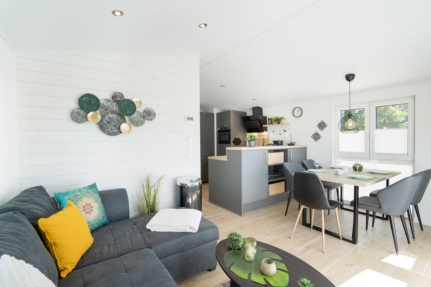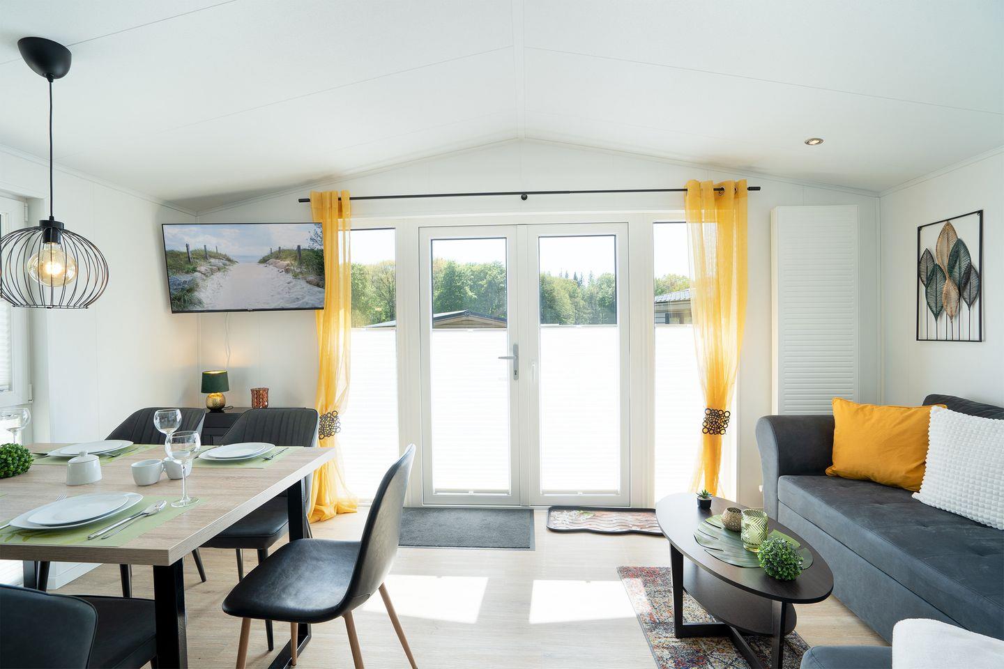 und gemütlich eingerichtete Mobilheim mit 45 qm ein einzigartiges Urlaubserlebnis an der Lübecker Bucht.