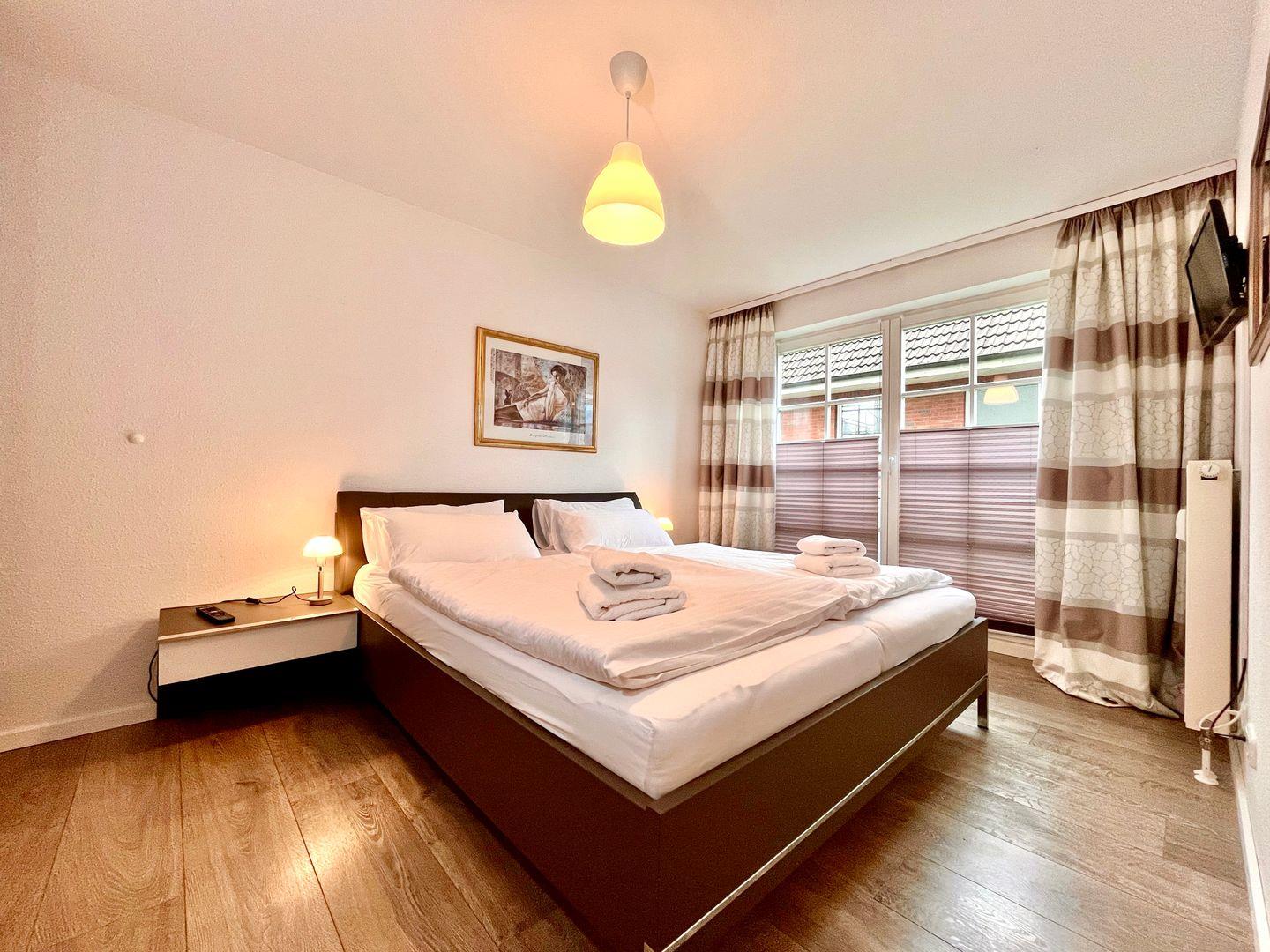 Das gemütliche Schlafzimmer ist mit einem komfortablen Doppelbett, einem geräumigen Kleiderschrank 180/200cm und einem Smart-TV ausgestattet.