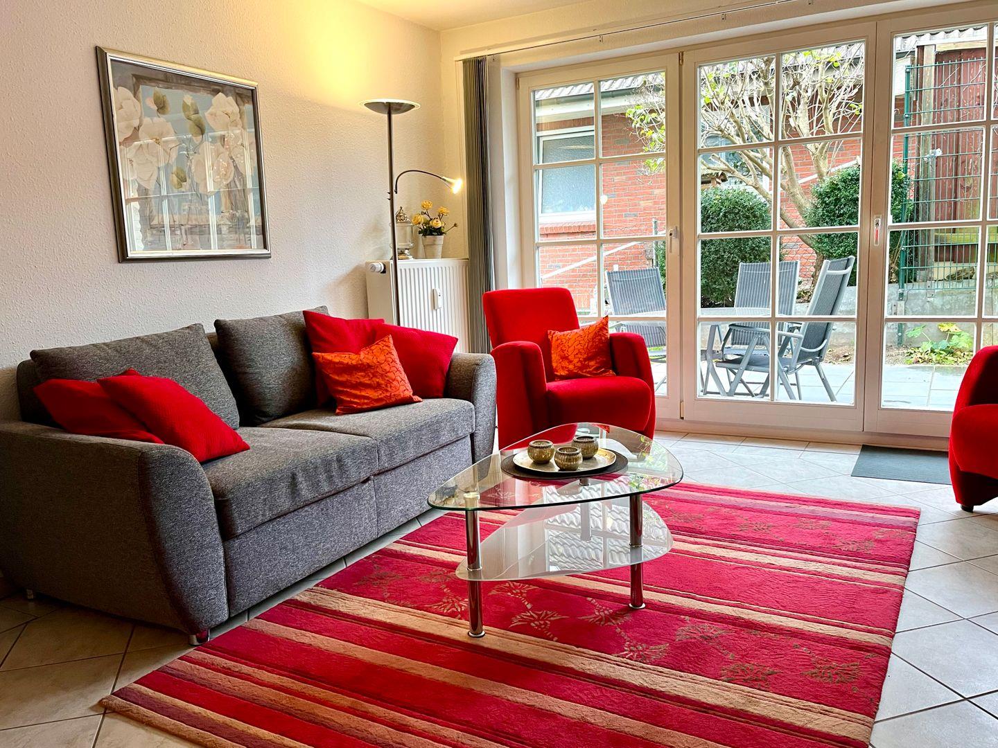 Über 45qm erstreckt sich diese helle Erdgeschoß Ferienwohnung mit einer Süd-West Sonnenterrasse.