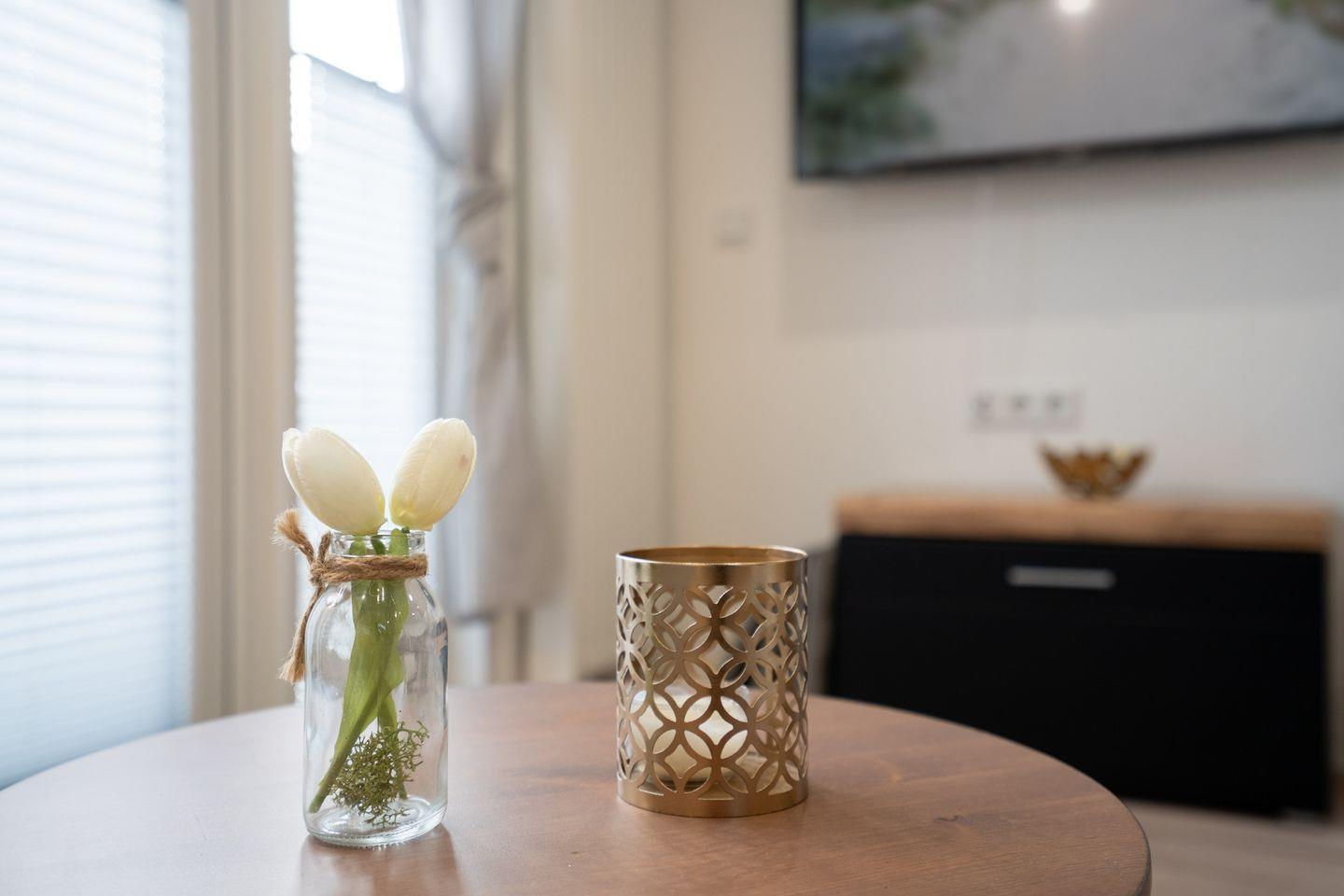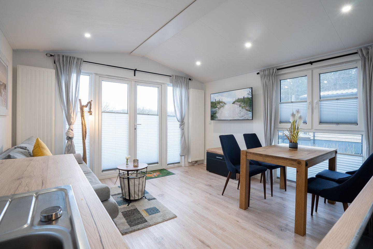 Der Wohn-Essbereich ist voll ausgestattet und die Terasse lädt zu gemütlichen Grillabenden oder zum Sonnenbaden ein. Zusätzlich zum Wohnbereich ist auch das größere Schlafzimmer mit einem TV bestückt.